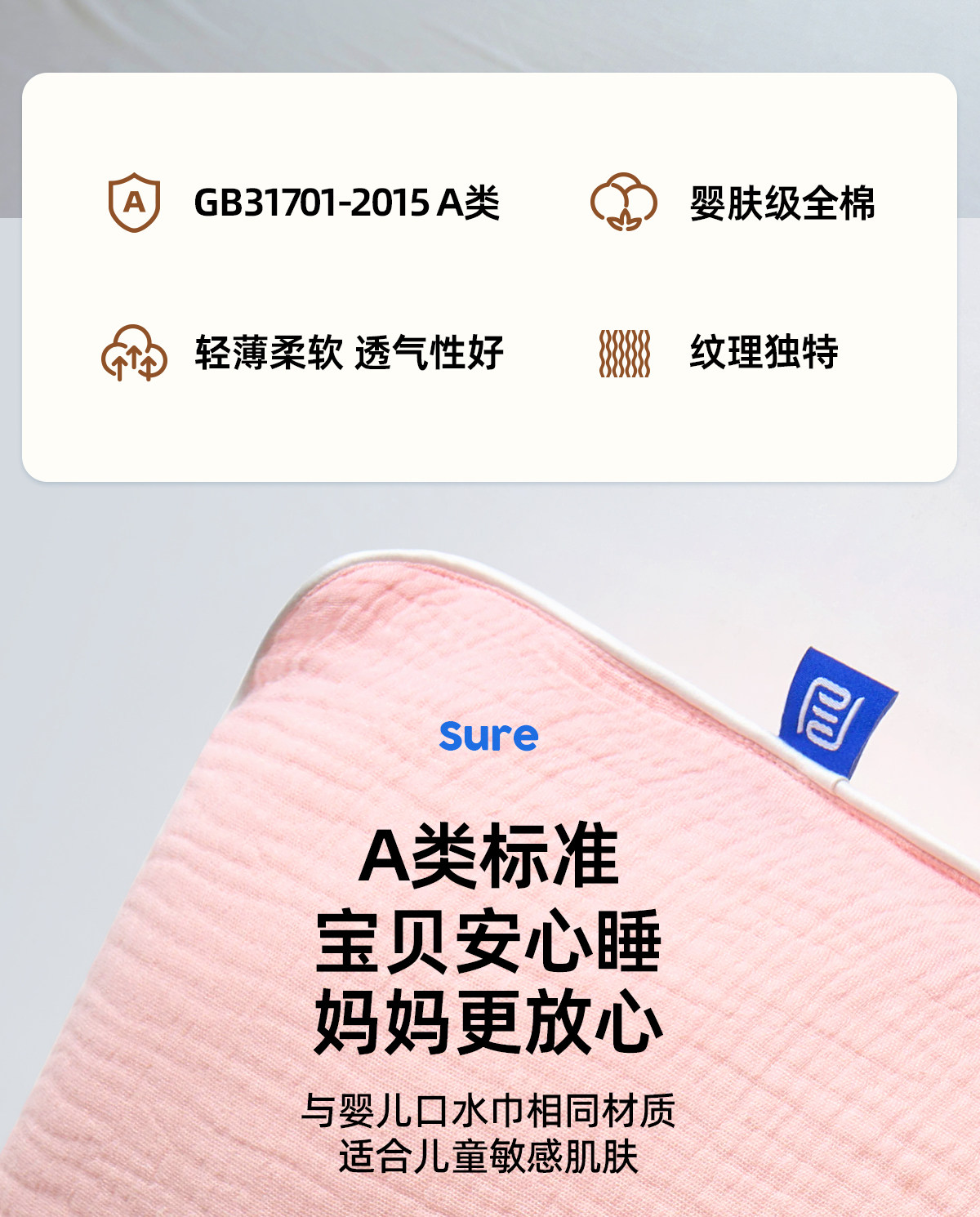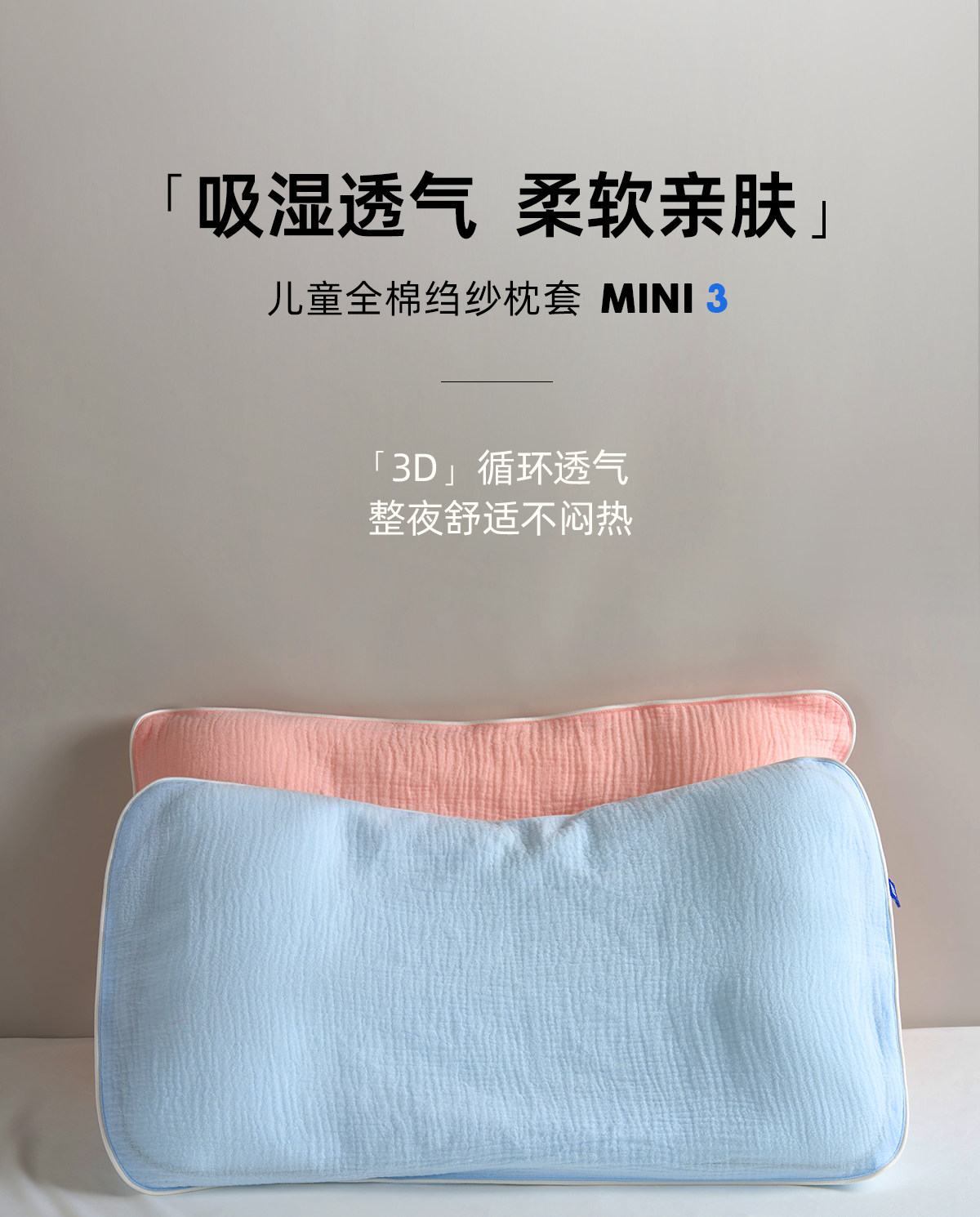層舒兒童全棉縐紗枕套A類母嬰級全棉透氣柔軟寶寶親膚枕套100%棉
