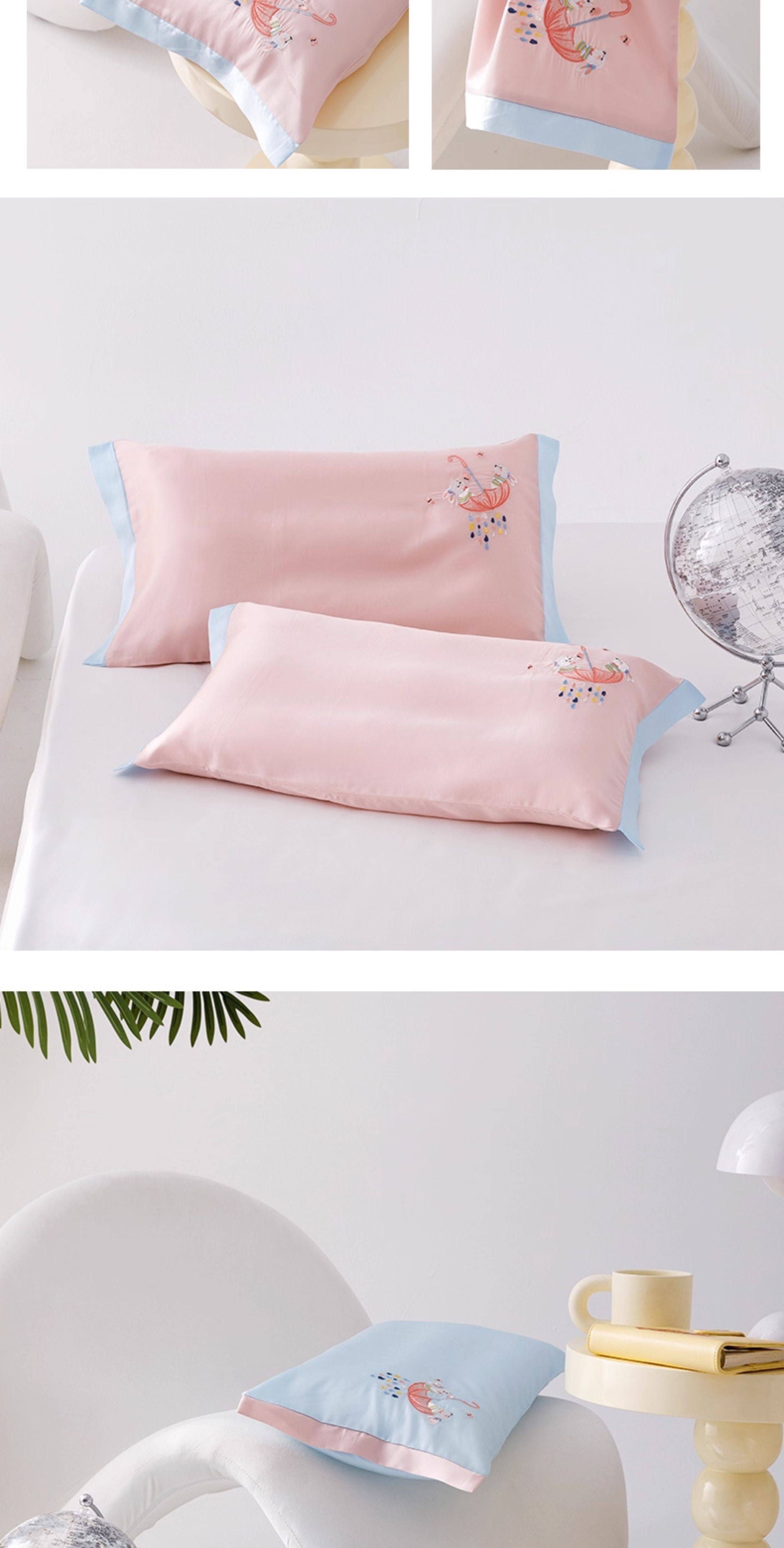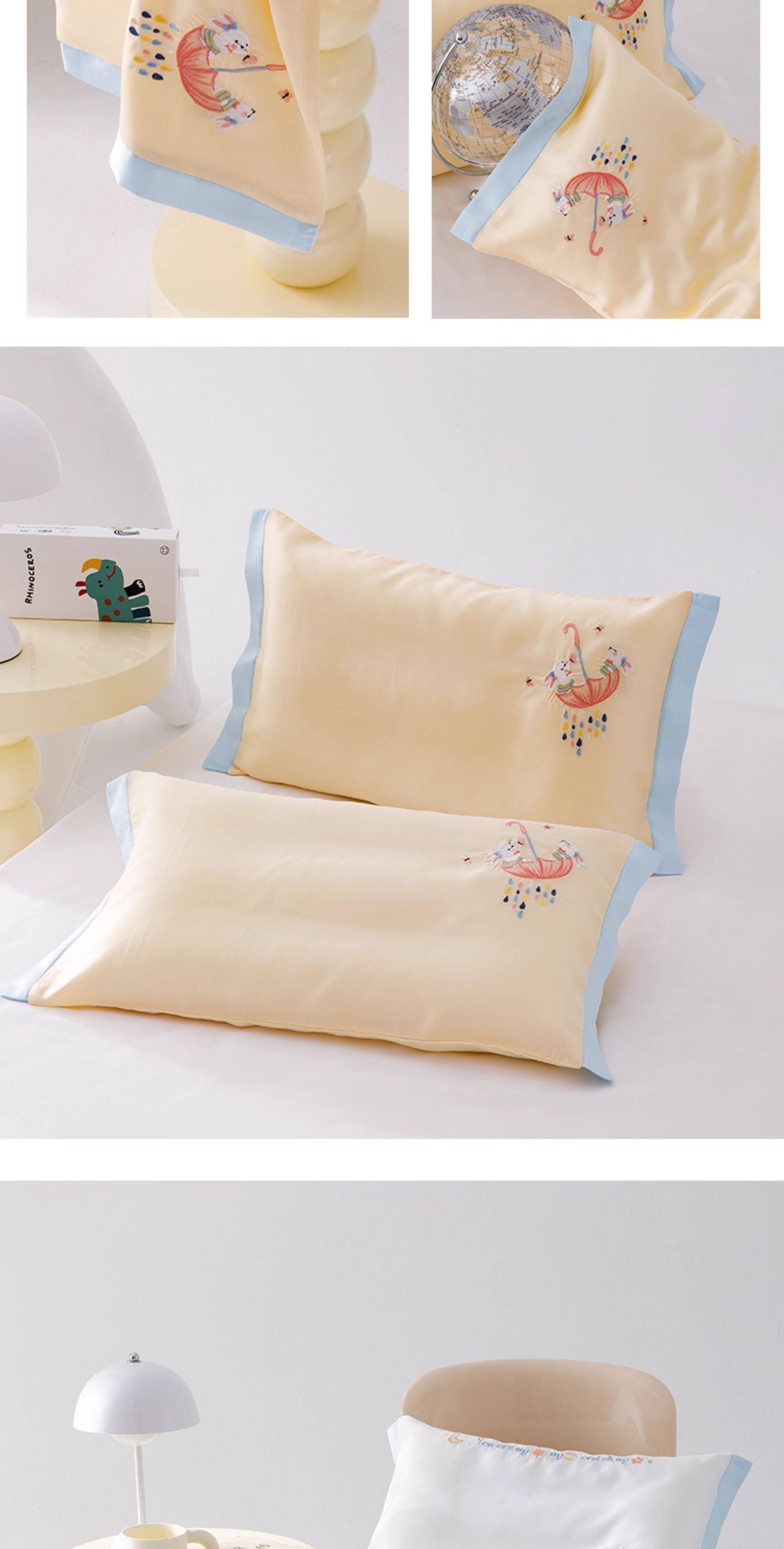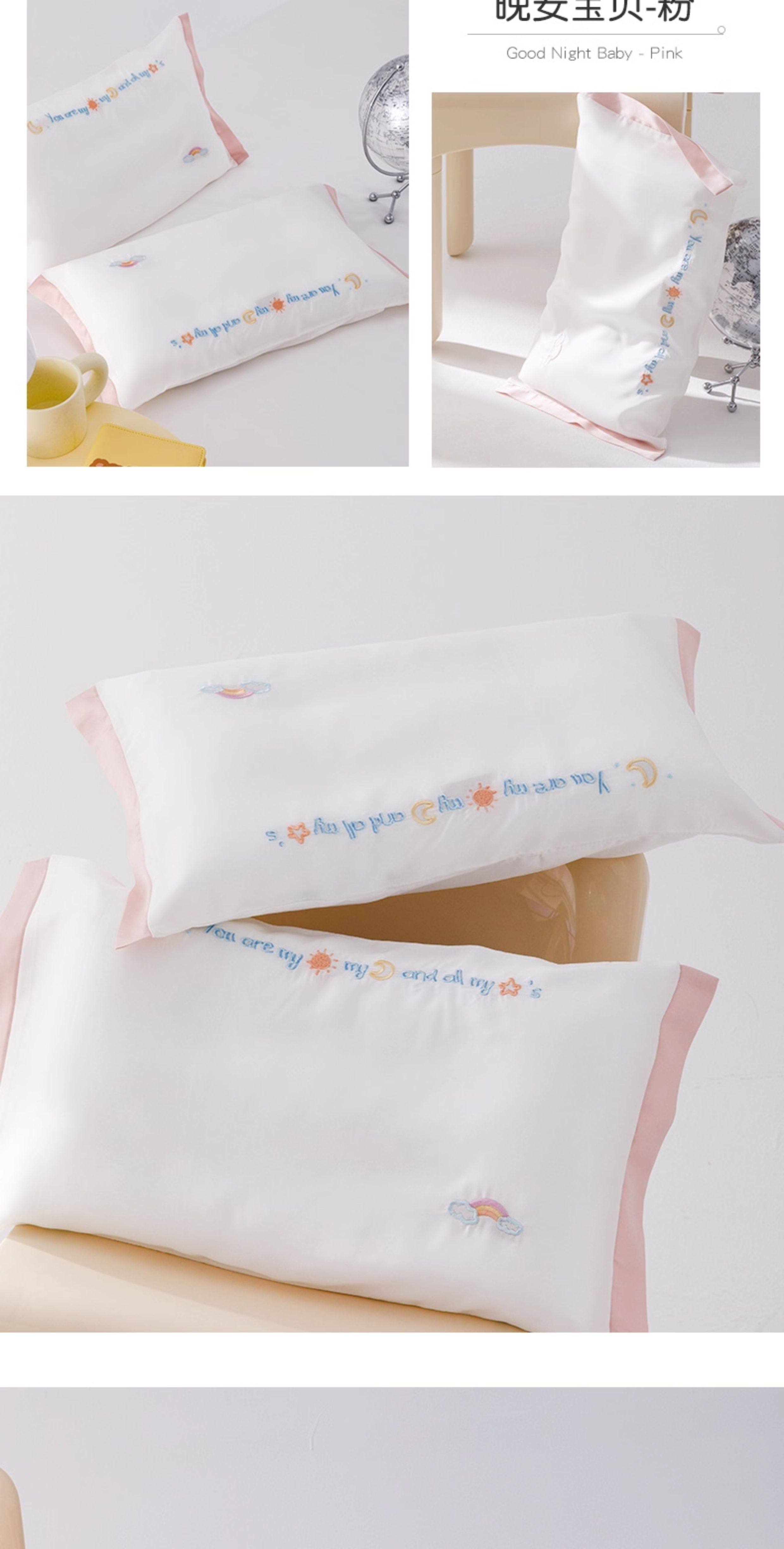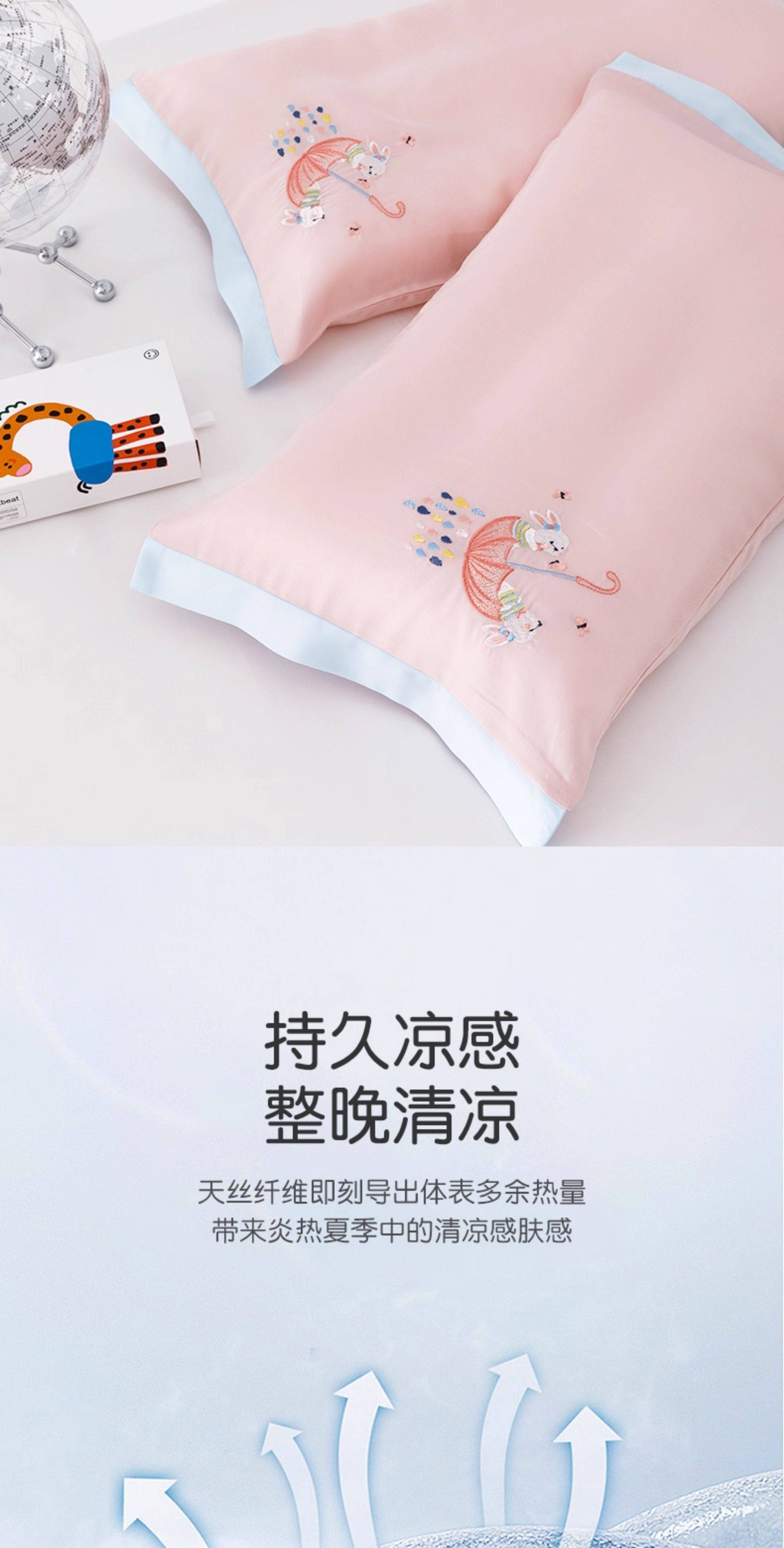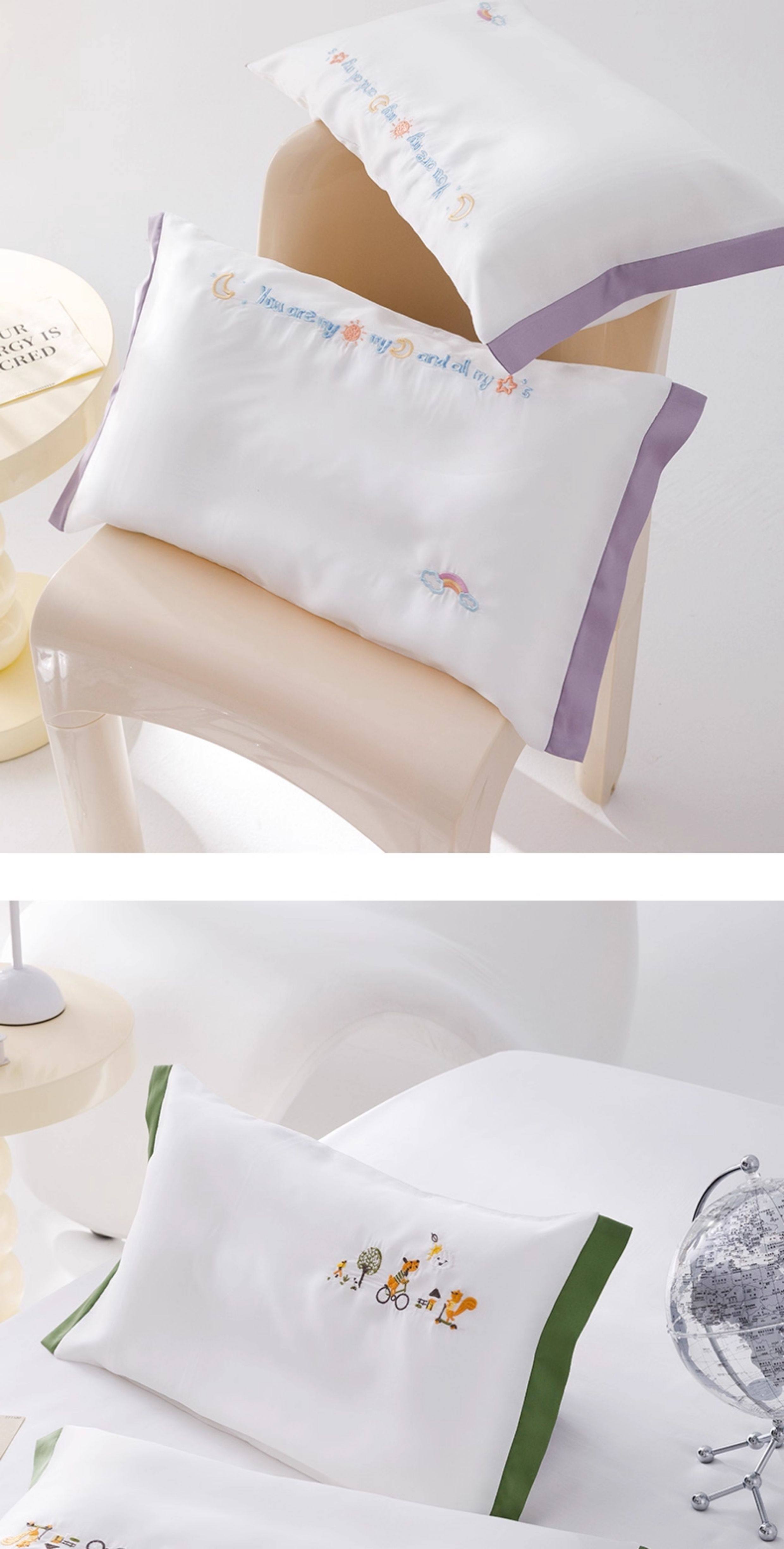 米蘇刺綉天絲枕頭套兒童枕套冰絲乳膠枕用單個單人學生寶寶可愛夏