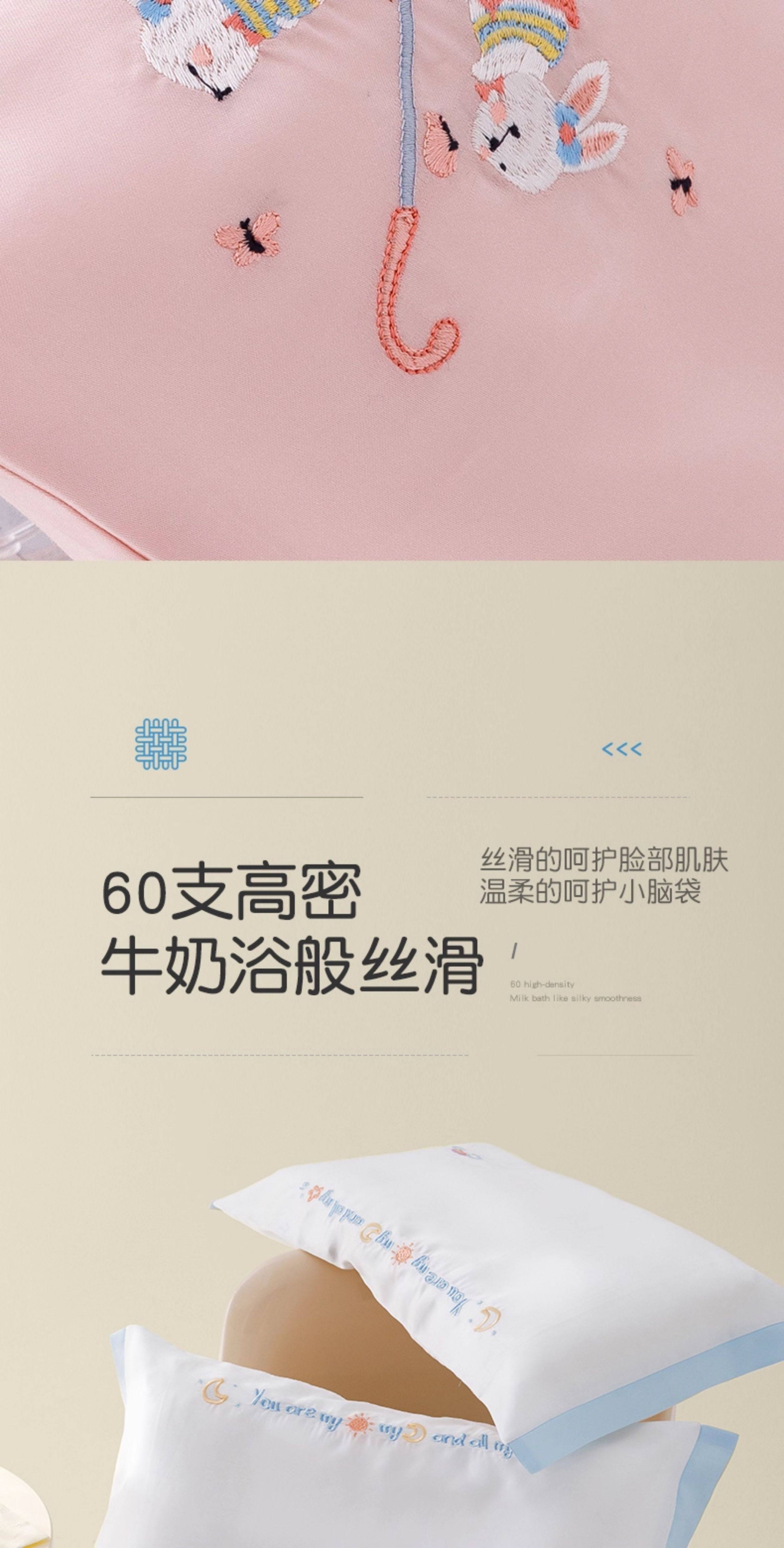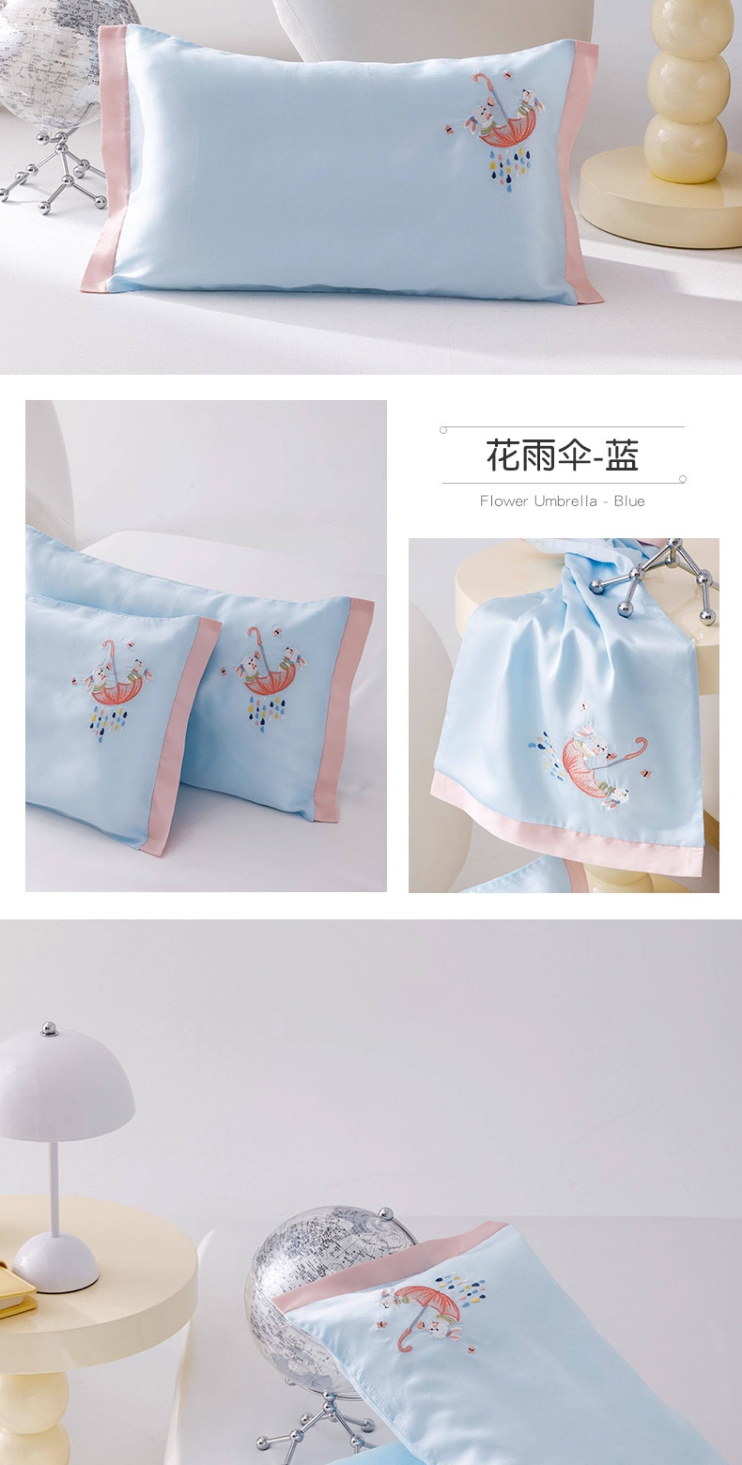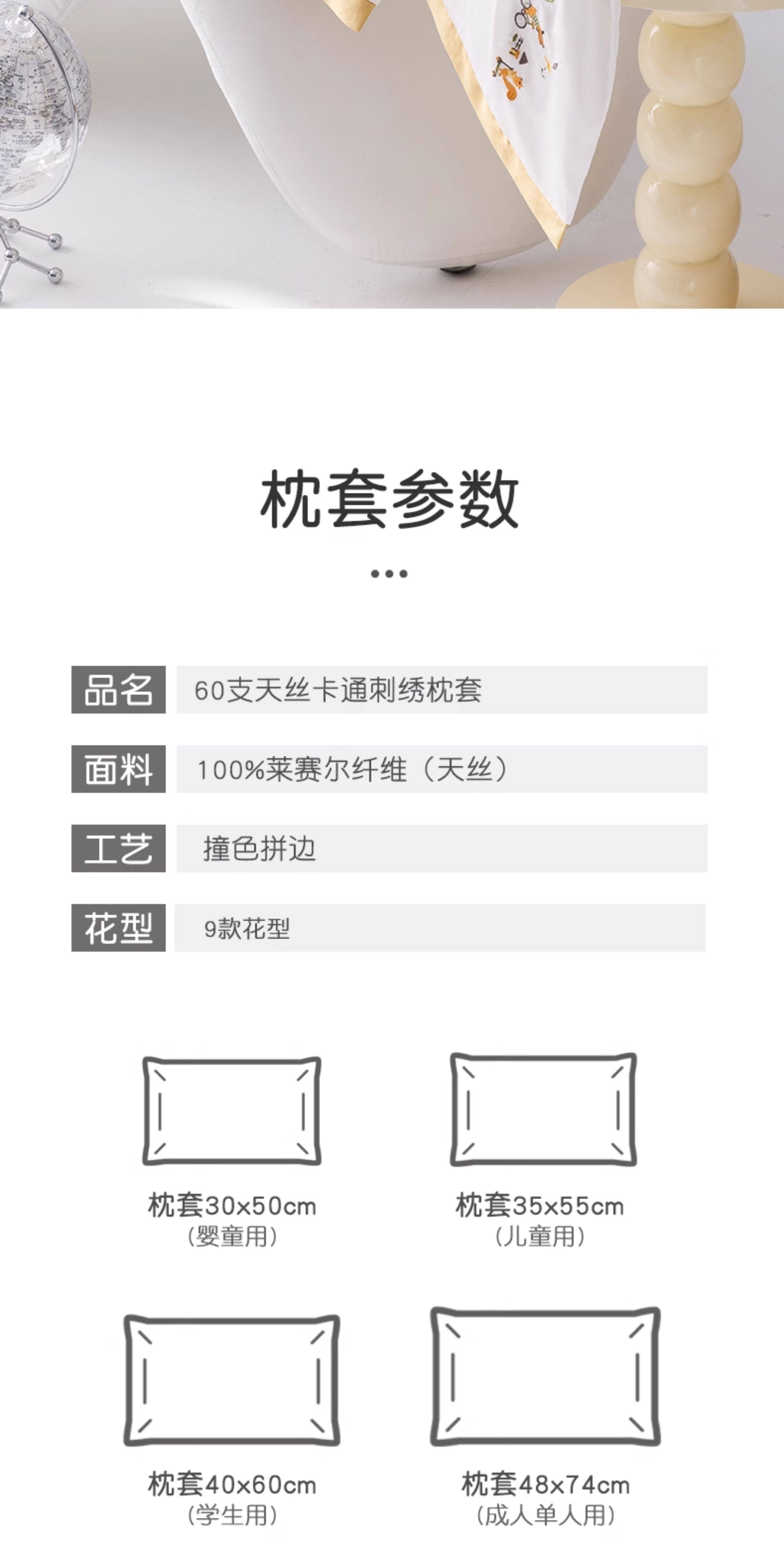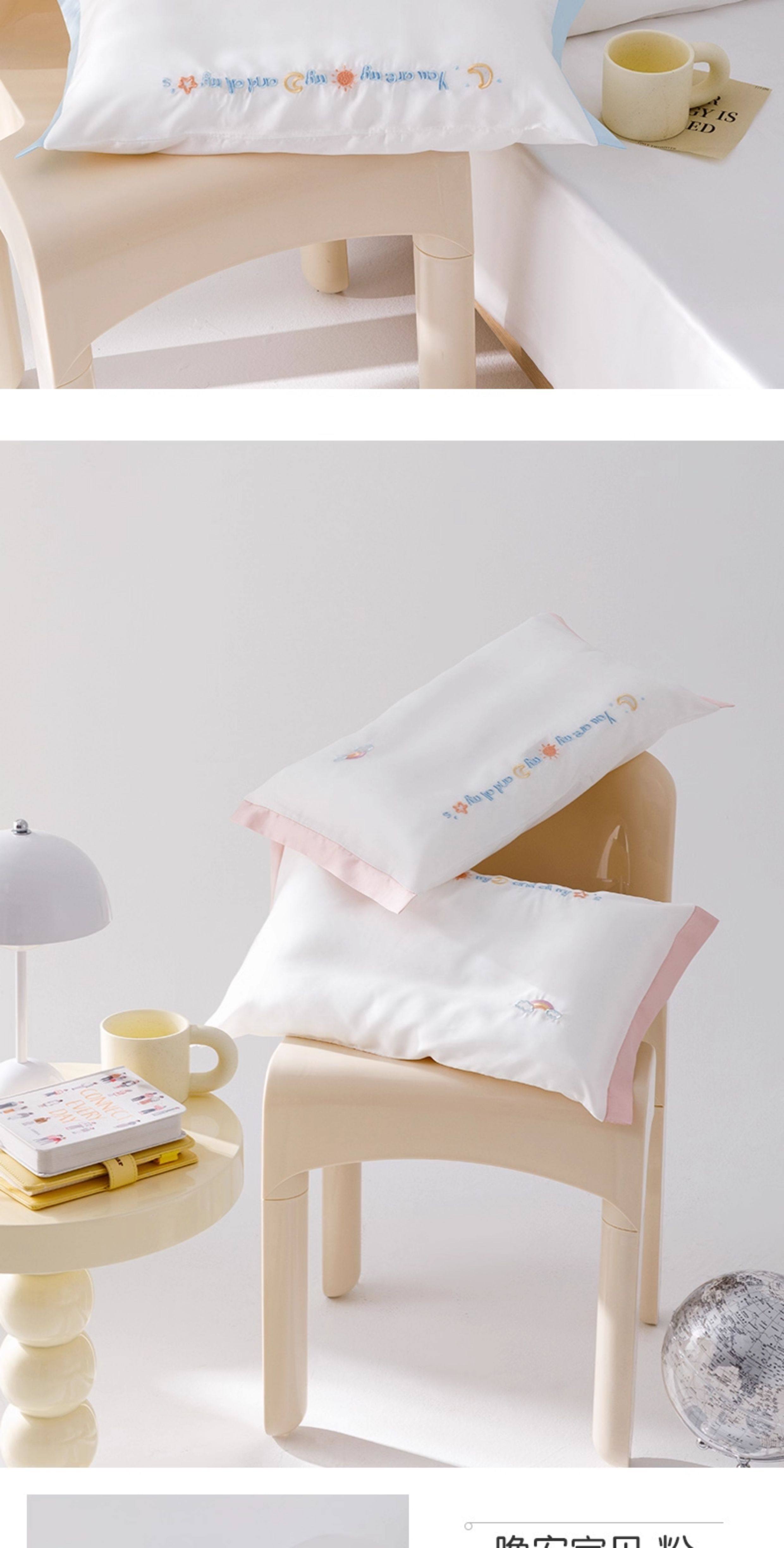 米蘇刺綉天絲枕頭套兒童枕套冰絲乳膠枕用單個單人學生寶寶可愛夏