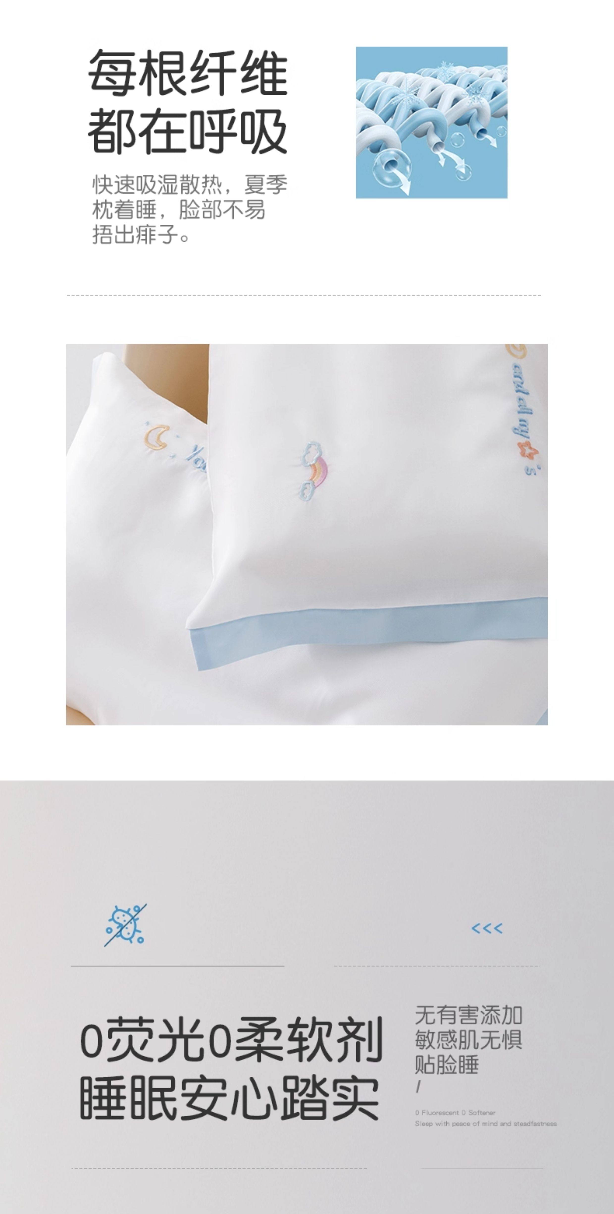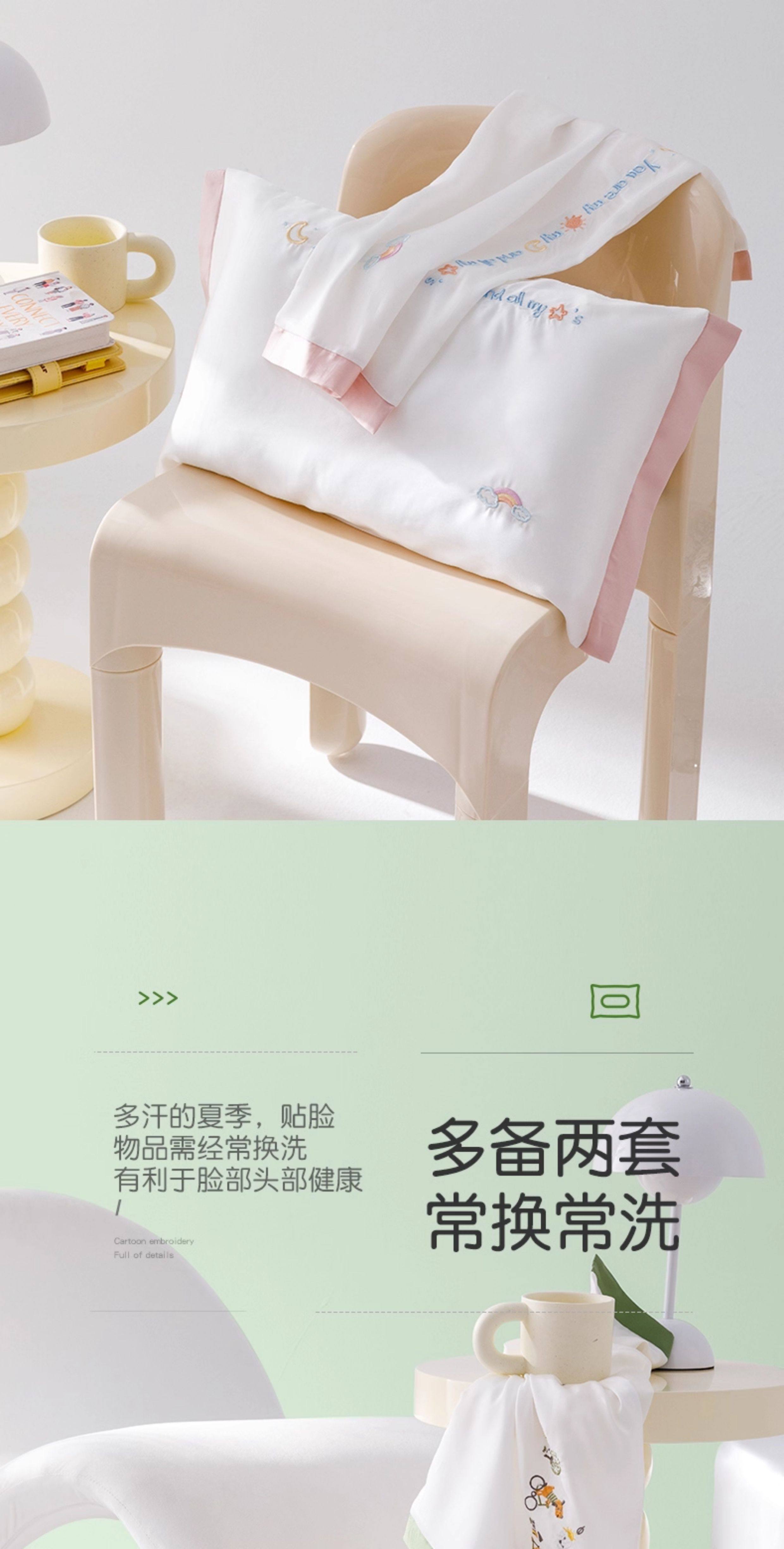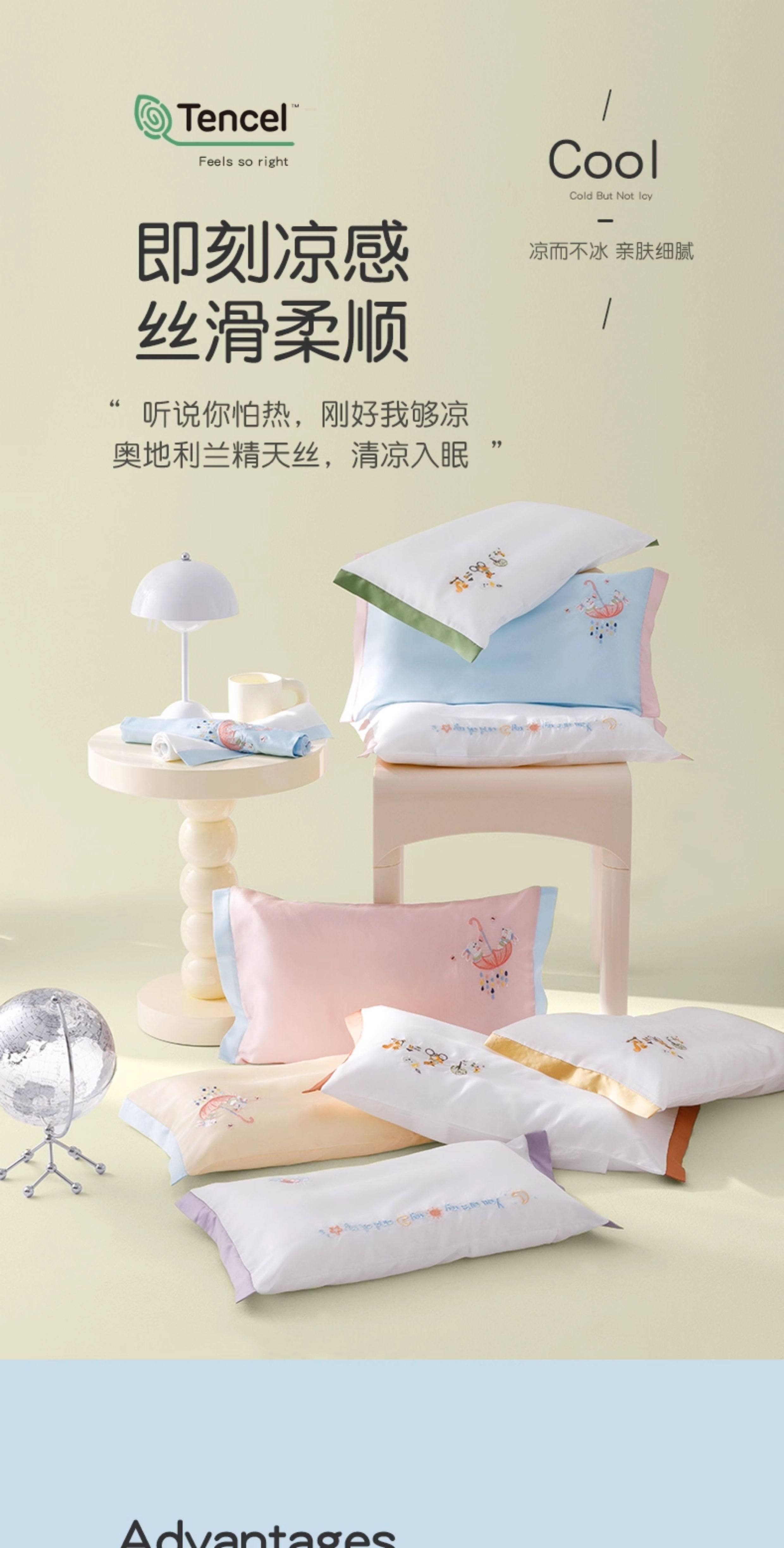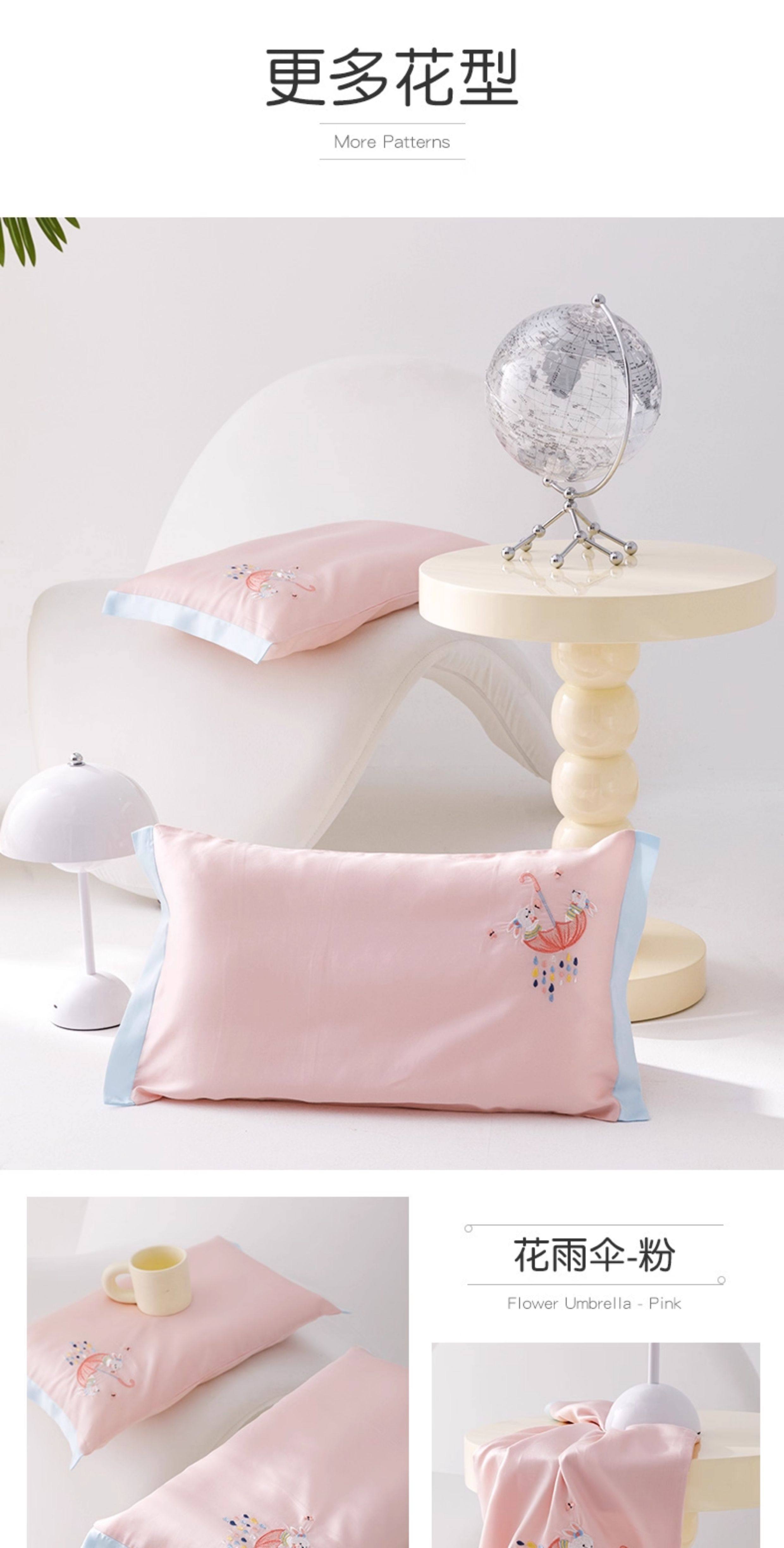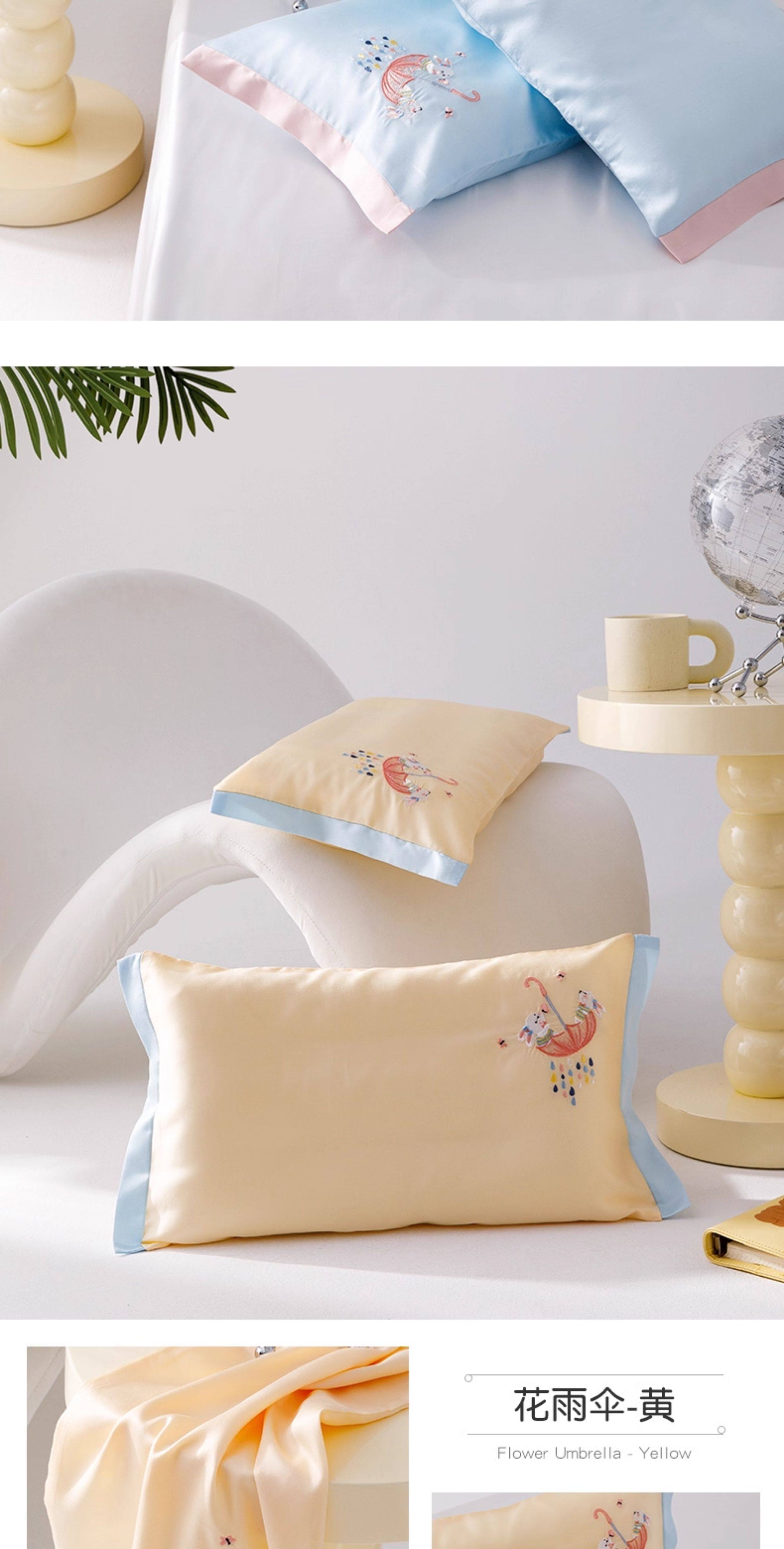 米蘇刺綉天絲枕頭套兒童枕套冰絲乳膠枕用單個單人學生寶寶可愛夏