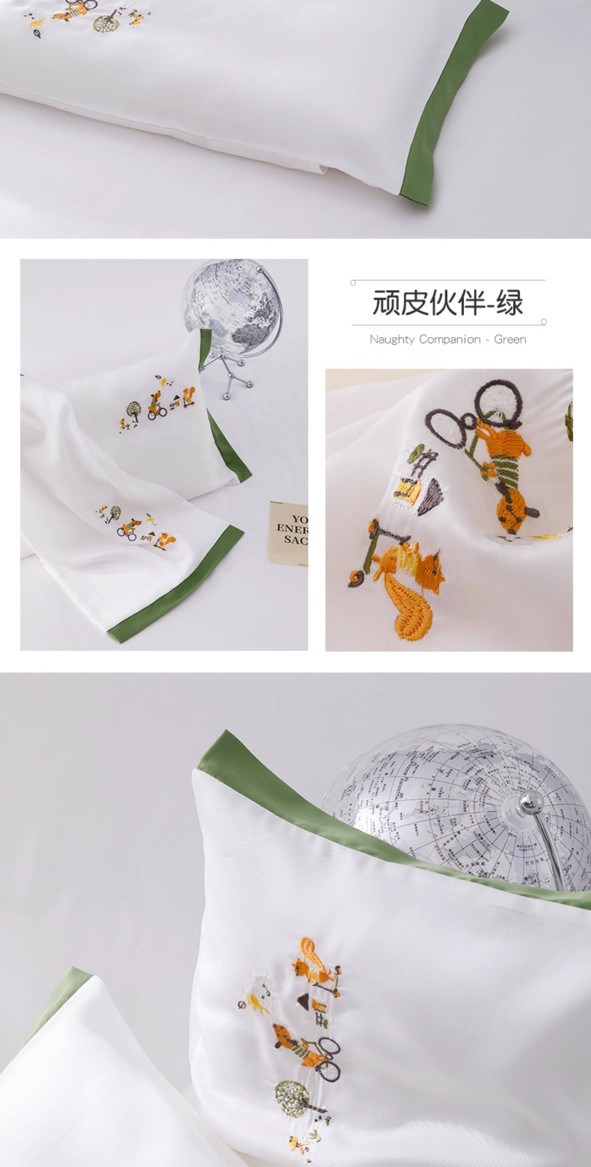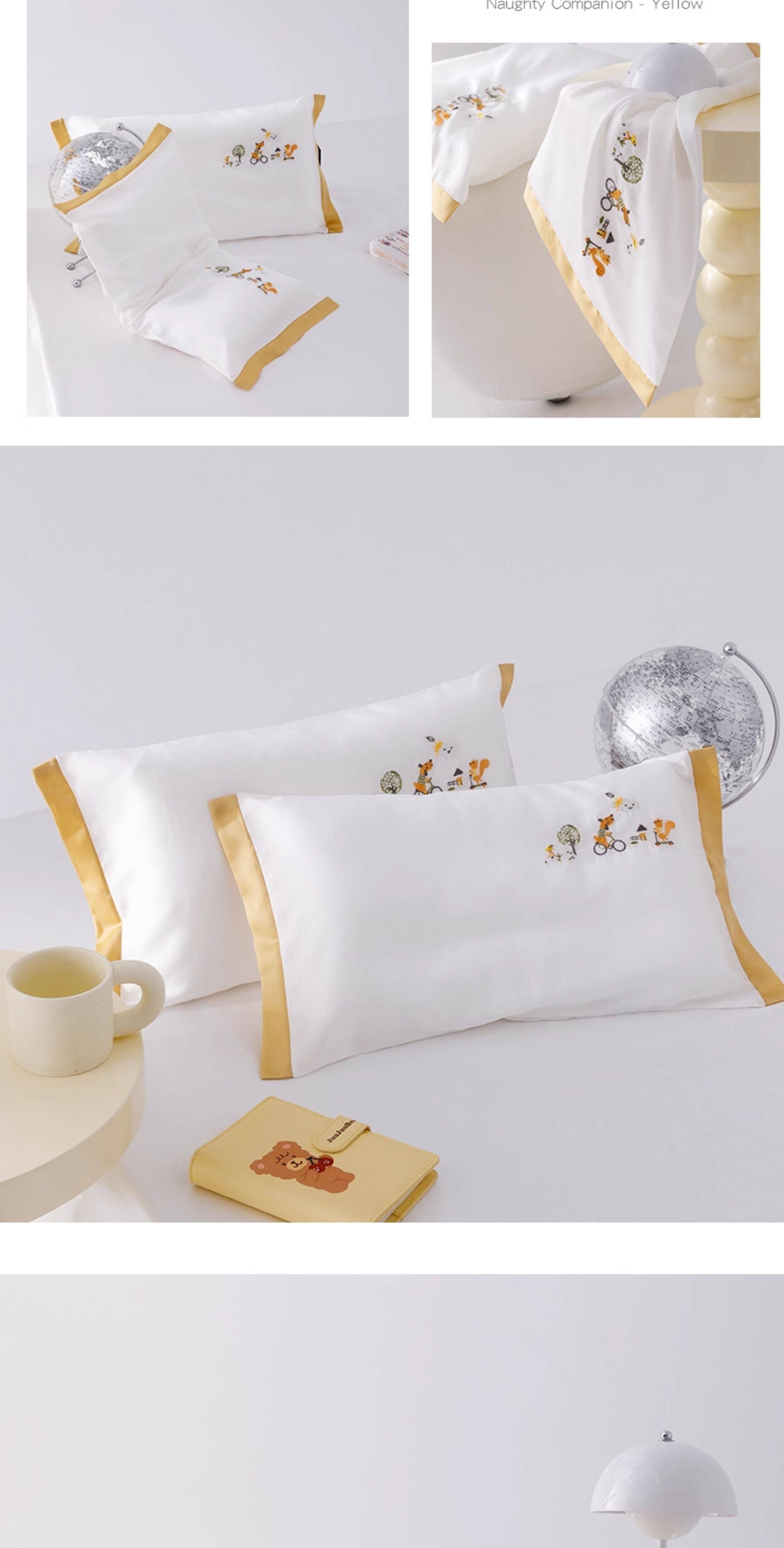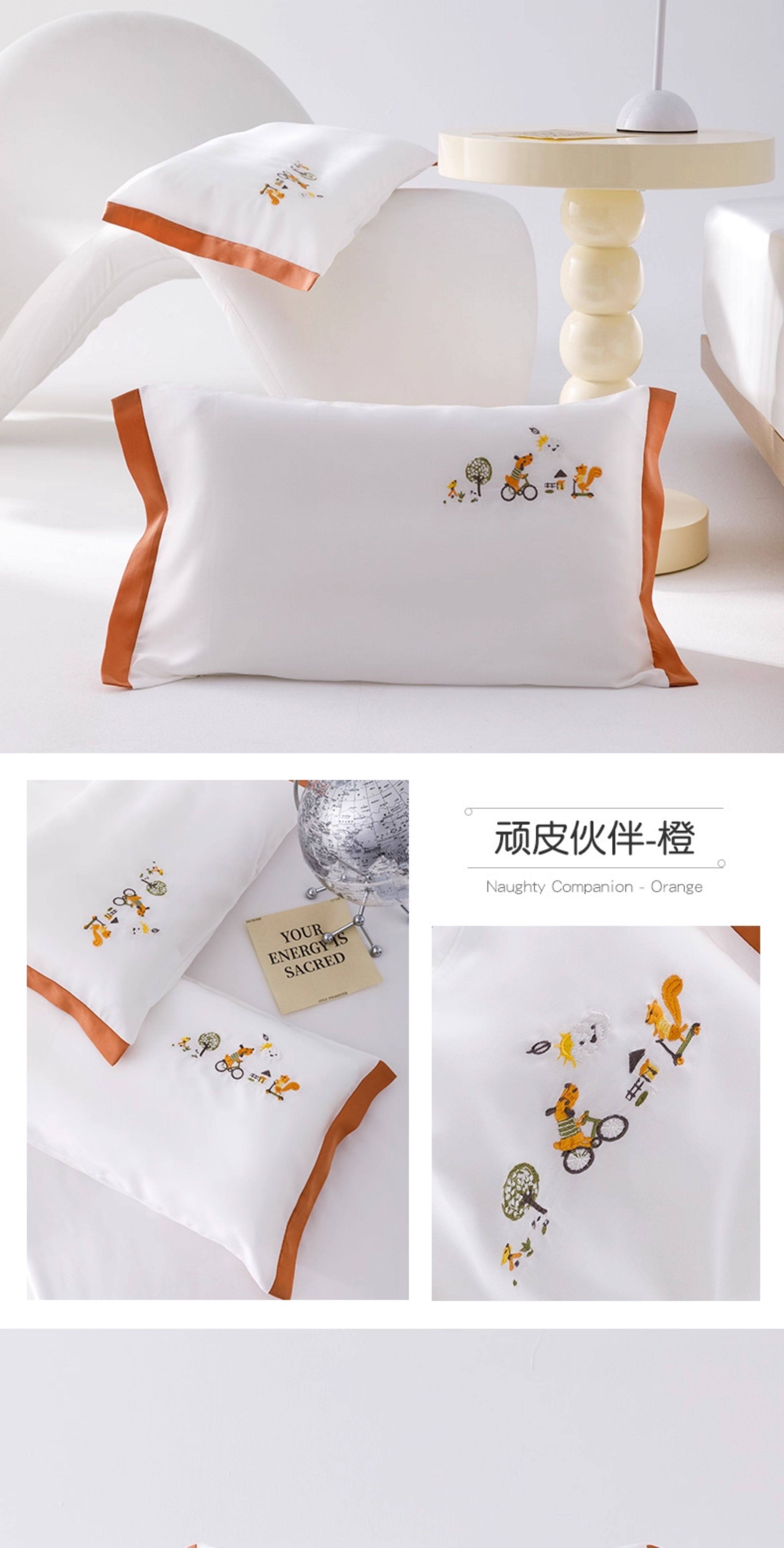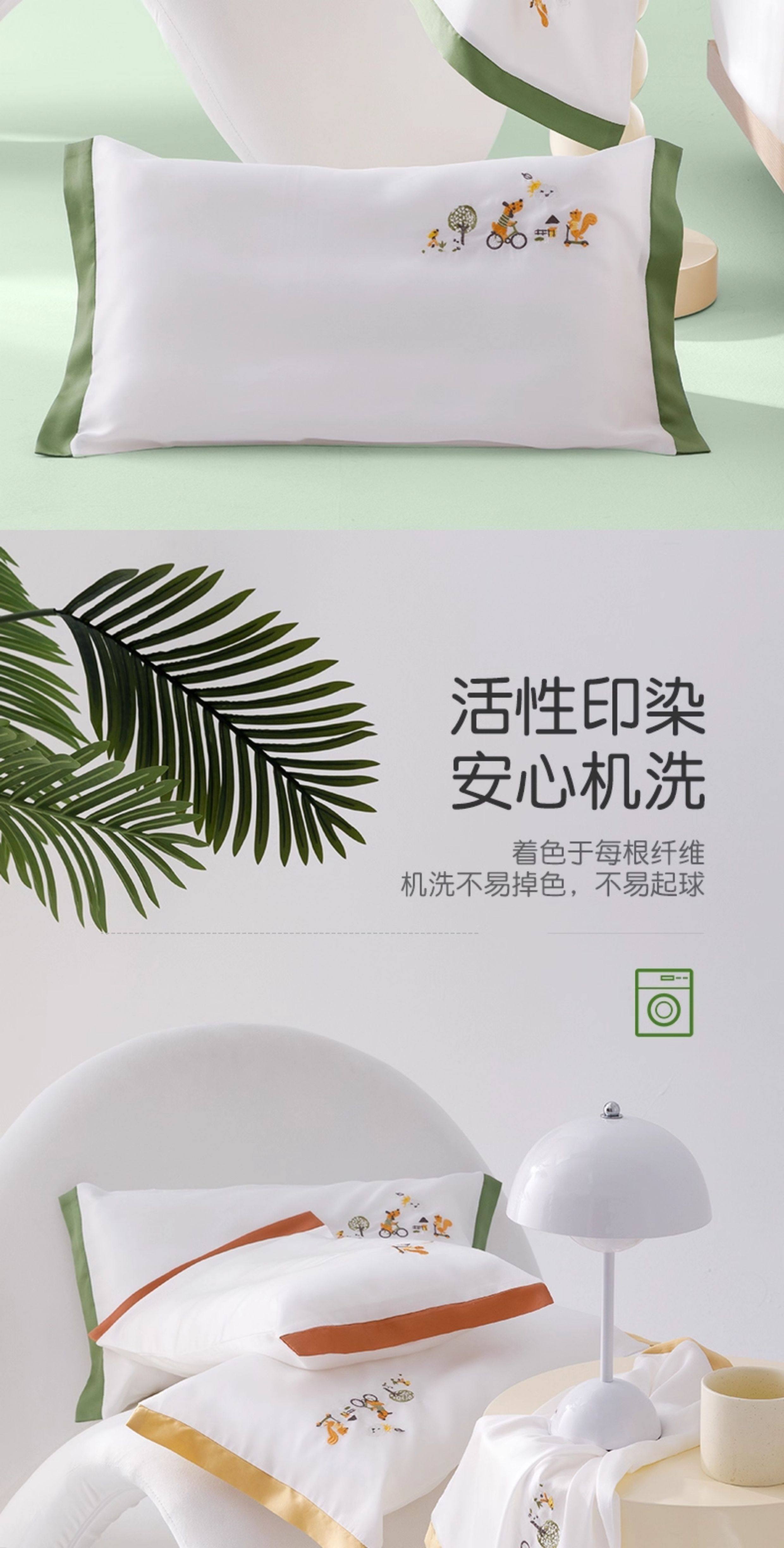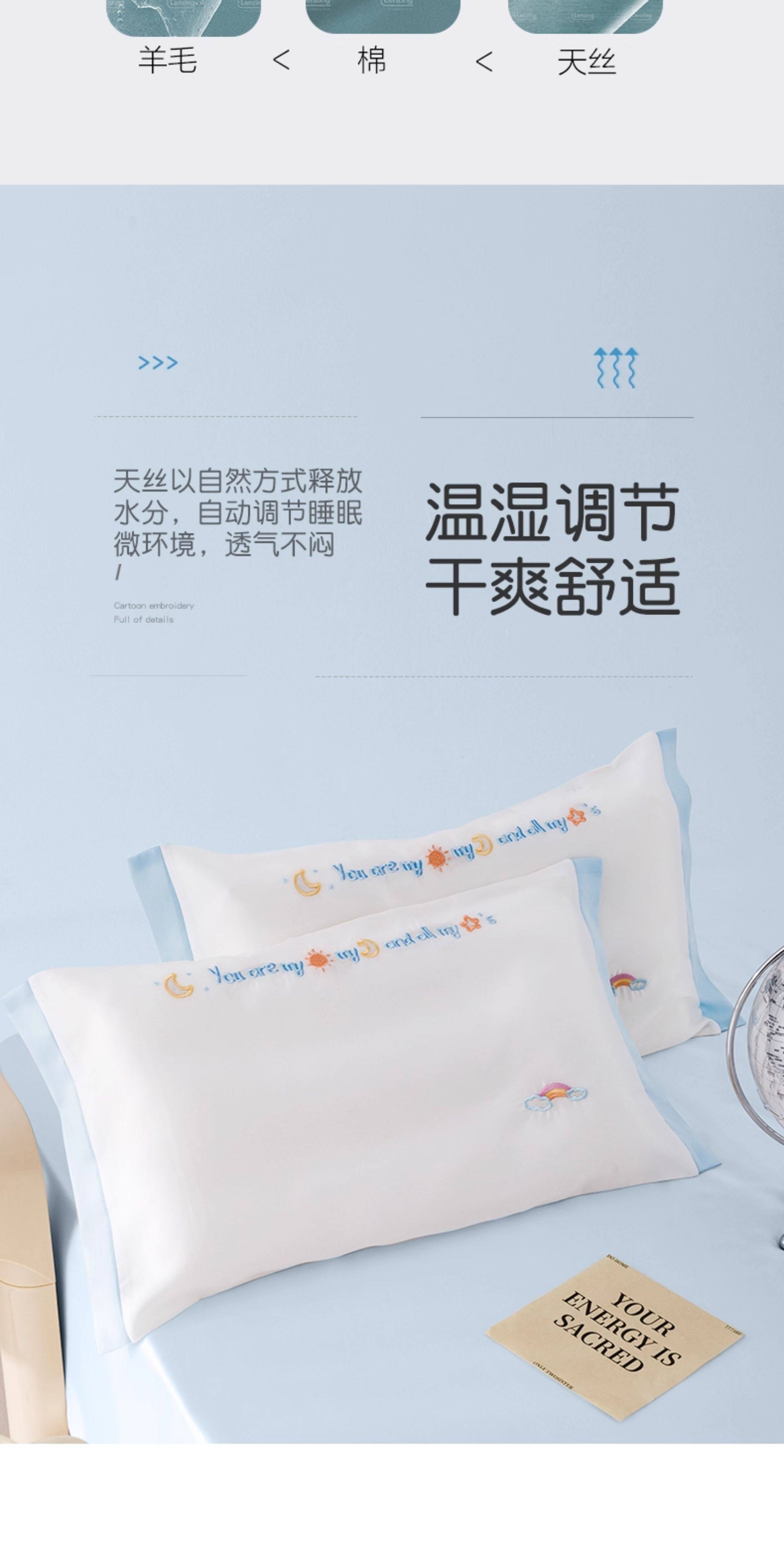 米蘇刺綉天絲枕頭套兒童枕套冰絲乳膠枕用單個單人學生寶寶可愛夏