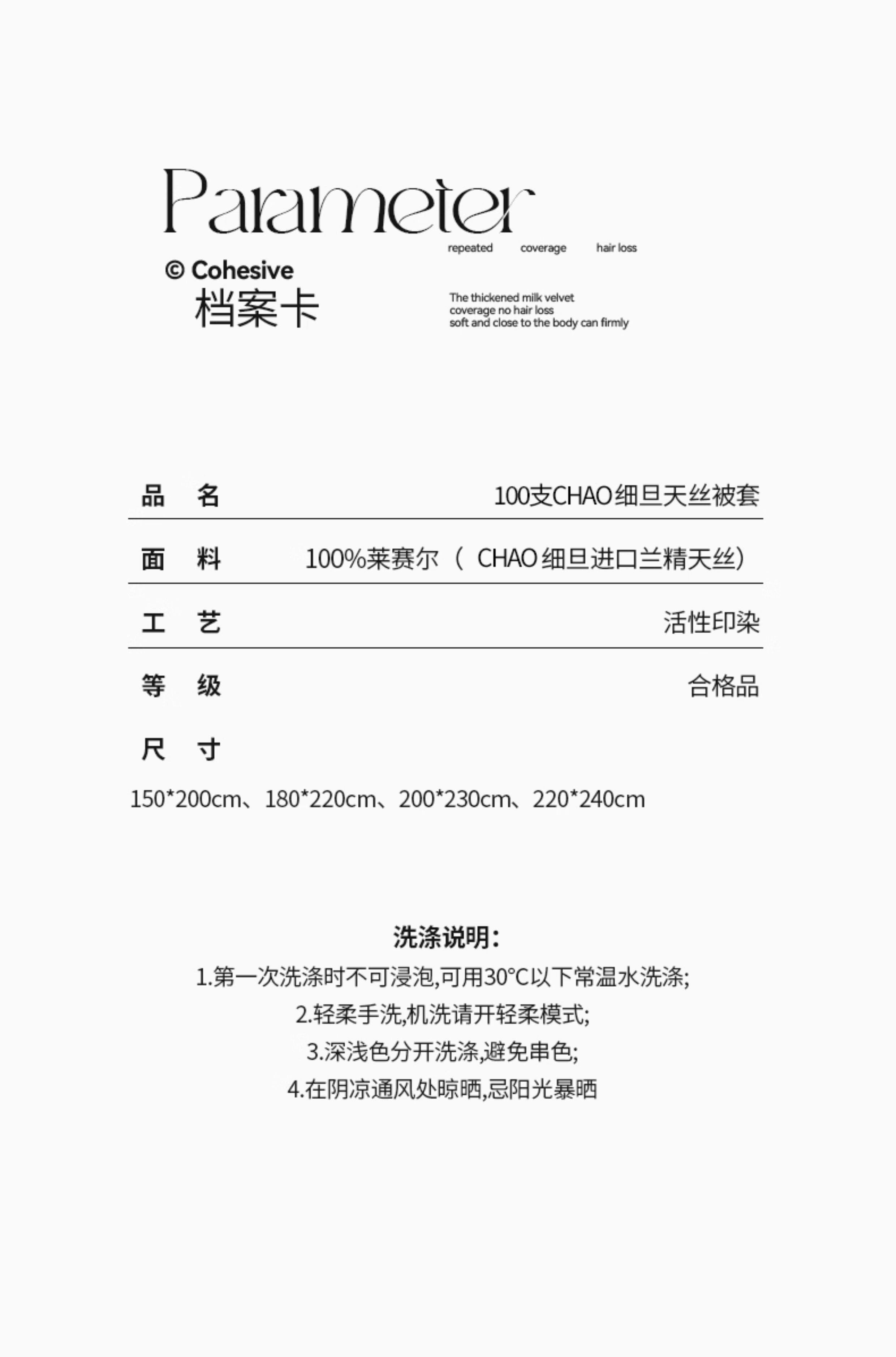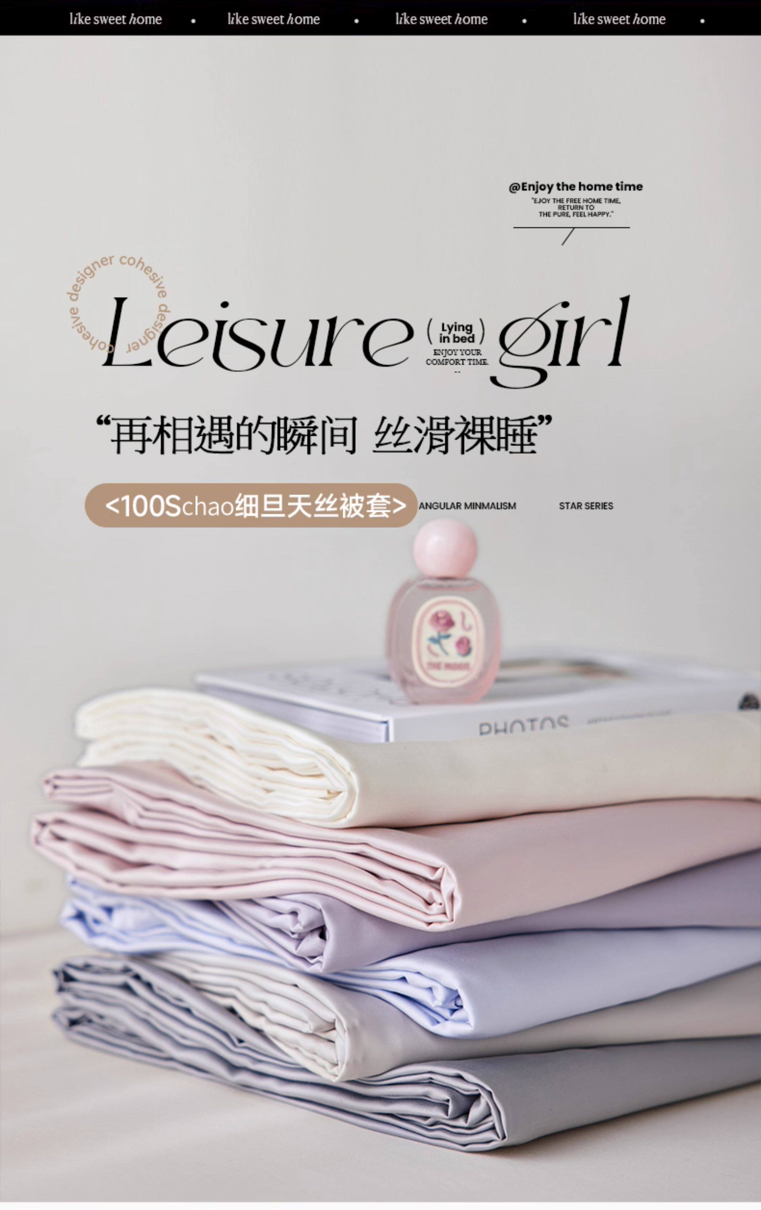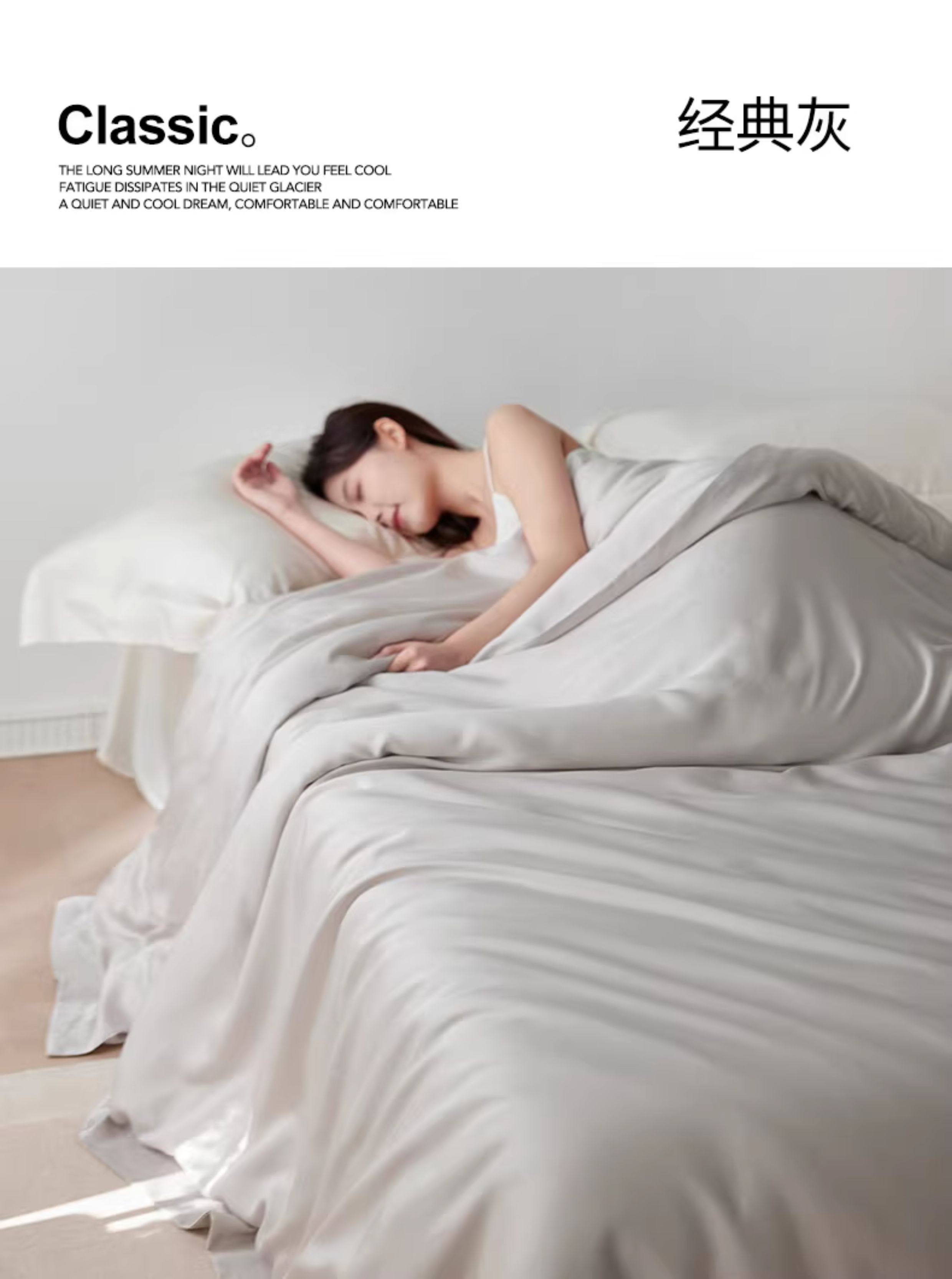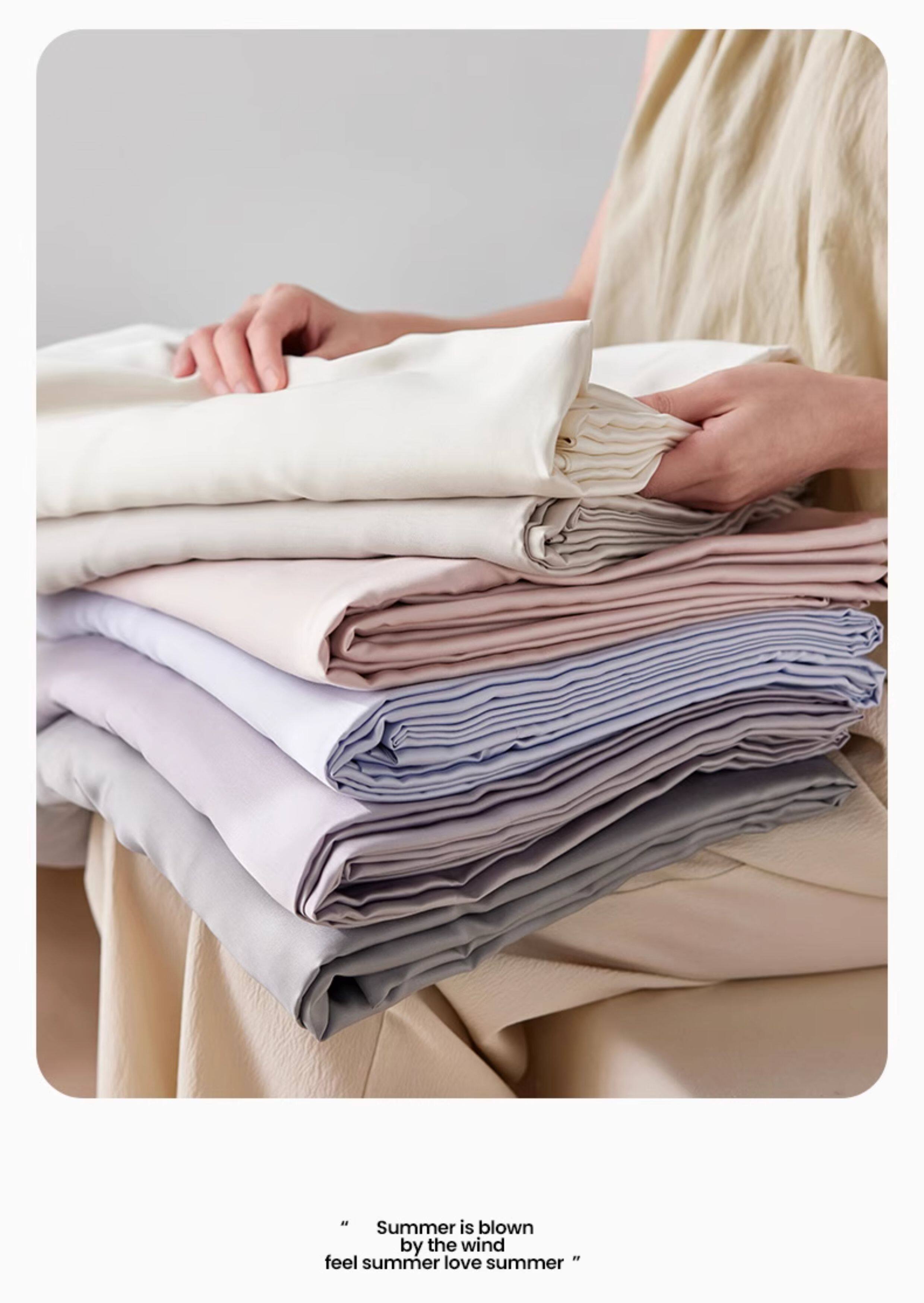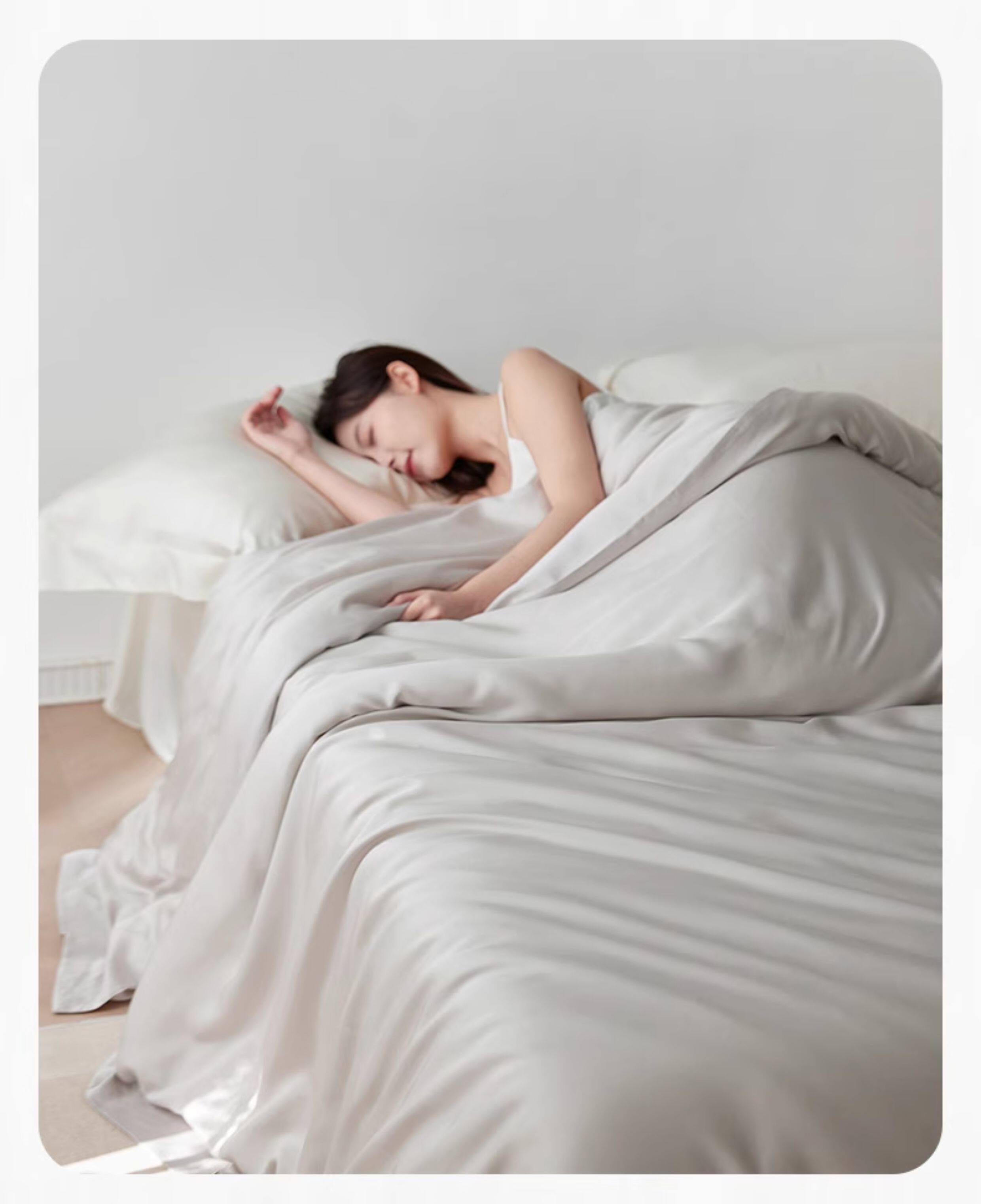 米蘇夏季100s涼感萊賽爾天絲被套單件冰絲被罩三件套簡約純色輕奢