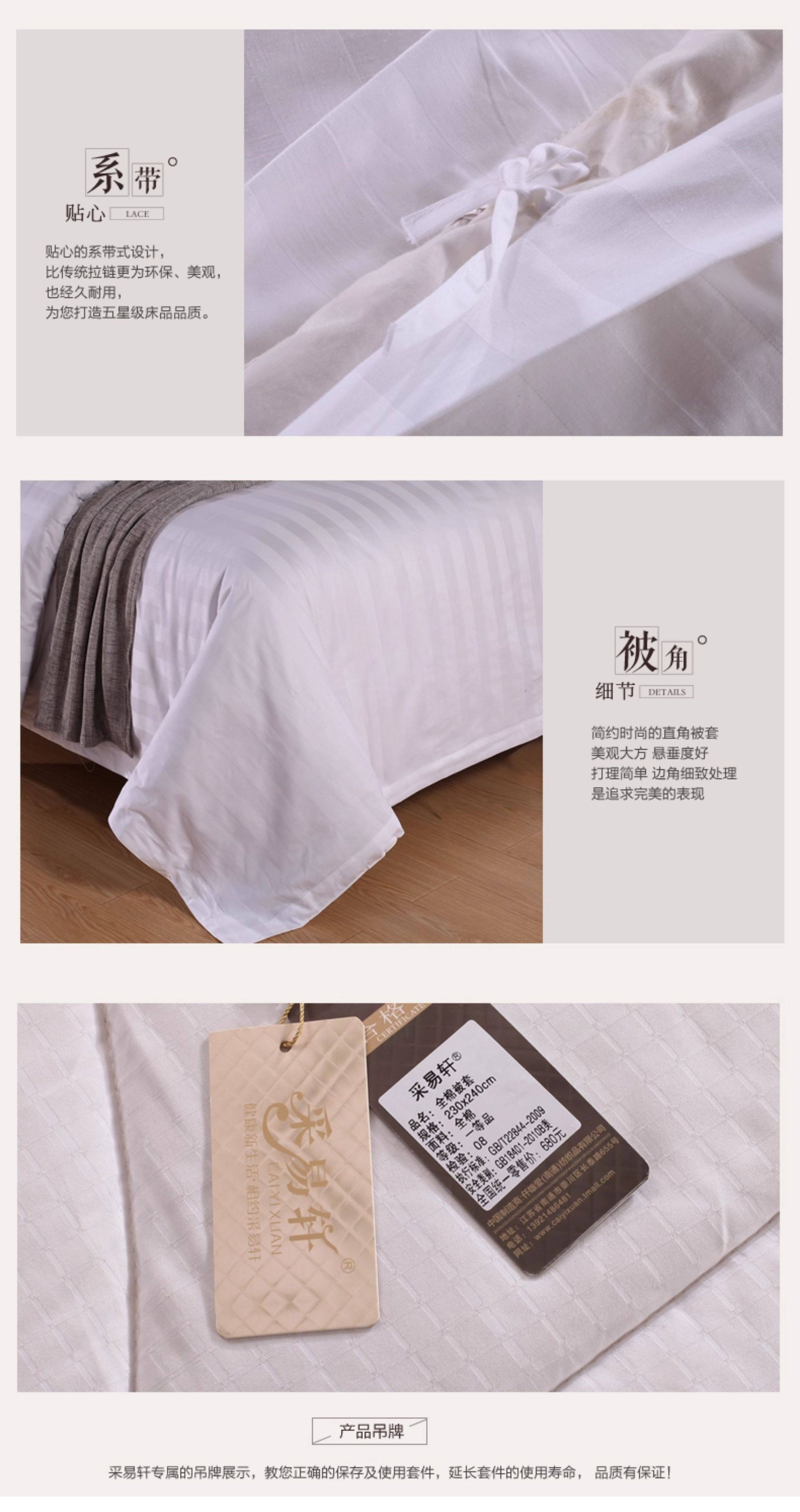 酒店被套單件全棉緞條純白色被罩賓館酒店醫院雙人1.8m床上用品