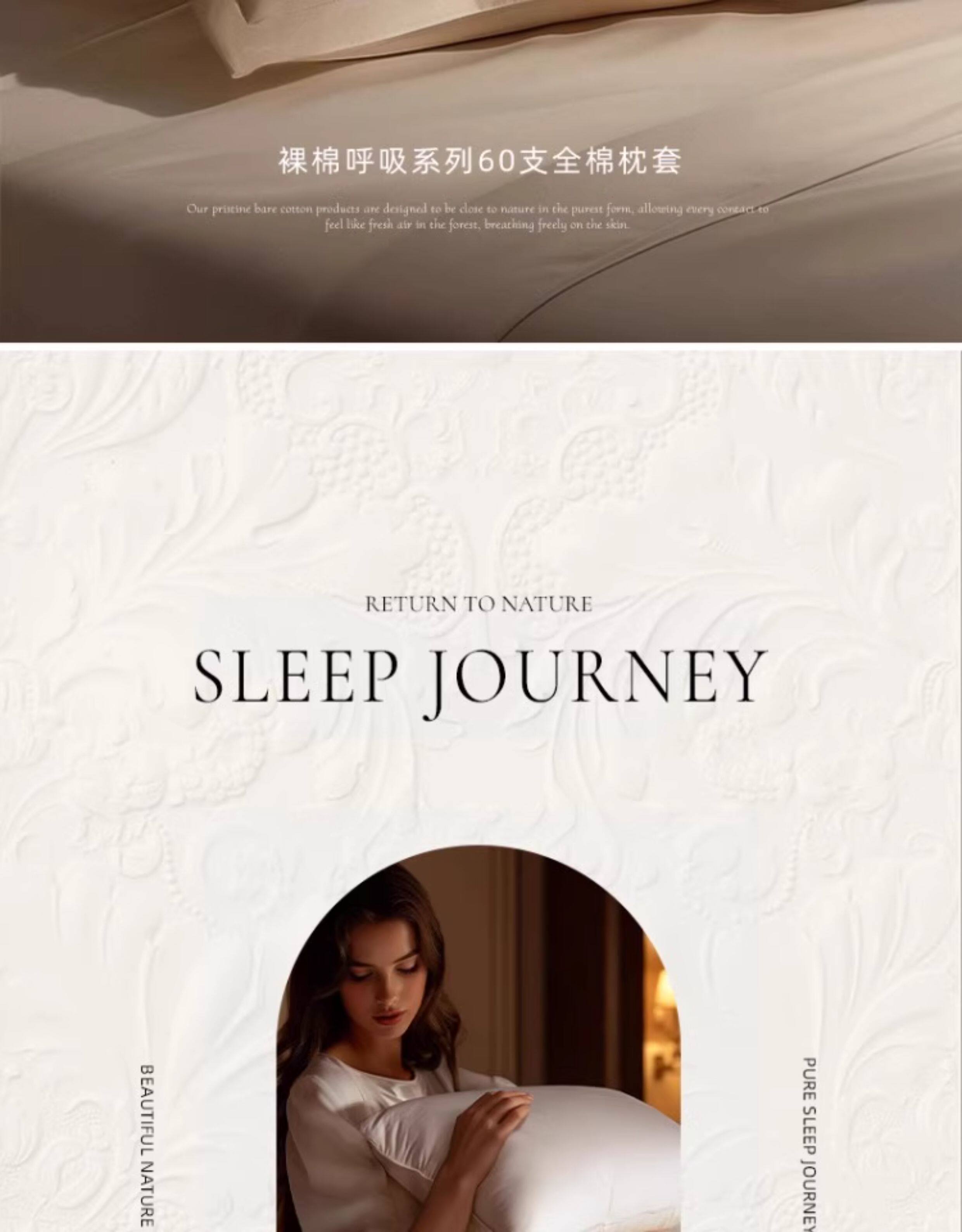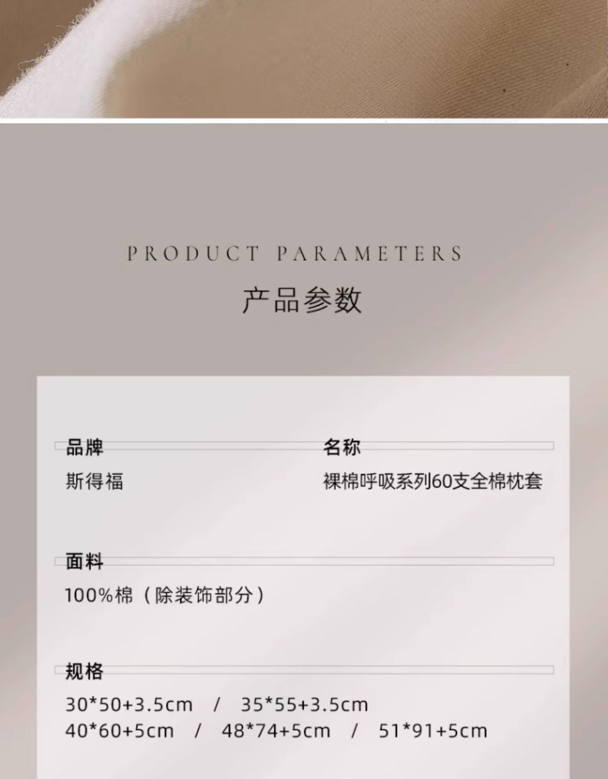 斯得福60支裸棉全棉兒童枕套家用純棉親膚裸感透氣枕頭套加大