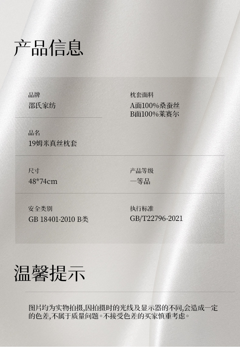 | 商品條形碼 | 枕套A版:100%桑蠶絲 B版:100%萊賽爾 |