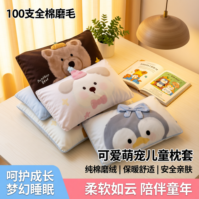 100支全棉磨毛兒童枕套 可愛狗狗幼兒園純棉磨絨保暖枕頭套枕皮