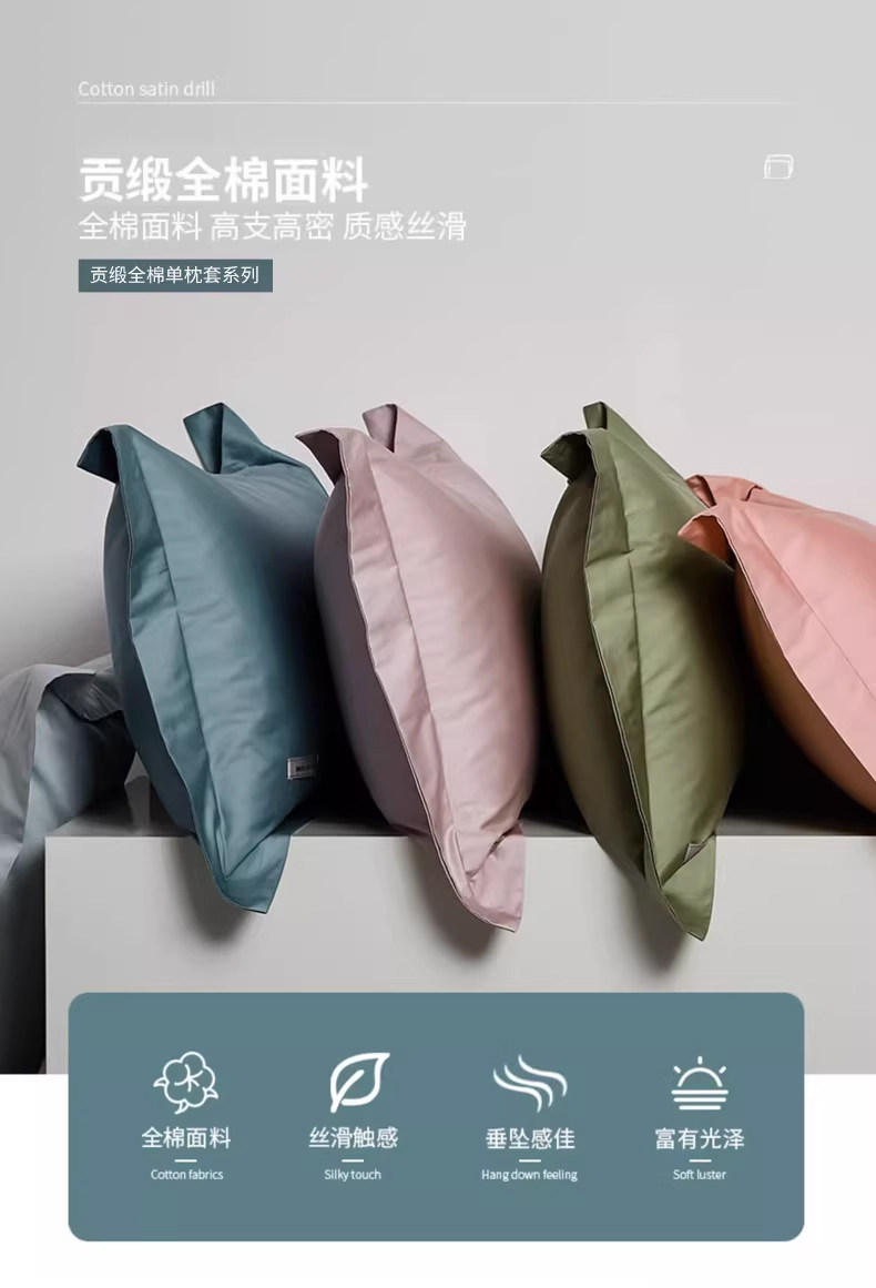 ROLAND LIVE100全棉長絨棉枕套純棉貢緞春秋四季單人枕頭套一對裝