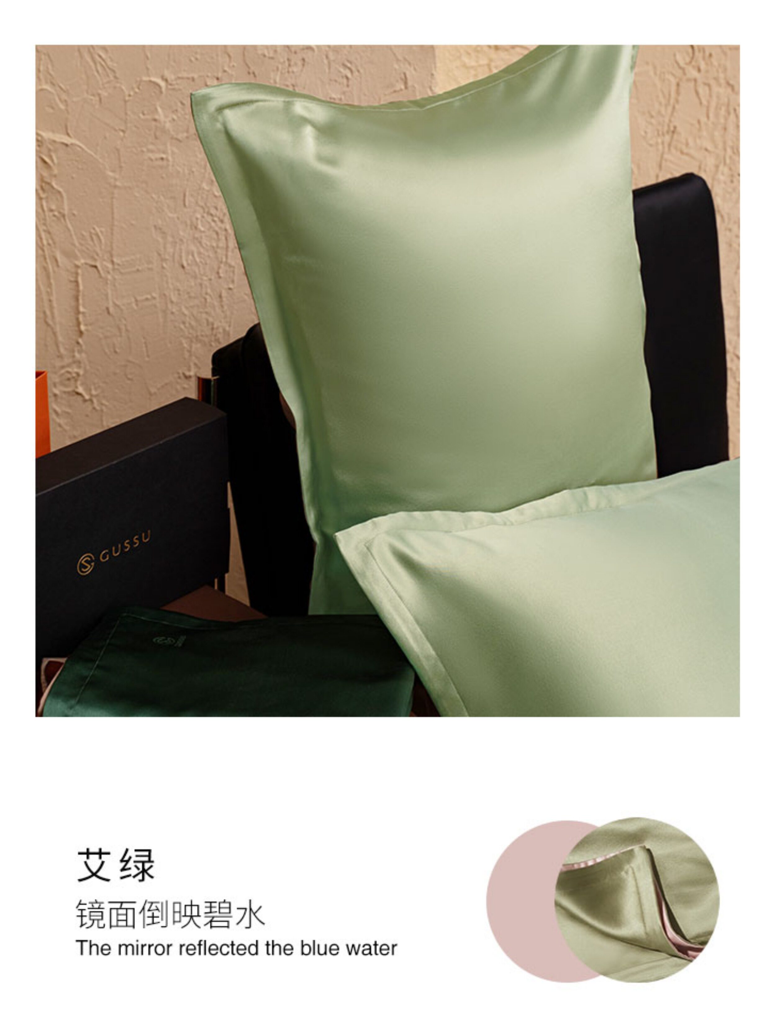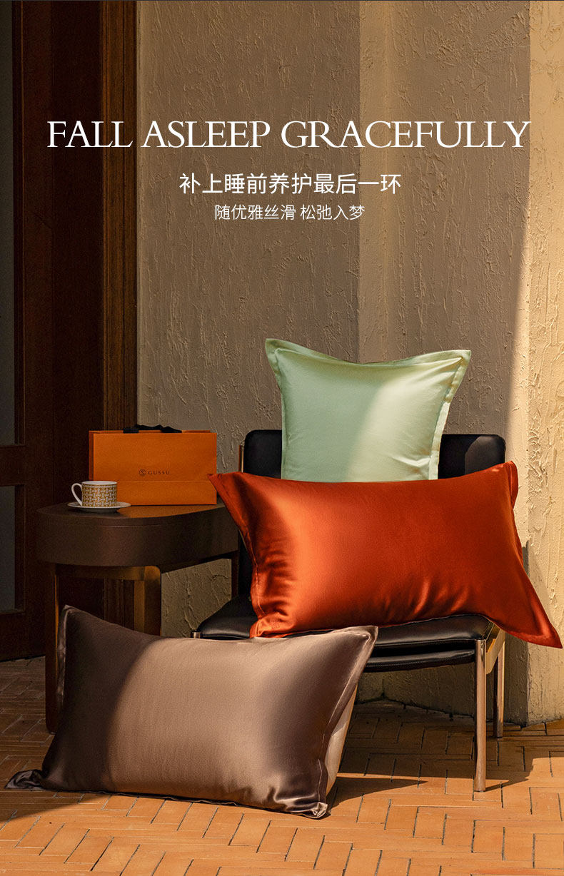 GUSSU姑蘇治錦22姆米真絲枕套桑蠶絲養顔護髮枕頭套純色單衹禮盒