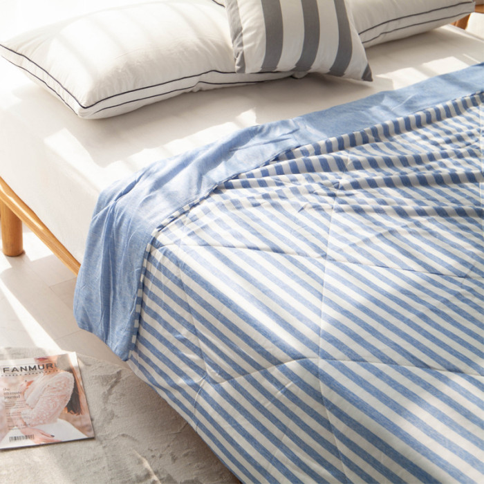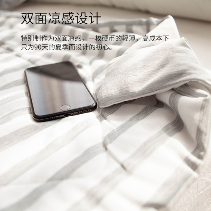 日式條紋雙面冷感科技薄被家用夏季被子薄款夏涼被雙人冰絲可水洗