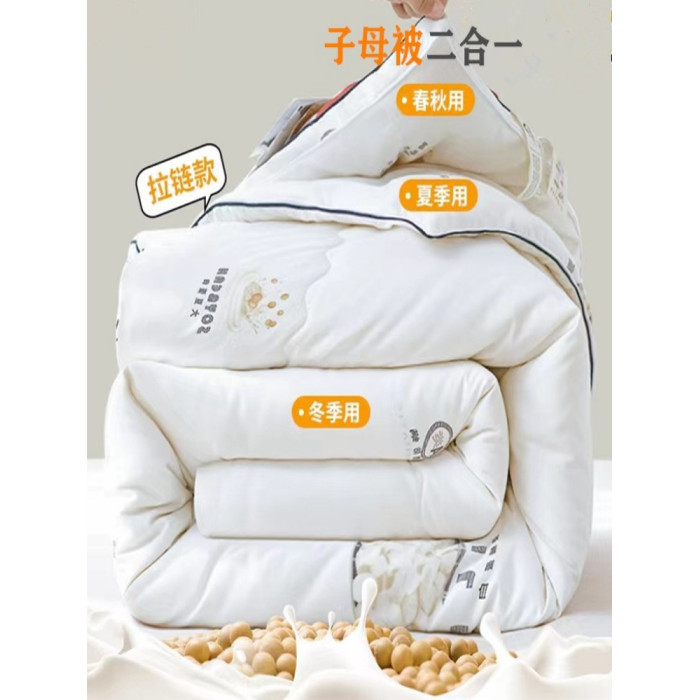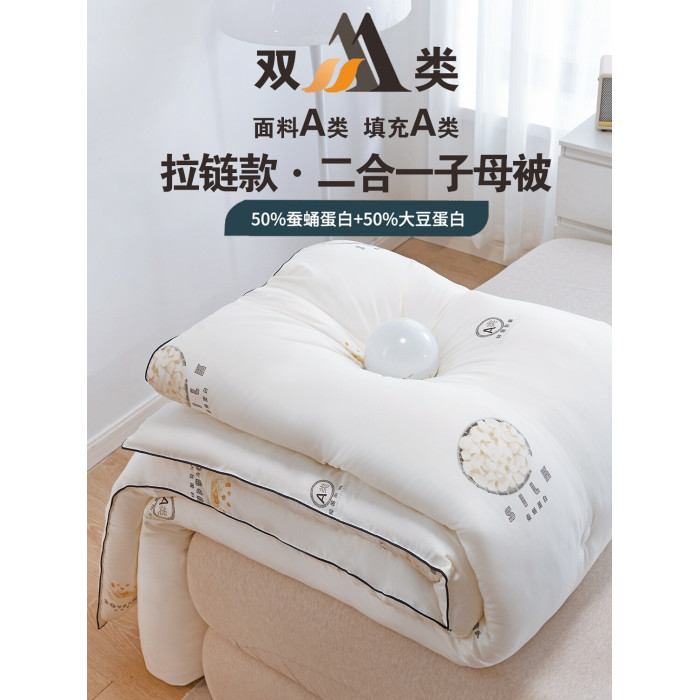 A類蠶絲子母被二合一拉鍊款大豆蠶蛹纖維被全棉被子被芯加厚冬被