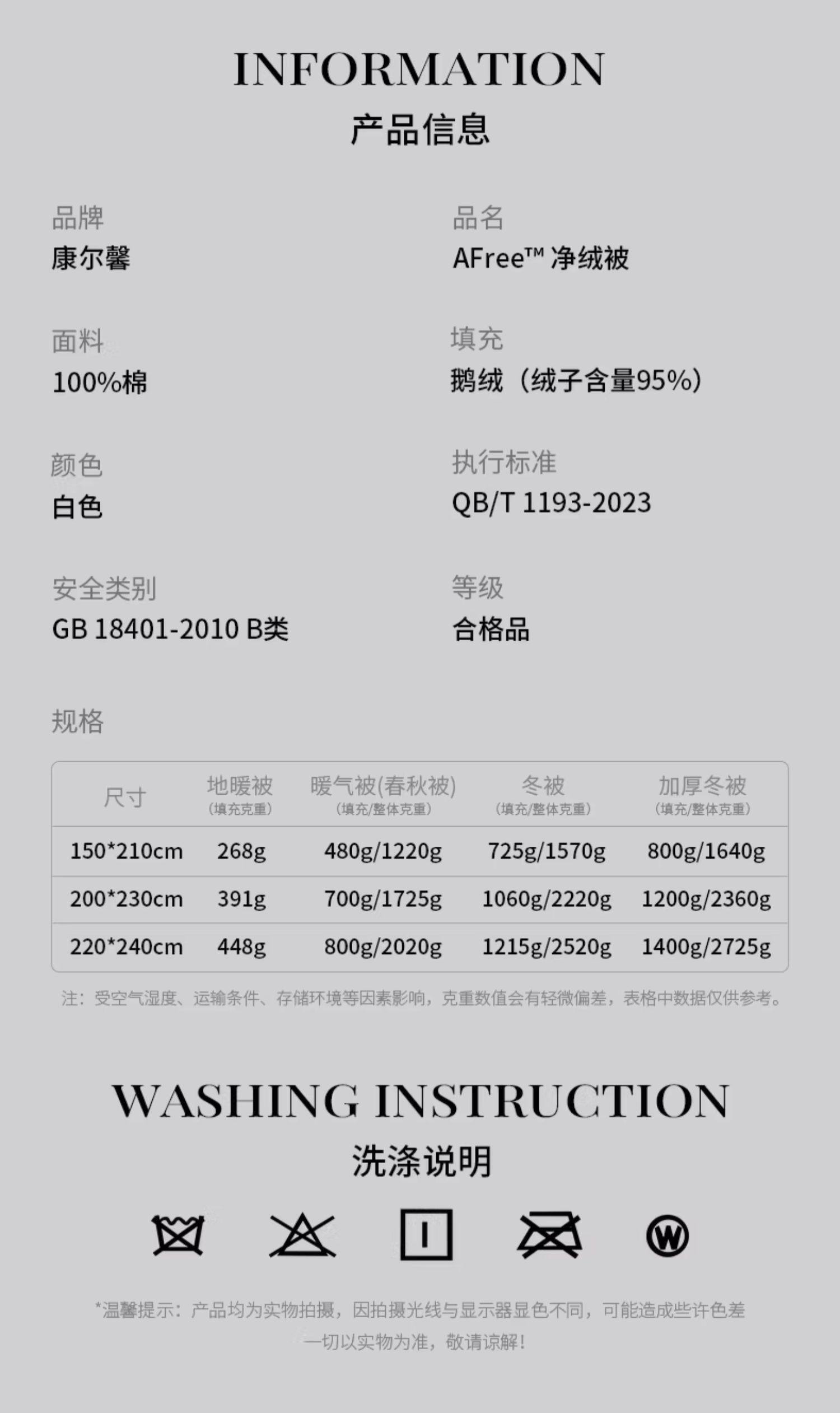康爾馨AFree淨絨被羽絨被120支純棉95白鵞絨被子冬被被芯春秋被