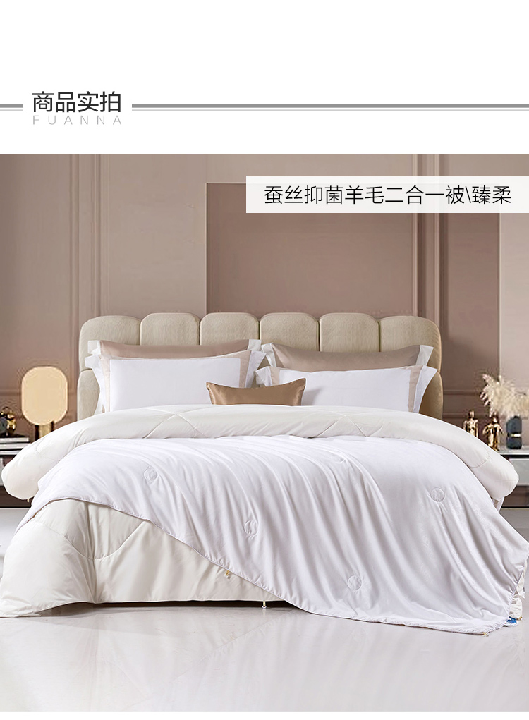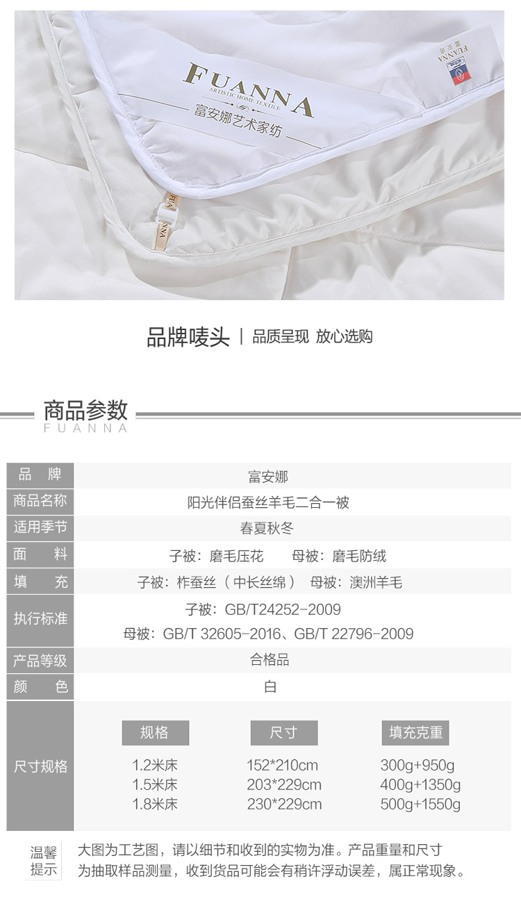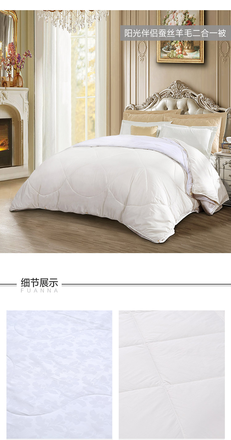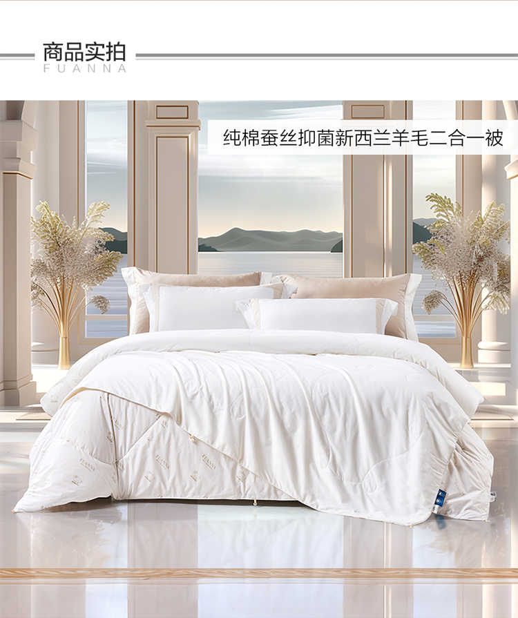 富安娜100%澳洲羊毛冬被蠶絲二合一保暖被子四季通用學生宿舍被芯