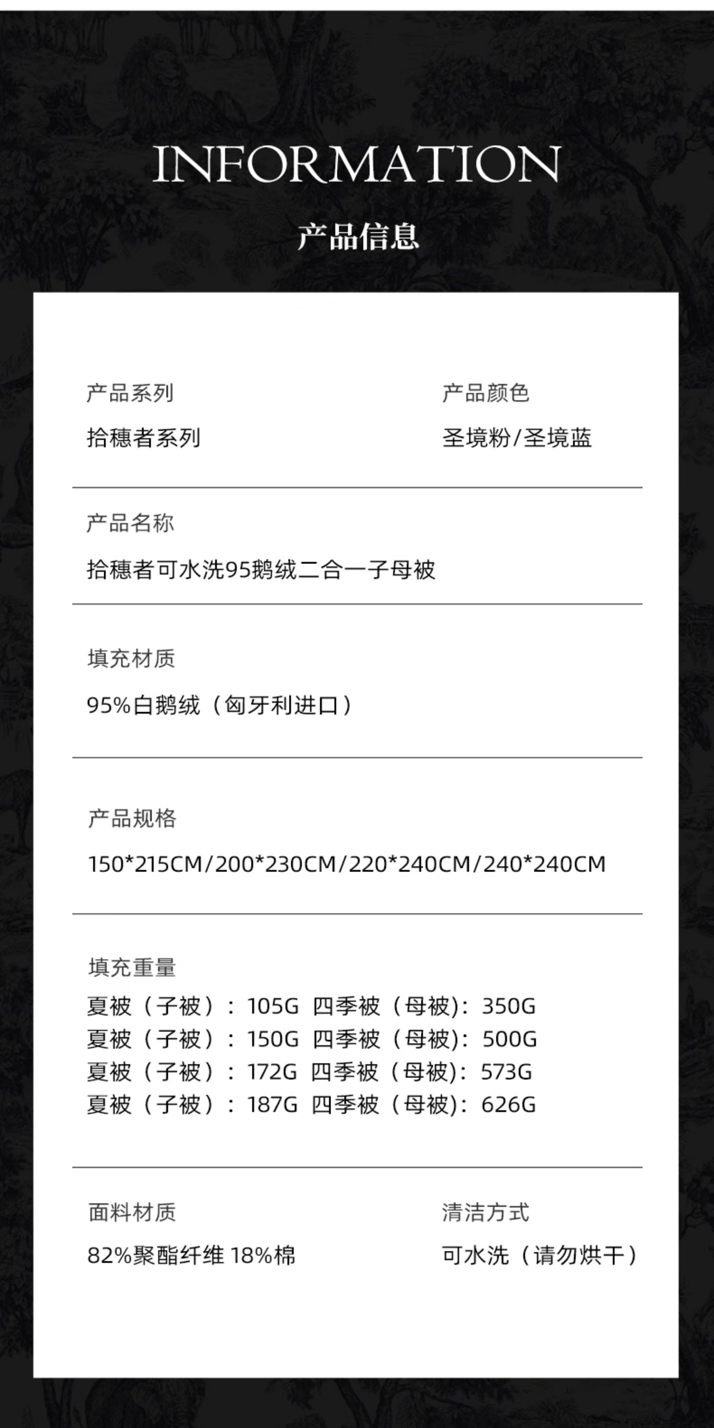 ESTEEM/宜庭拾穗者匈牙利95白鵞絨被子母被二合一被【專櫃同款】