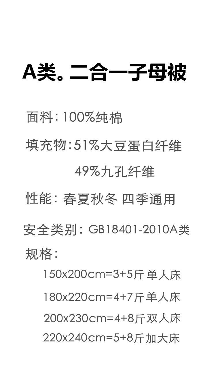 A類拉鍊款二合一子母被大豆纖維全棉被子被芯冬被加厚保暖四季被