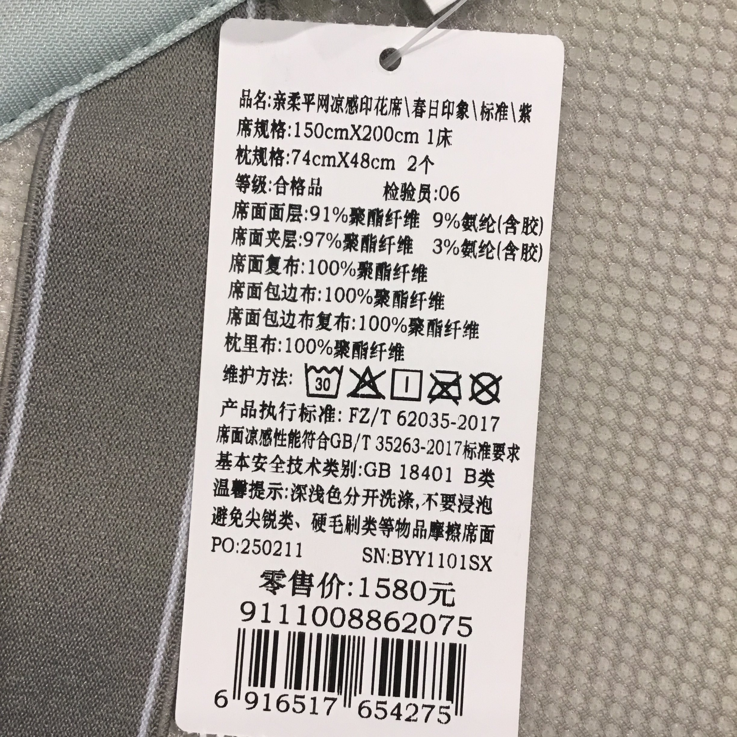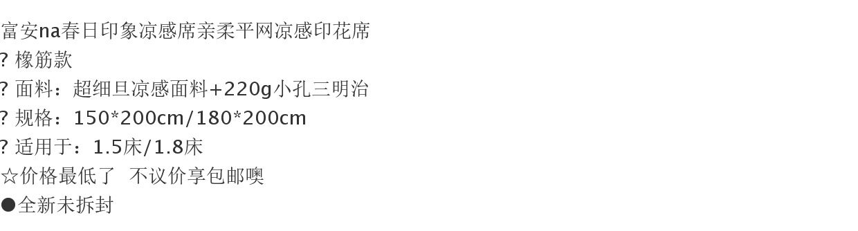 | 套裝組件 | 涼蓆+枕套 |