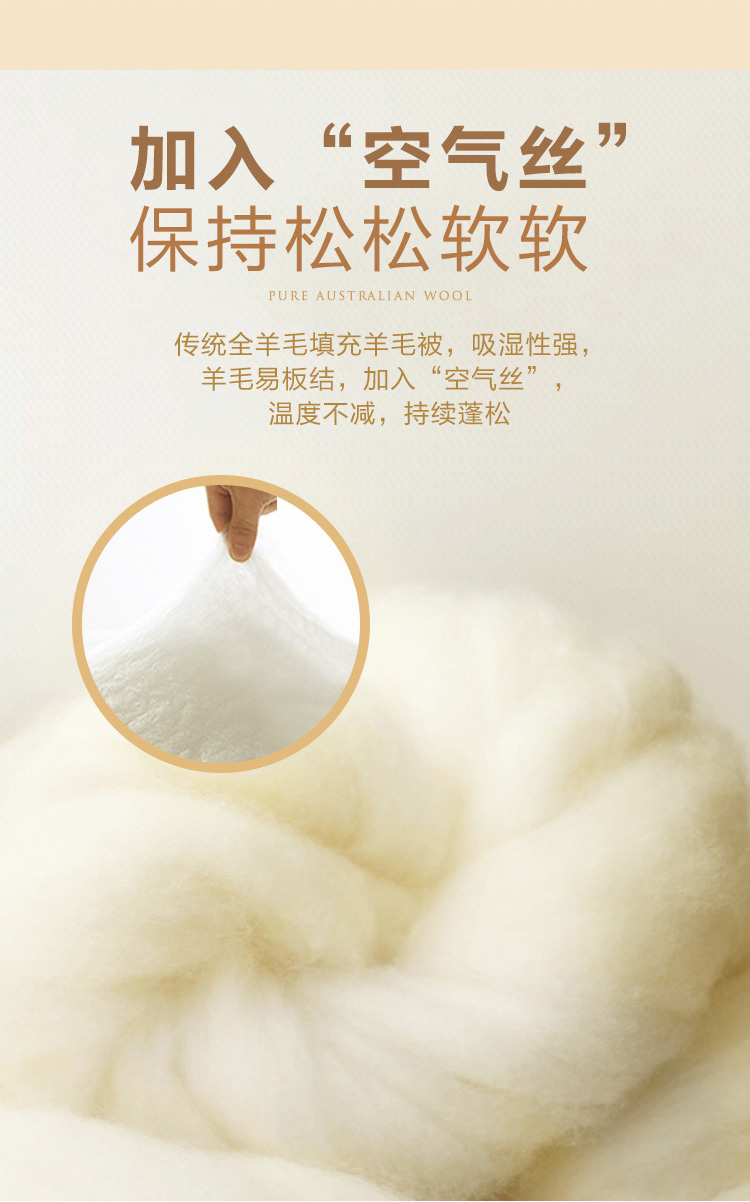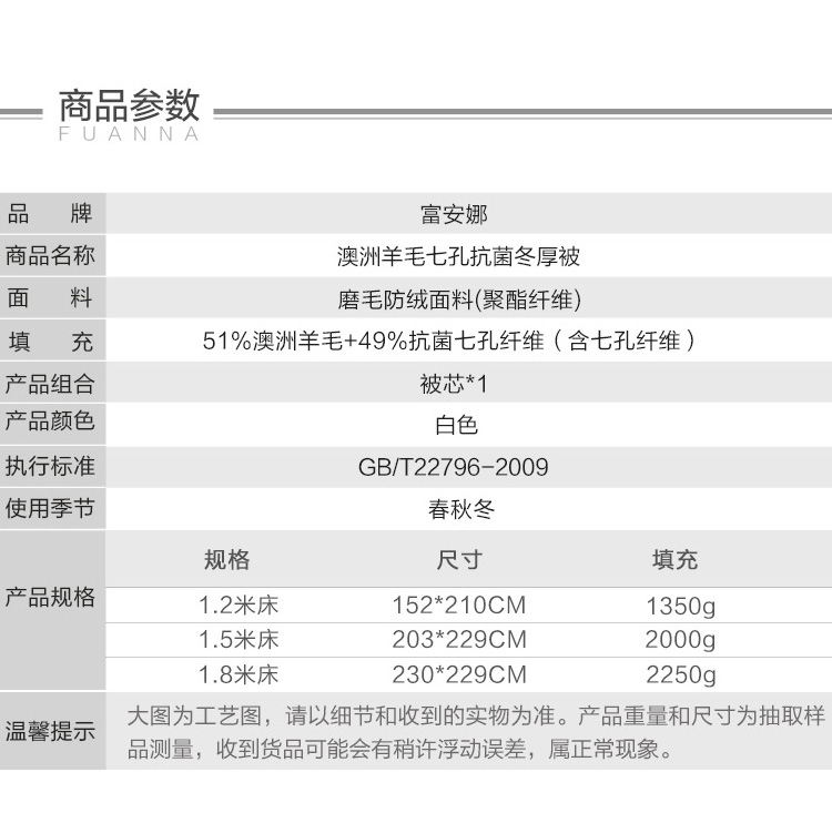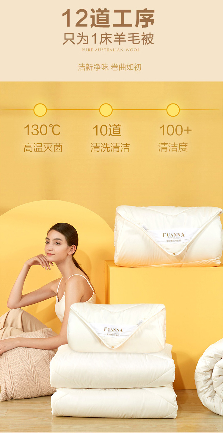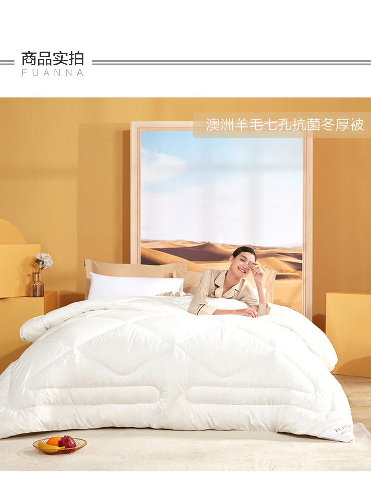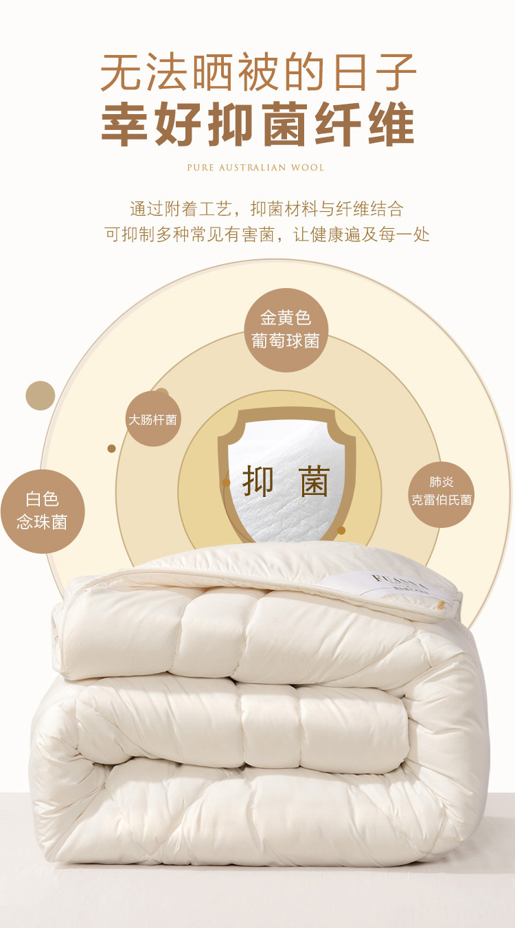 富安娜澳洲進口羊毛被單雙人抗菌春秋被保暖冬被四季通用宿舍被子
