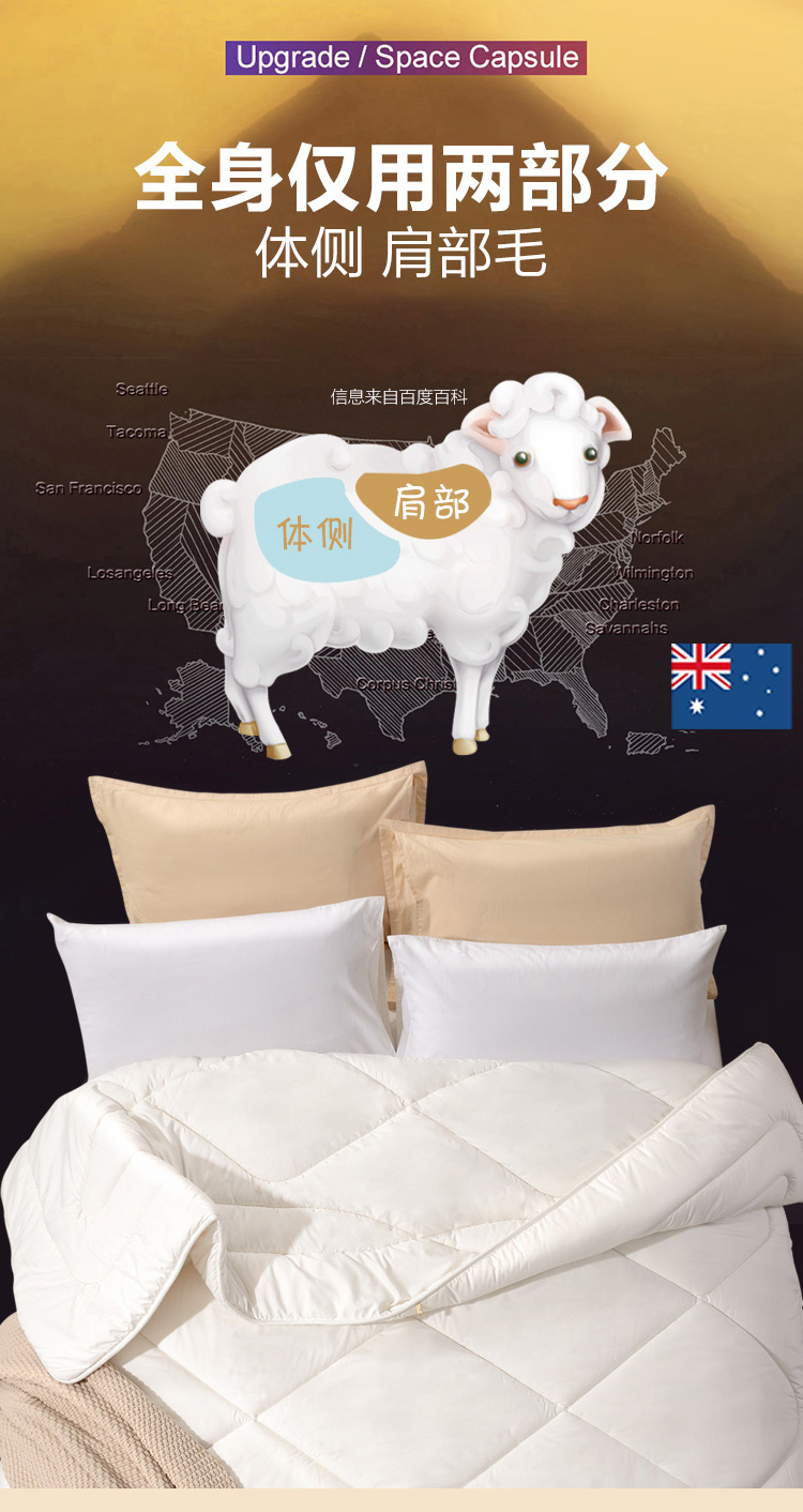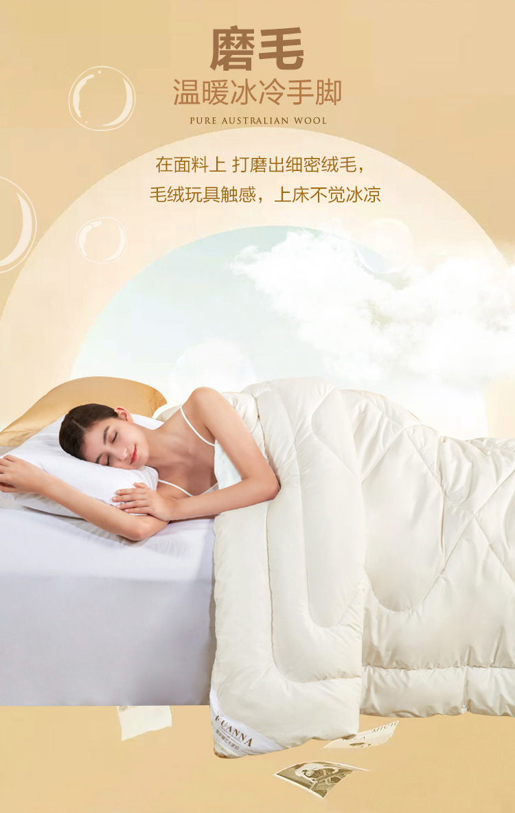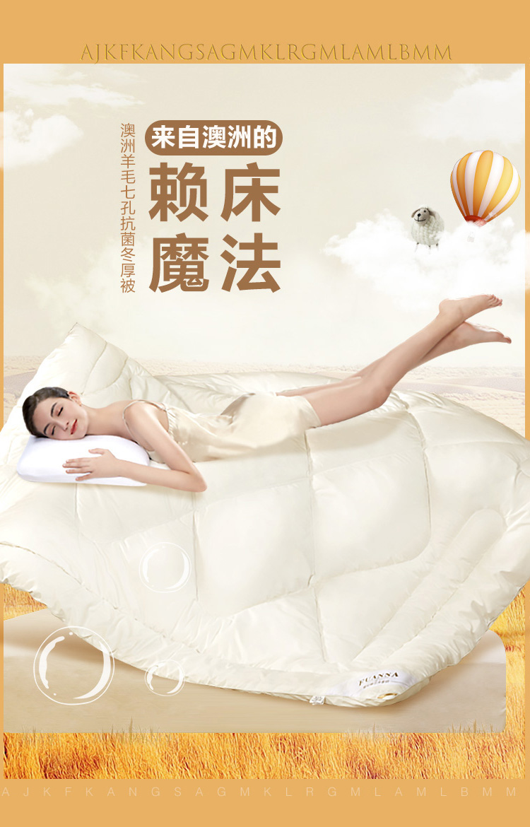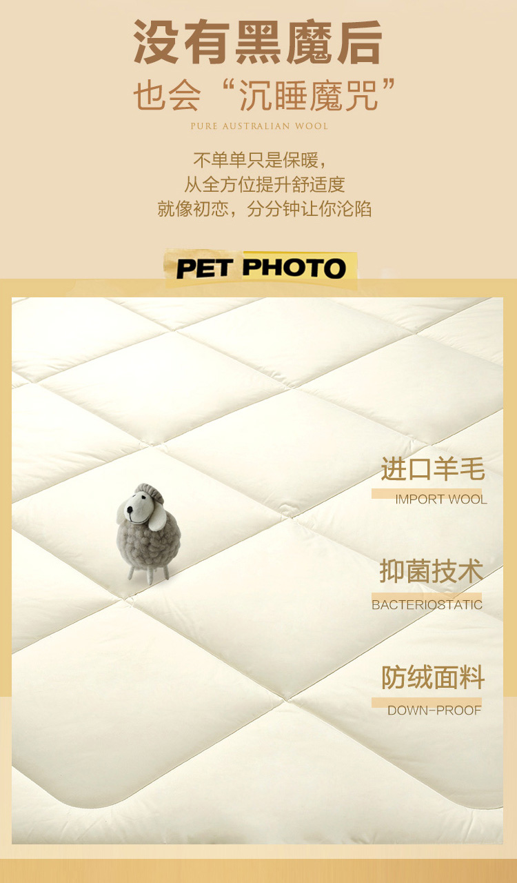 富安娜澳洲進口羊毛被單雙人抗菌春秋被保暖冬被四季通用宿舍被子