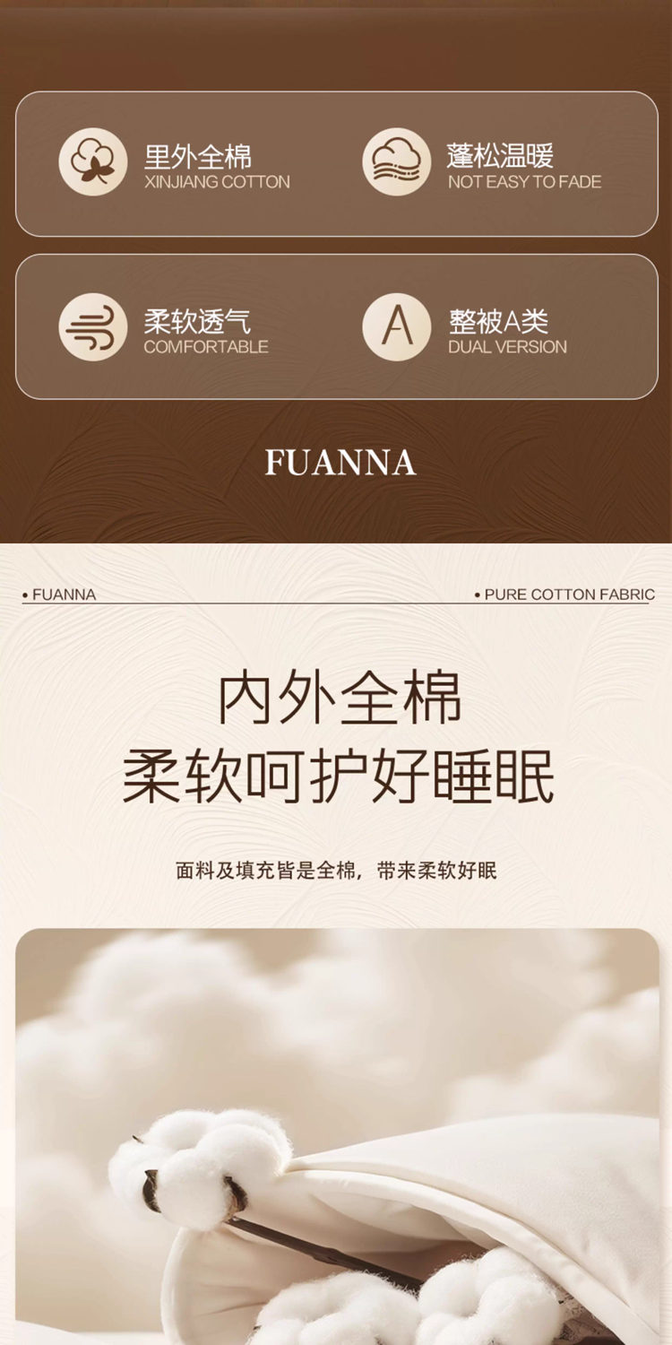富安娜被子冬被棉被新疆純棉花被芯加厚保暖全棉絮春秋被2025新款
