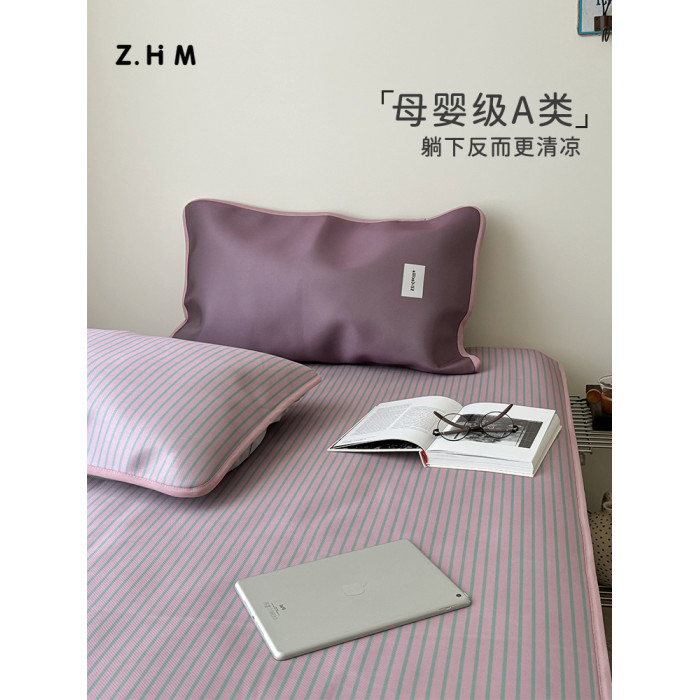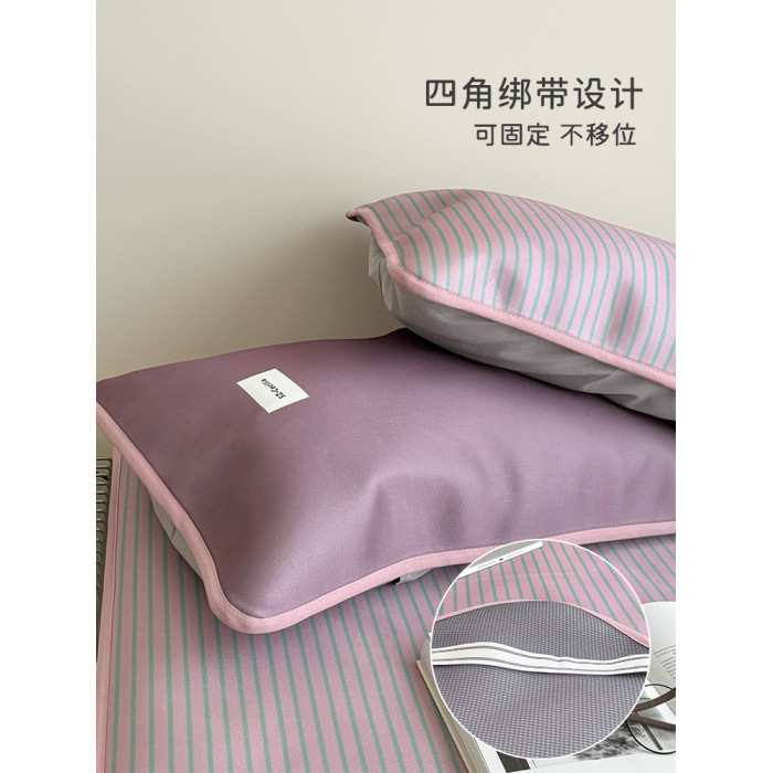 日式無印風條紋冰絲涼蓆夏季a類母嬰級軟蓆子可機洗夏天藤蓆折曡