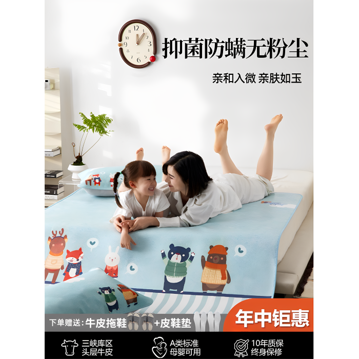 華議兒童彩繪牛皮涼蓆1.2米頭層牛皮蓆天然軟皮蓆母嬰防蟎真皮蓆