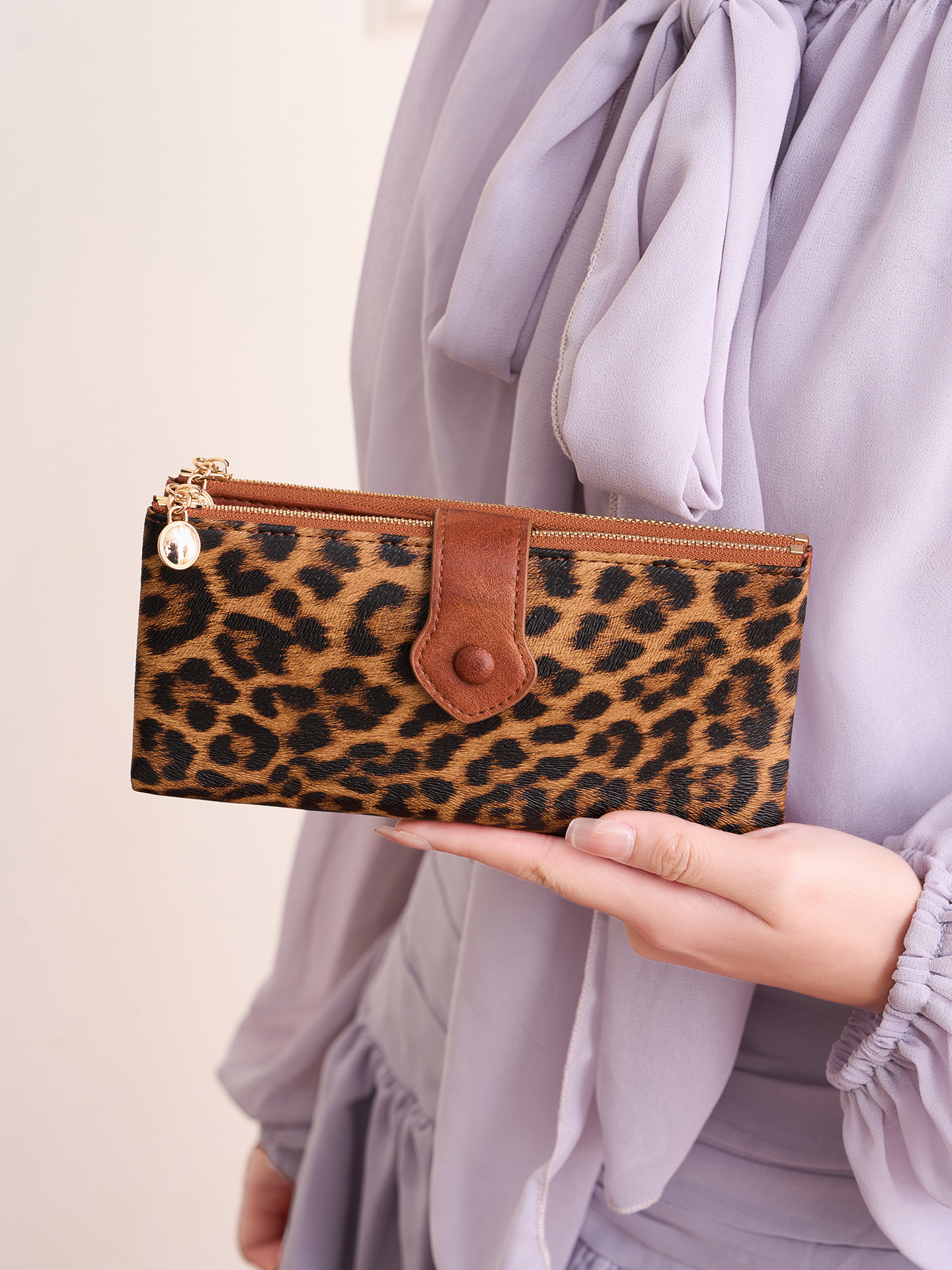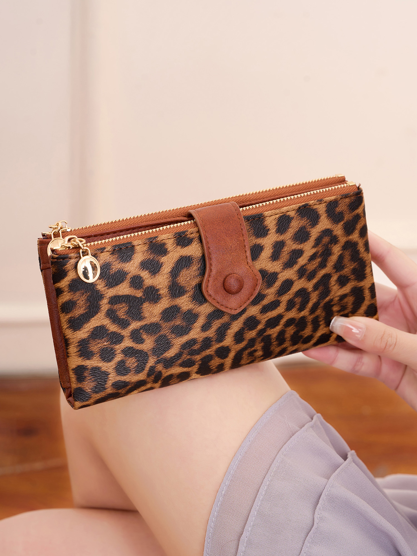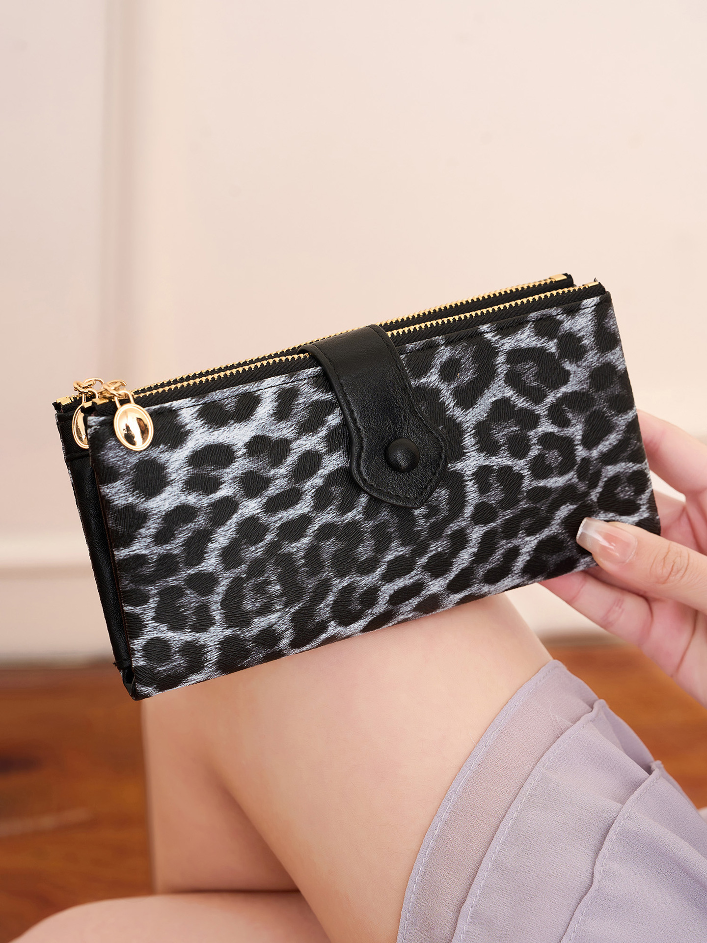 新款女士雙折長錢包簡約大容量搭釦雙拉鍊錢包多功能手拿包
