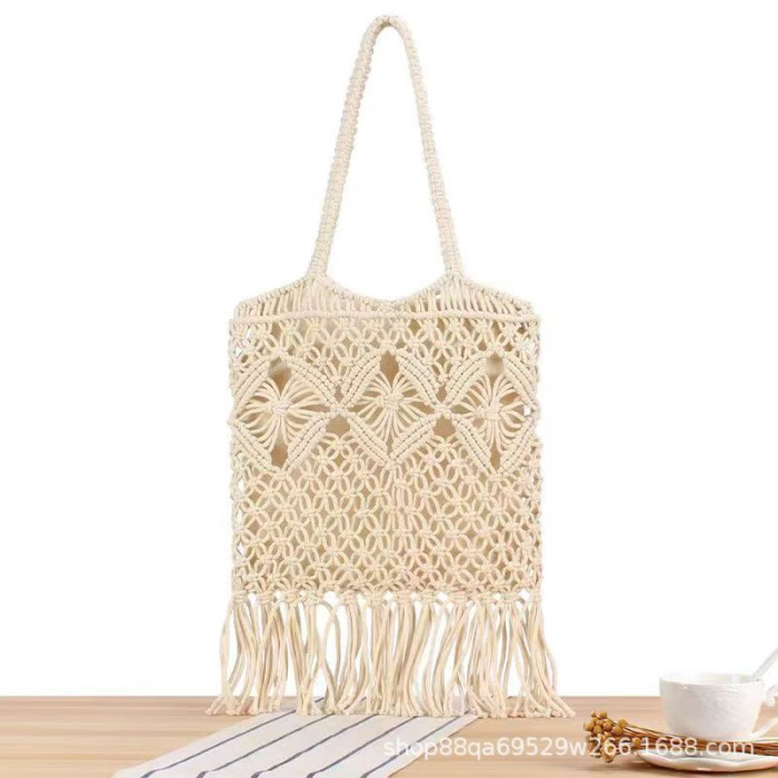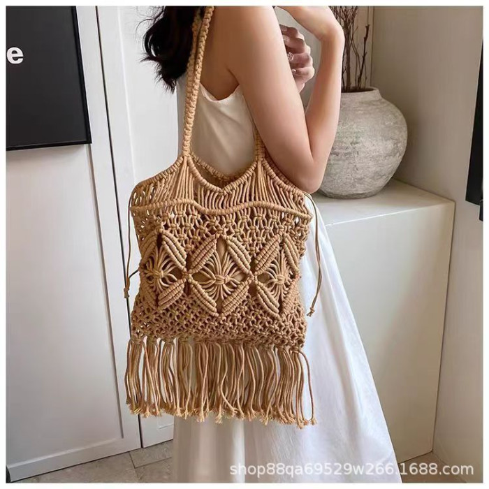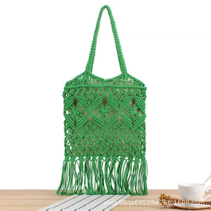 家針織包流蘇包棉線編織包春季新款包包草編包手工編織包