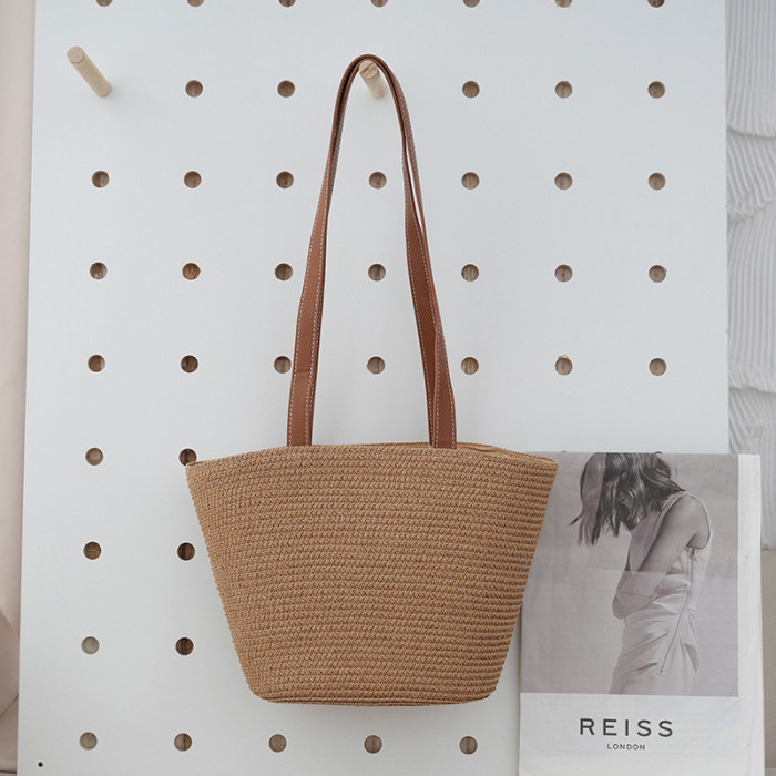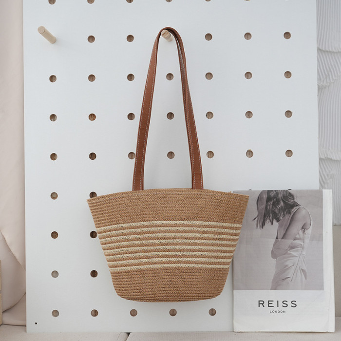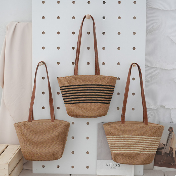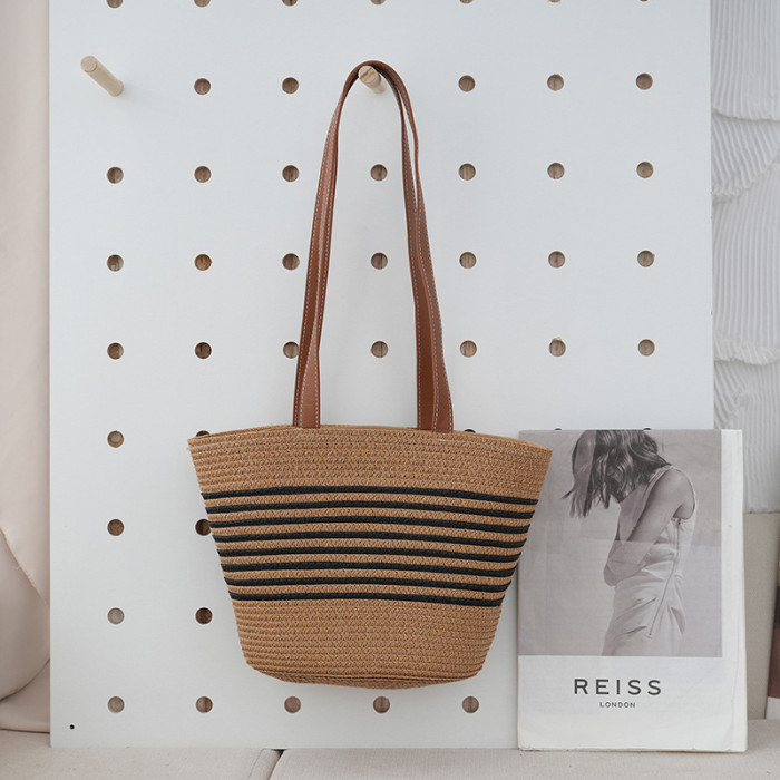 夏天海邊度假草編包女包編織包2024新款條紋通勤單肩托特包大容量
