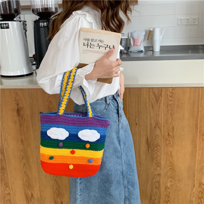 912301 泰國彩虹包少女心編織包ins甜美毛線針織包單肩斜背袋