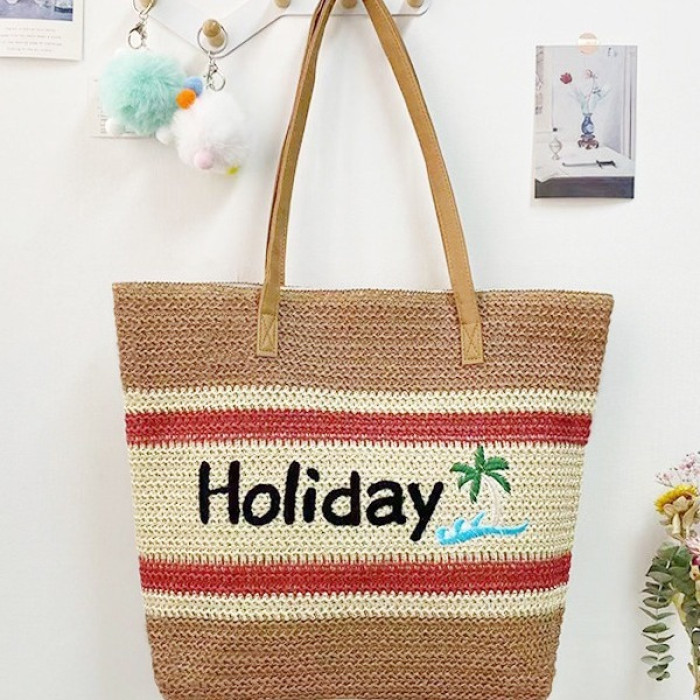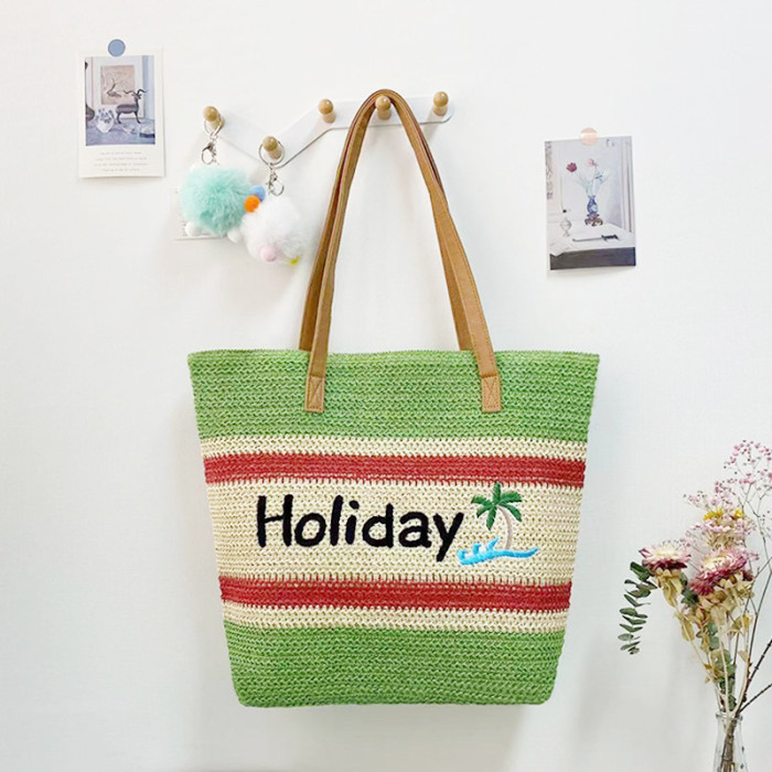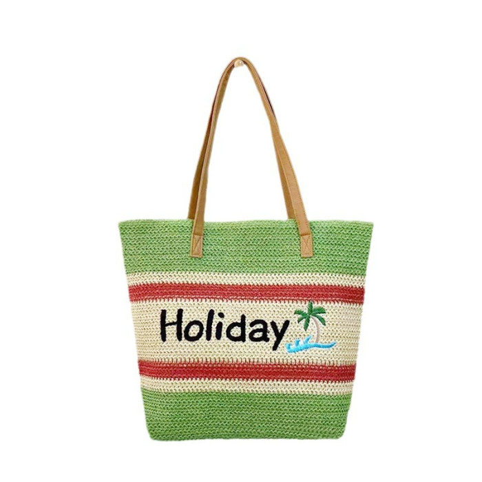 2024新款女士單肩包草編包編織包紙編包購物包媽咪包沙灘包大