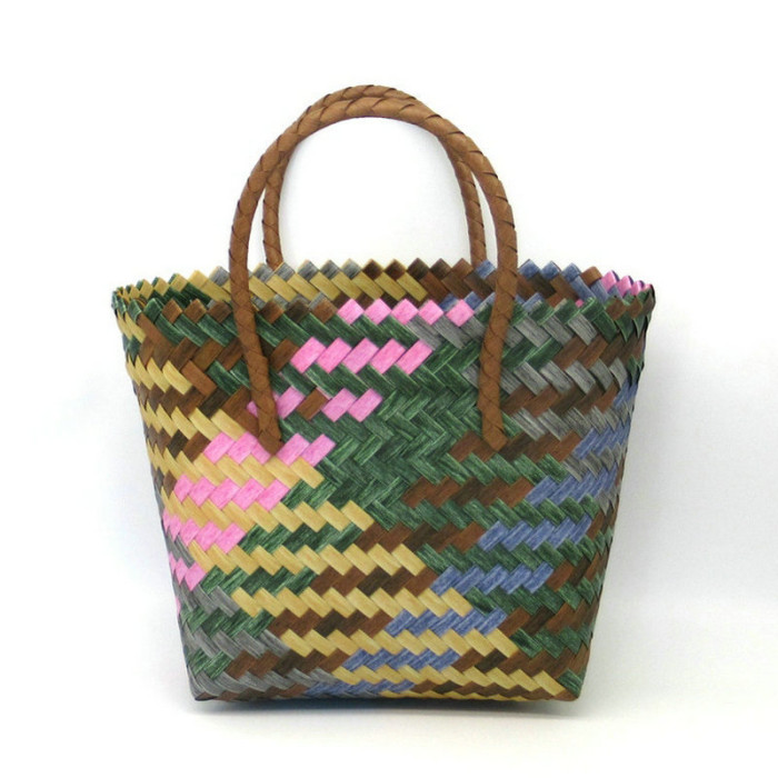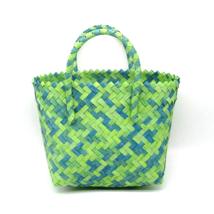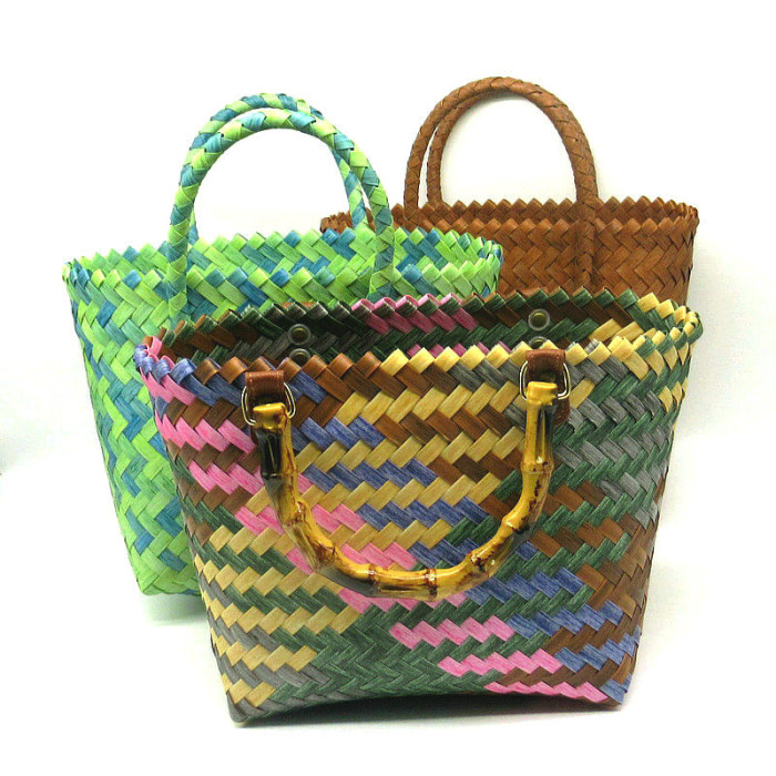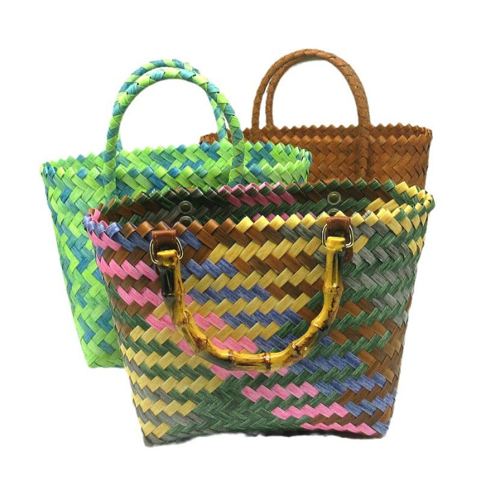 新款手工編織包手提籃子度假休閒女包防水塑膠沙灘包彩色手編包包