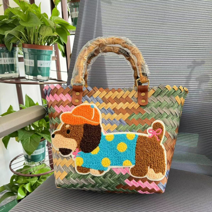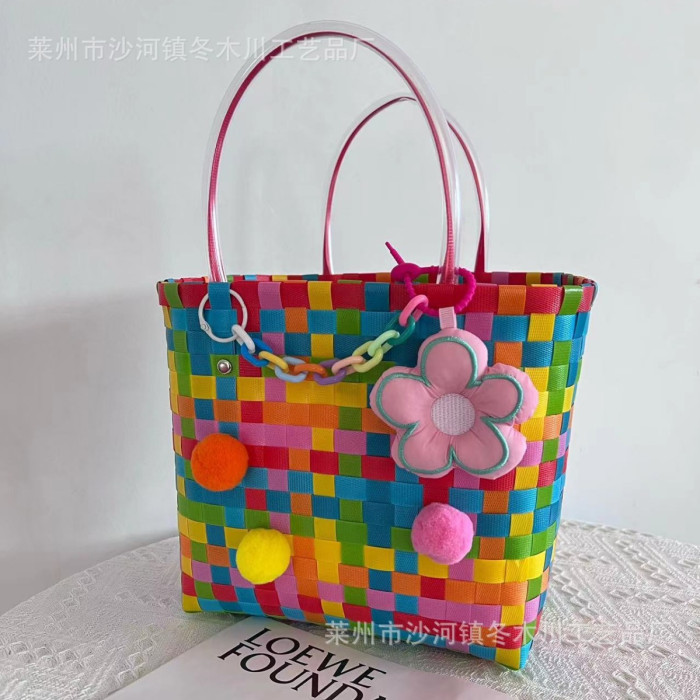 2024新款多巴胺彩色編織包DIY原型包是u提菜籃子包包