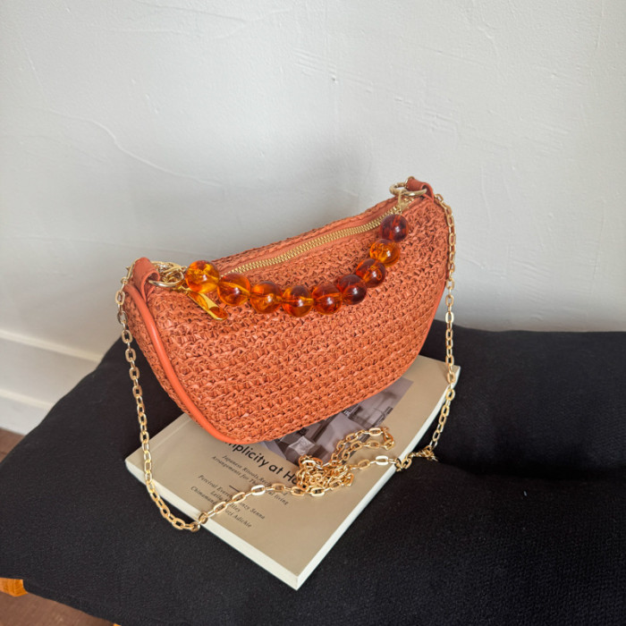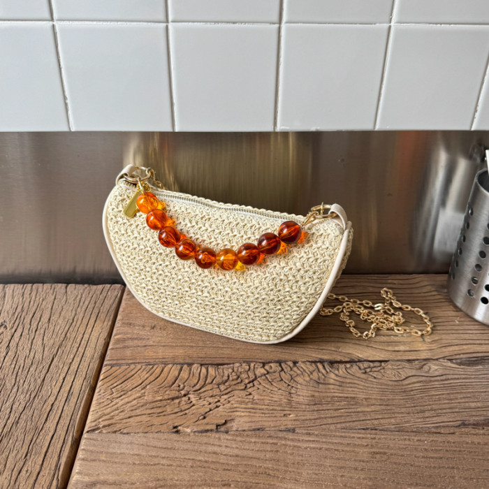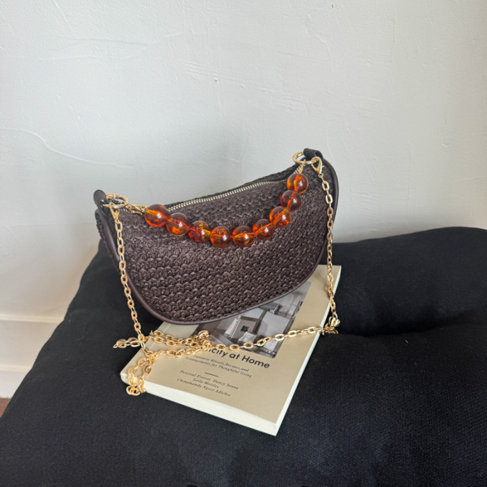 迷你手提編織包女2025新款休閒高級感金屬鏈條單肩斜背餃子包
