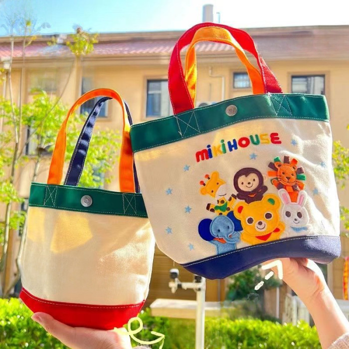 加厚優質miki帆布包卡通字母手提包便當包媽咪包霤娃袋刺綉母嬰包