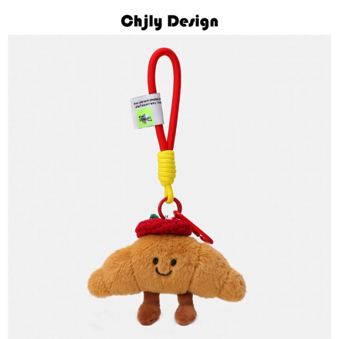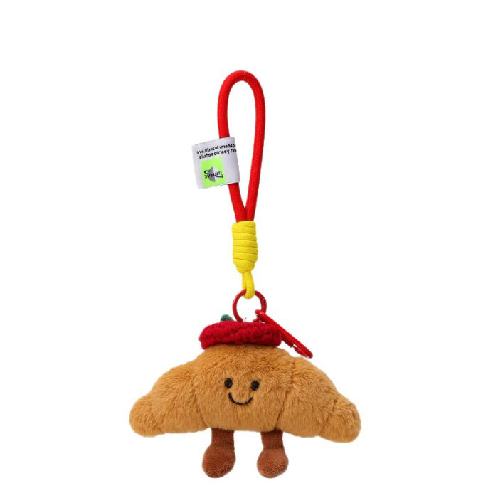 JC同款仿真可愛牛角包麵包公仔包包掛件創意毛絨蔬菜水果鑰匙扣女