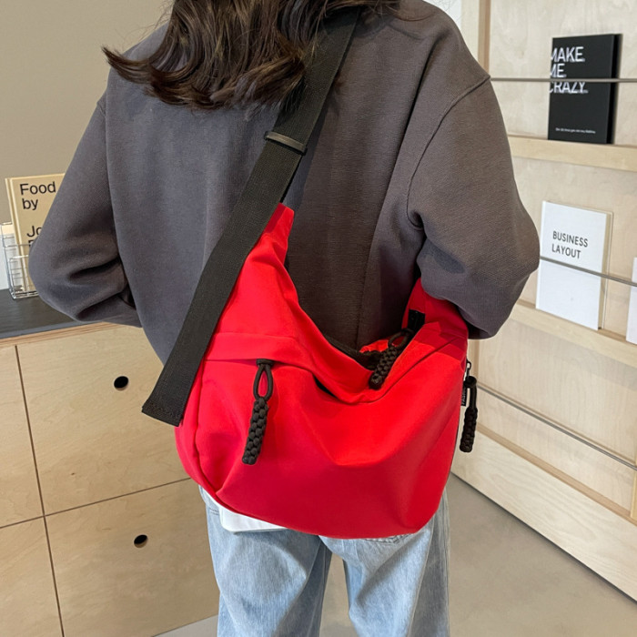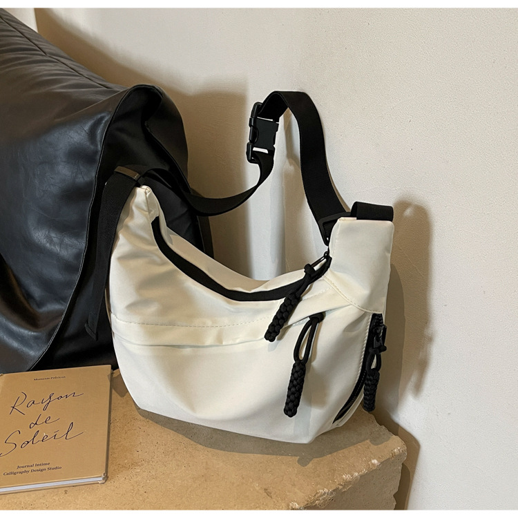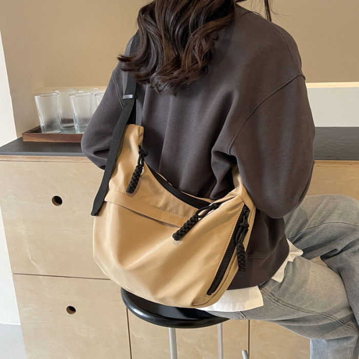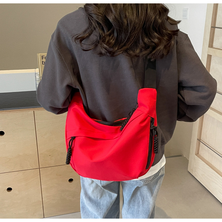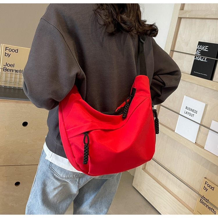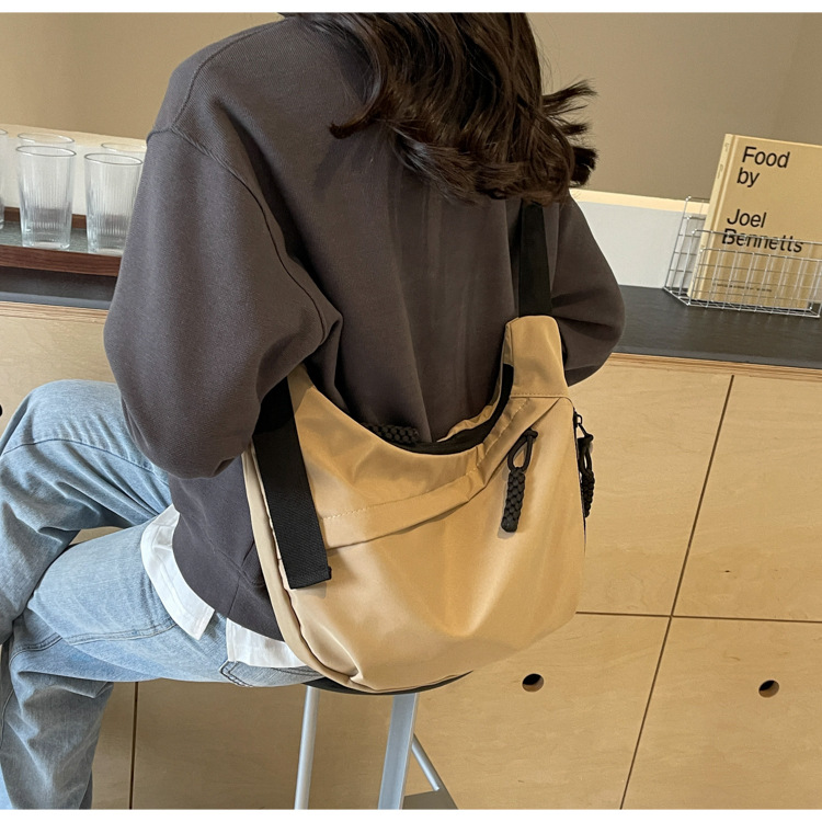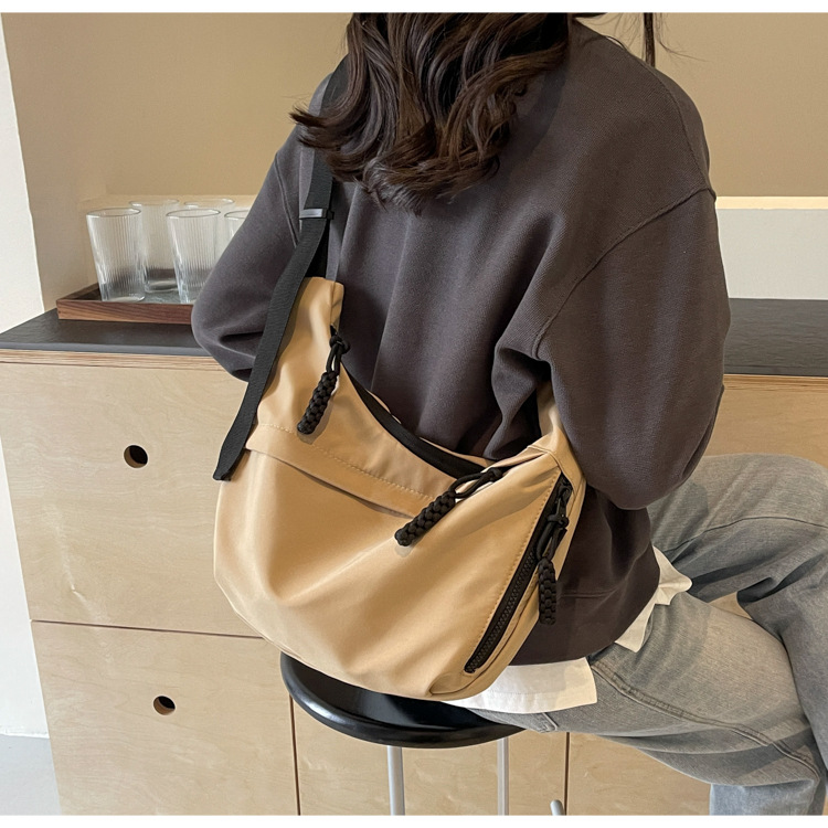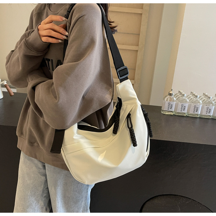 大容量帆布包包女2025新款休閒百搭通勤單肩包輕便運動斜背餃子包