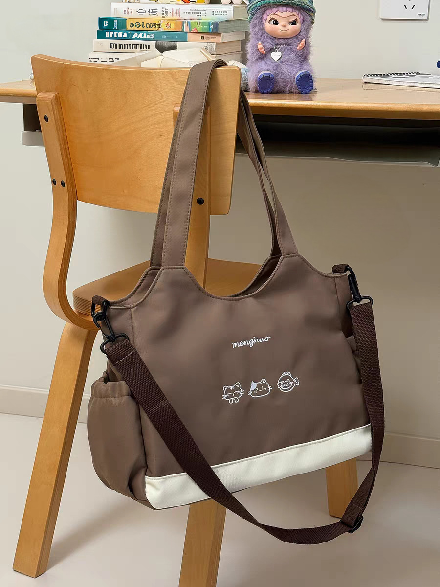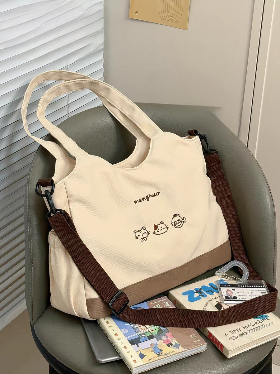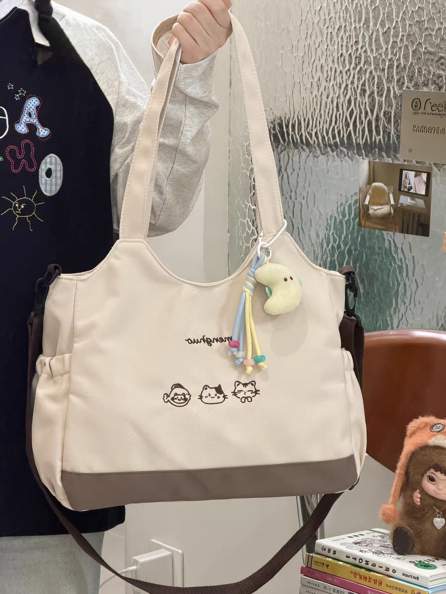 可愛貓咪學生單肩包韓版小衆通勤上課斜後後背包通勤可攜式大容量托特包