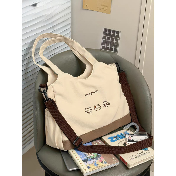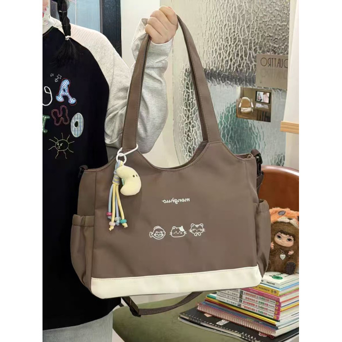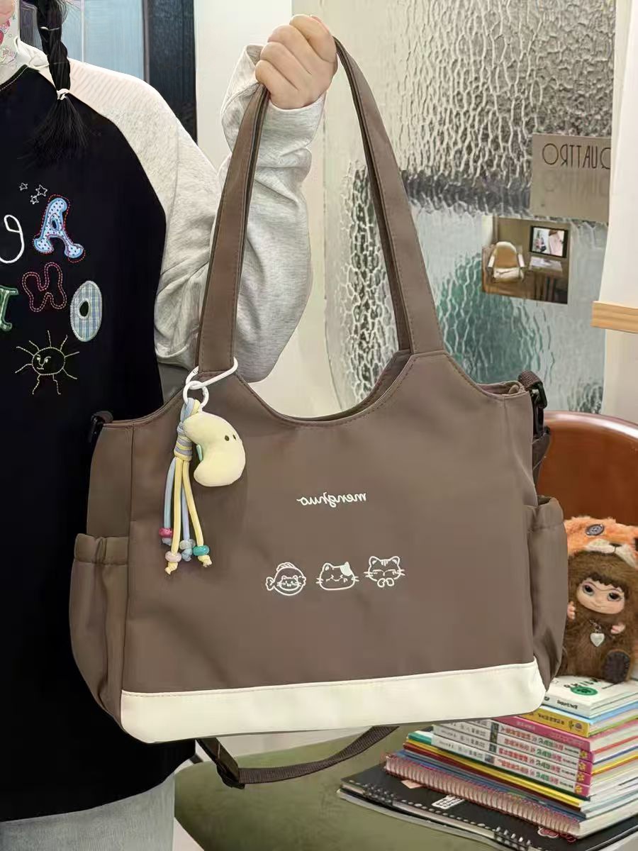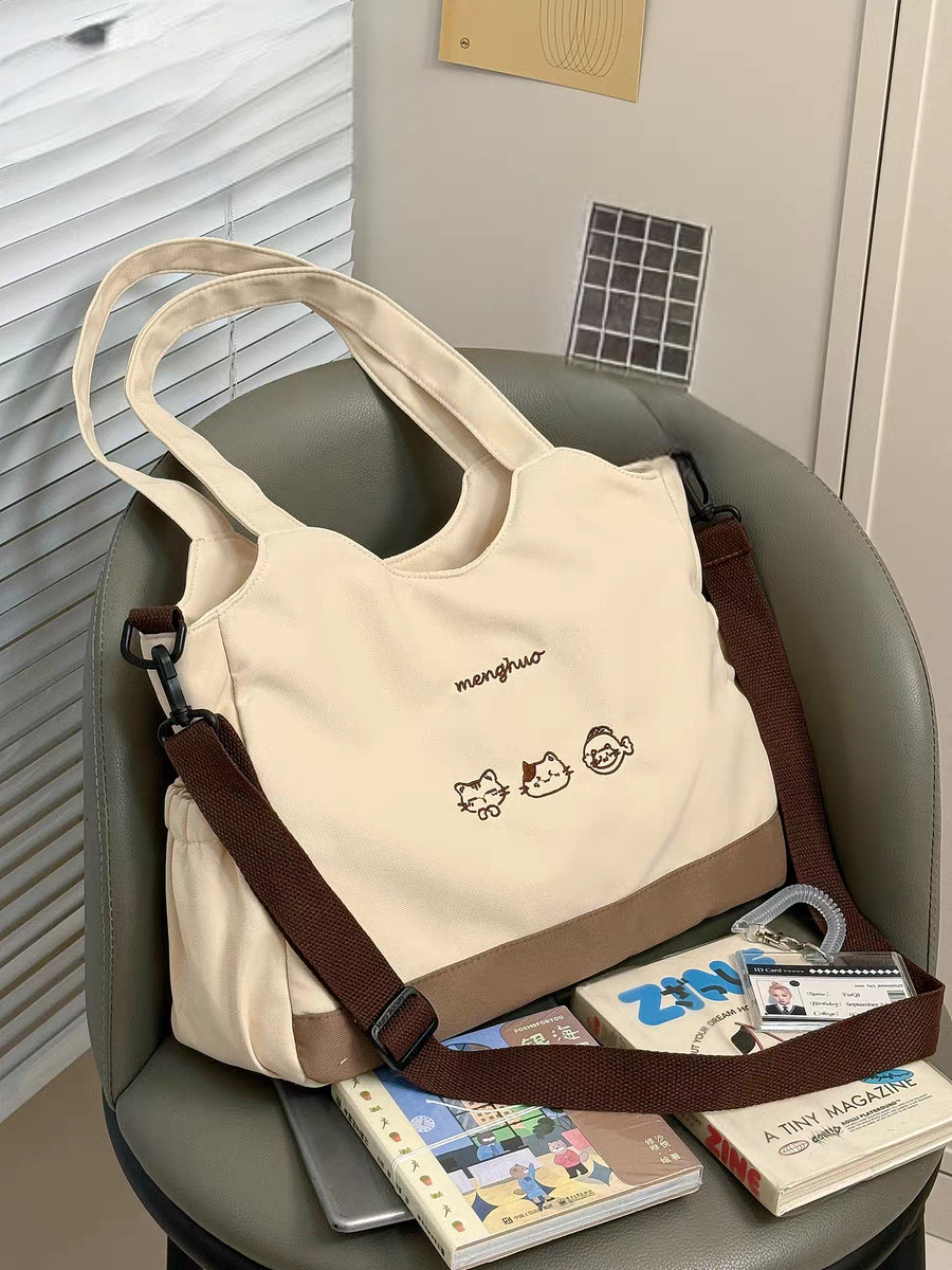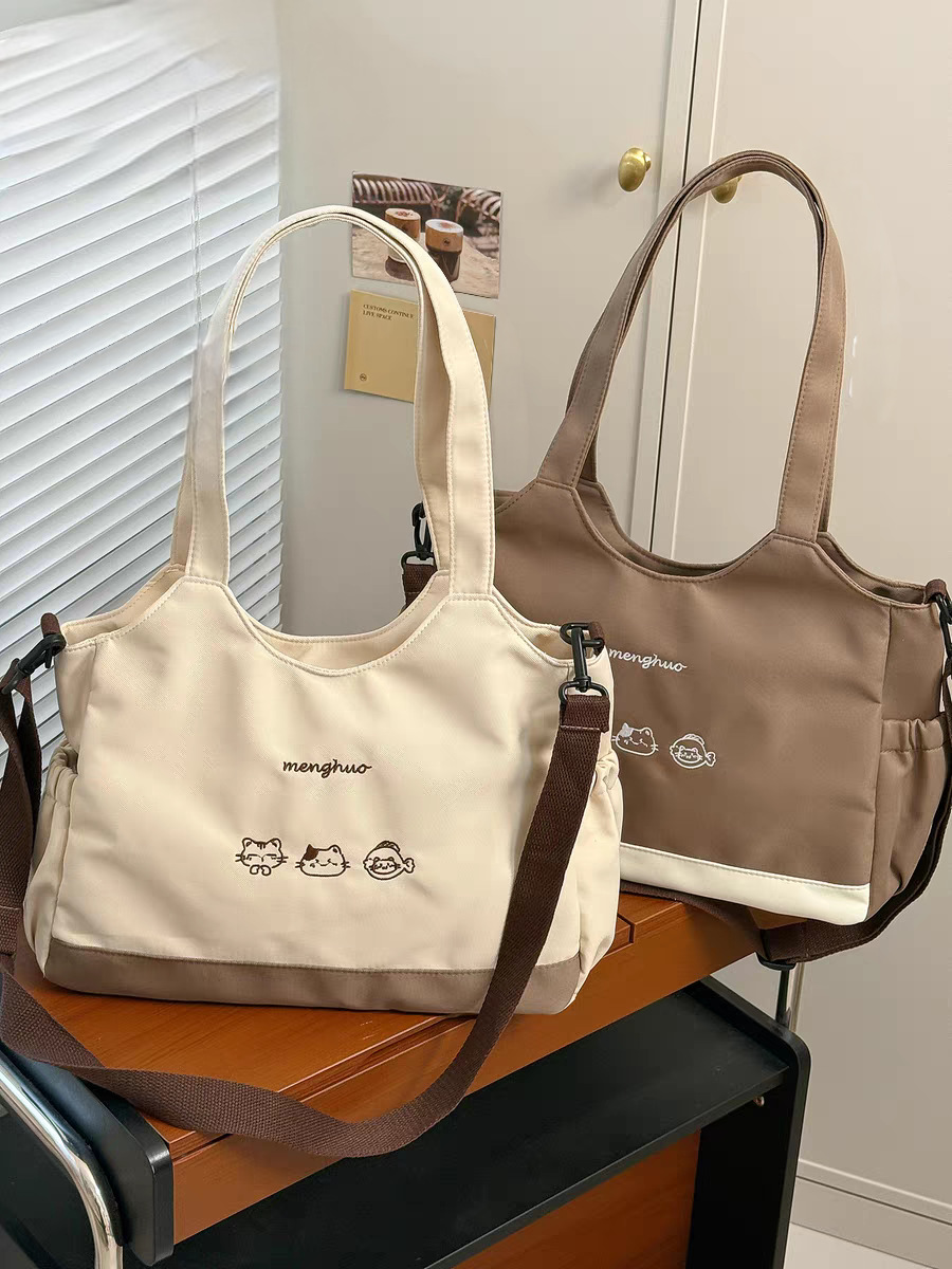 可愛貓咪學生單肩包韓版小衆通勤上課斜後後背包通勤可攜式大容量托特包