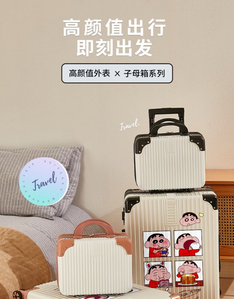 新款行李箱女潮流卡通塗鴉子母旅行密碼箱加厚結實耐用拉桿箱男