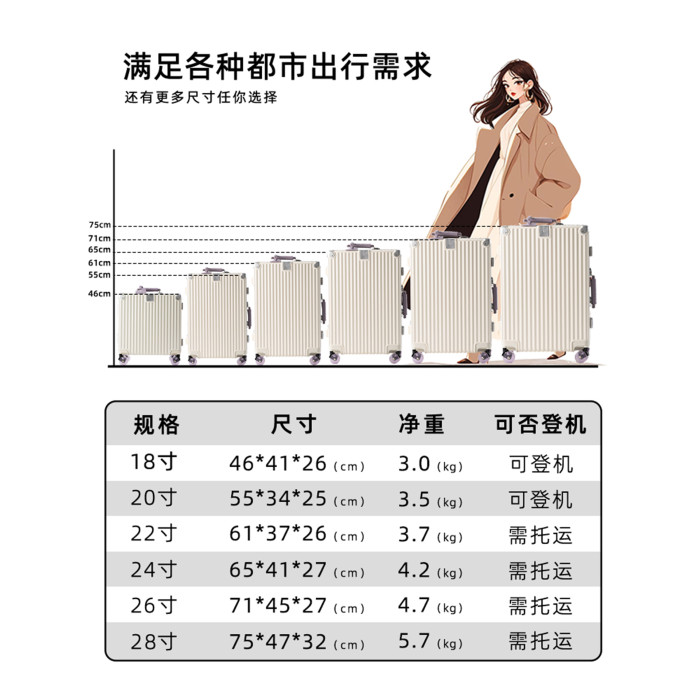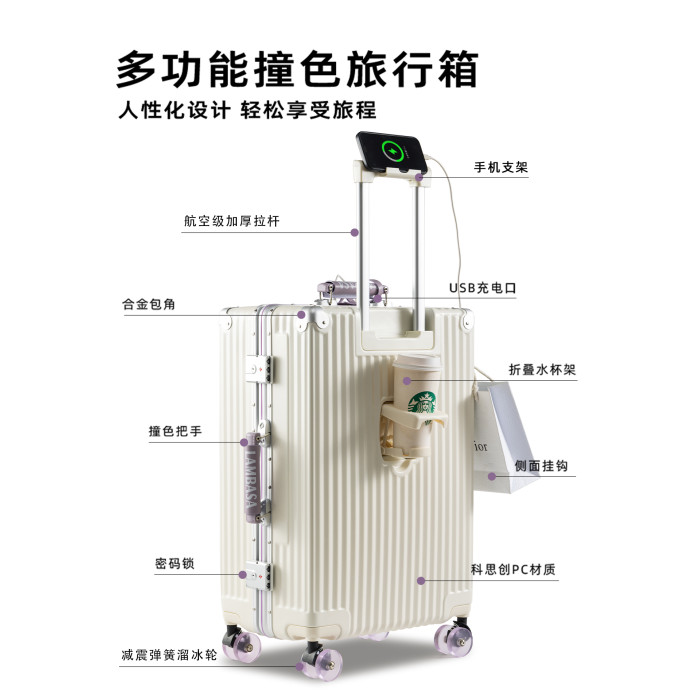 2026新款行李箱女20寸女生高顔值鋁框旅行箱可登機箱子24密碼箱28