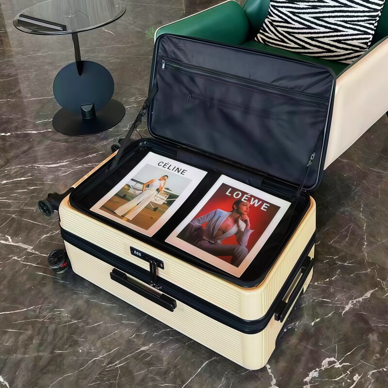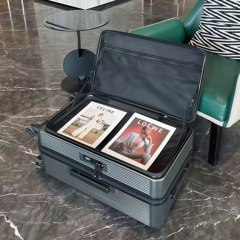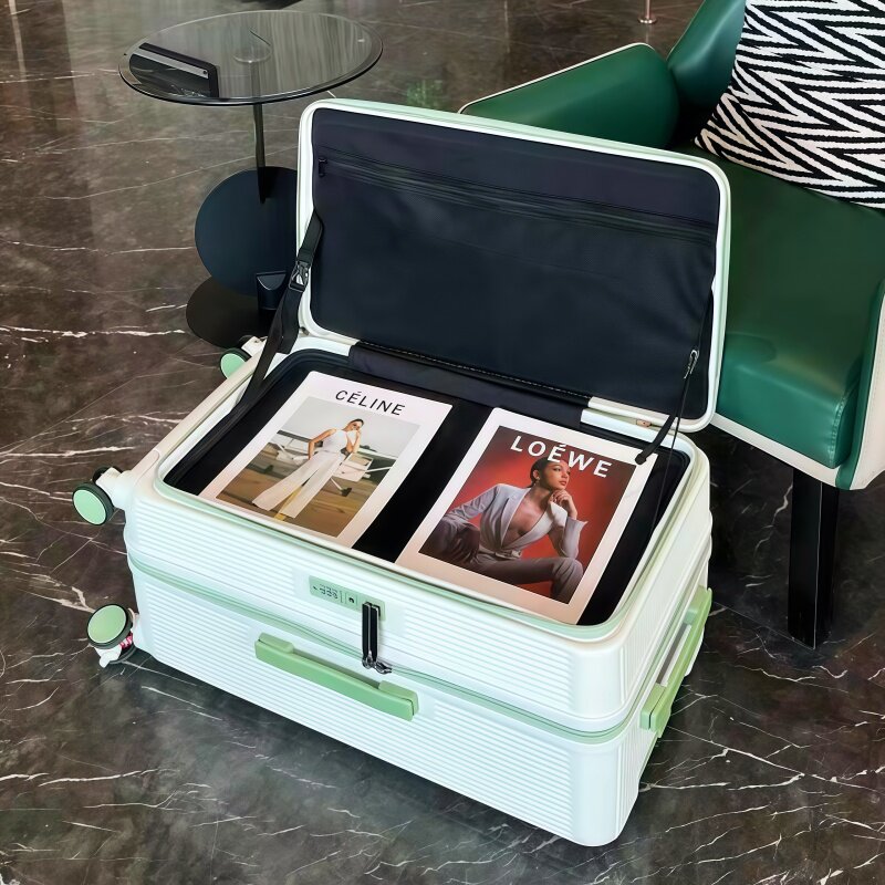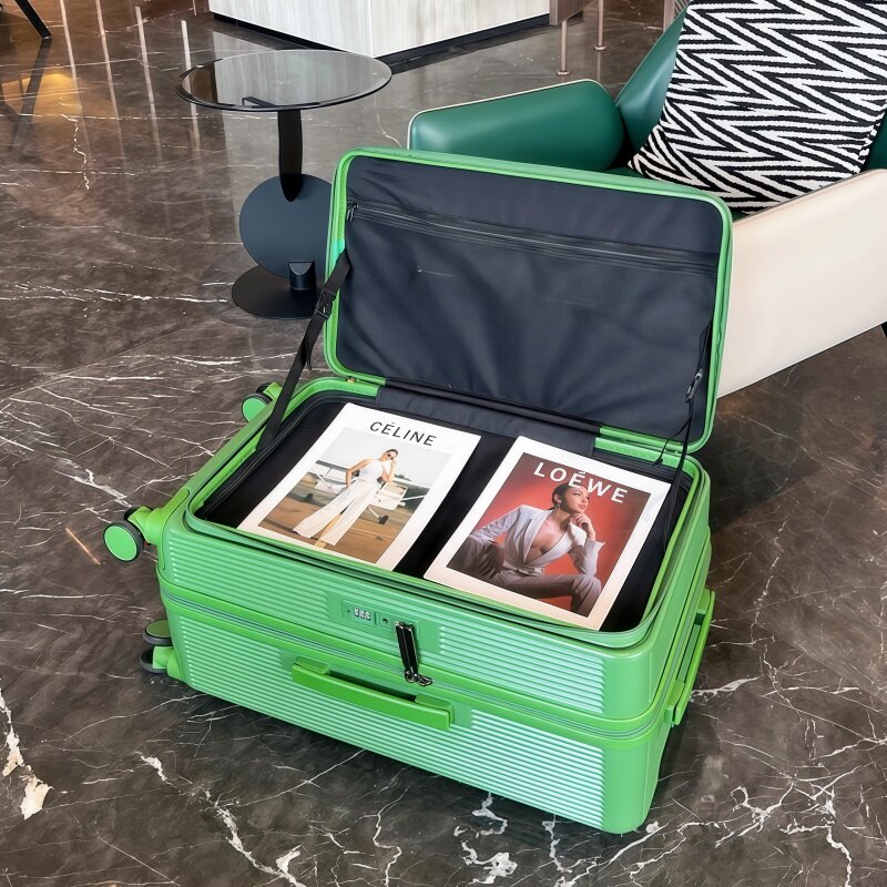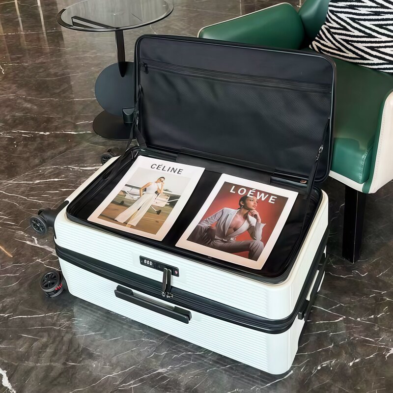 超大容量雙開合側開口行李箱靜音20寸登機箱繙蓋拉桿箱女PC旅行箱