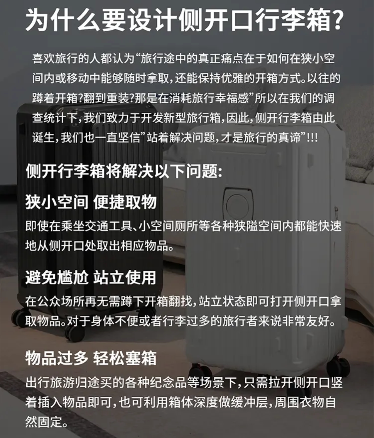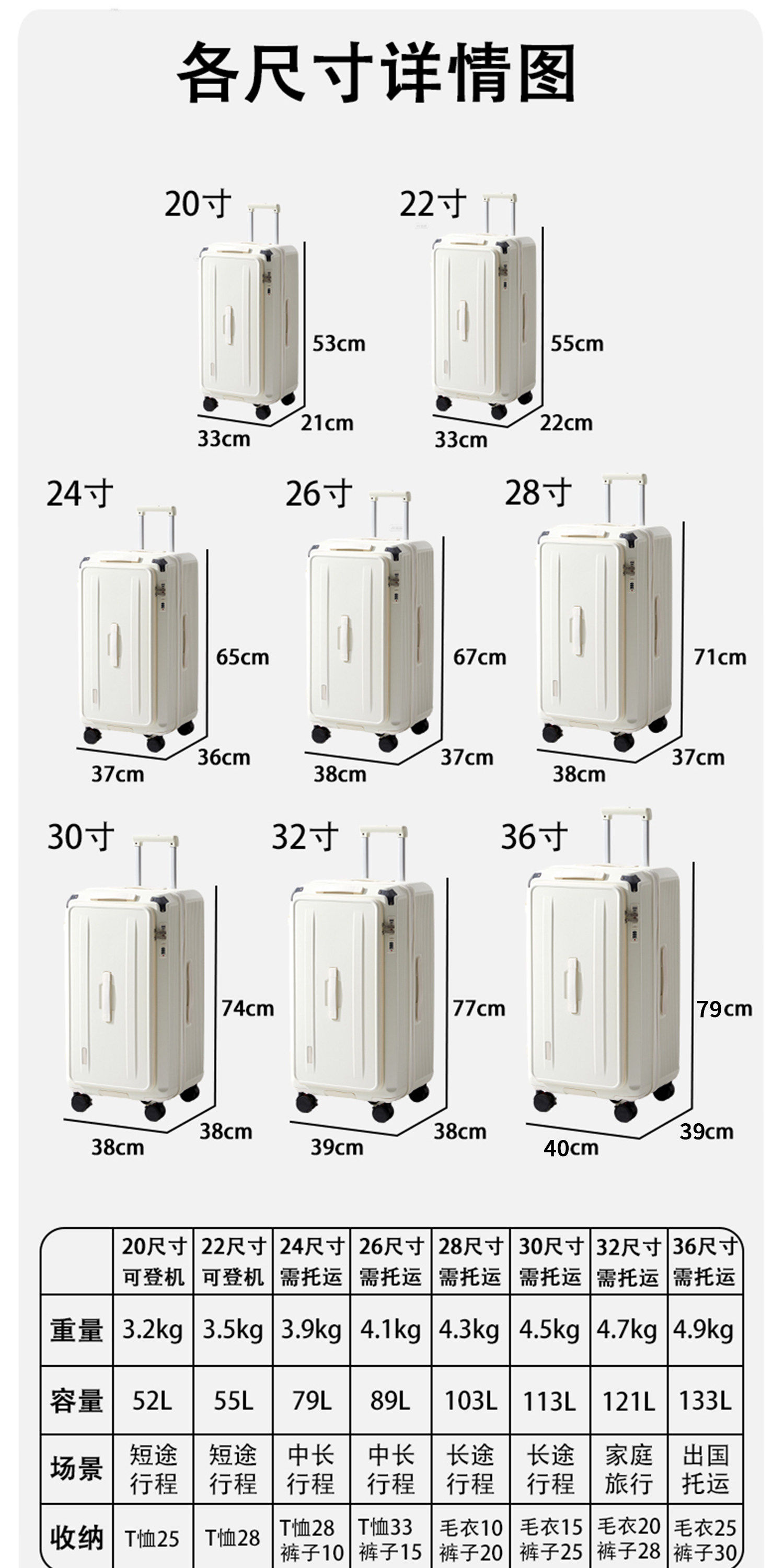 2026側開大容量行李箱5輪可擴容拉鍊旅行箱深倉拉桿箱28寸結實耐
