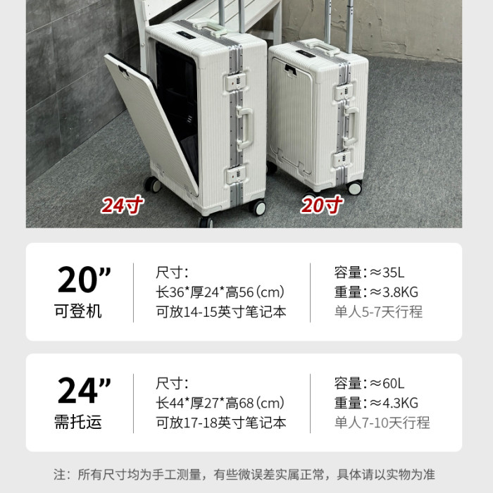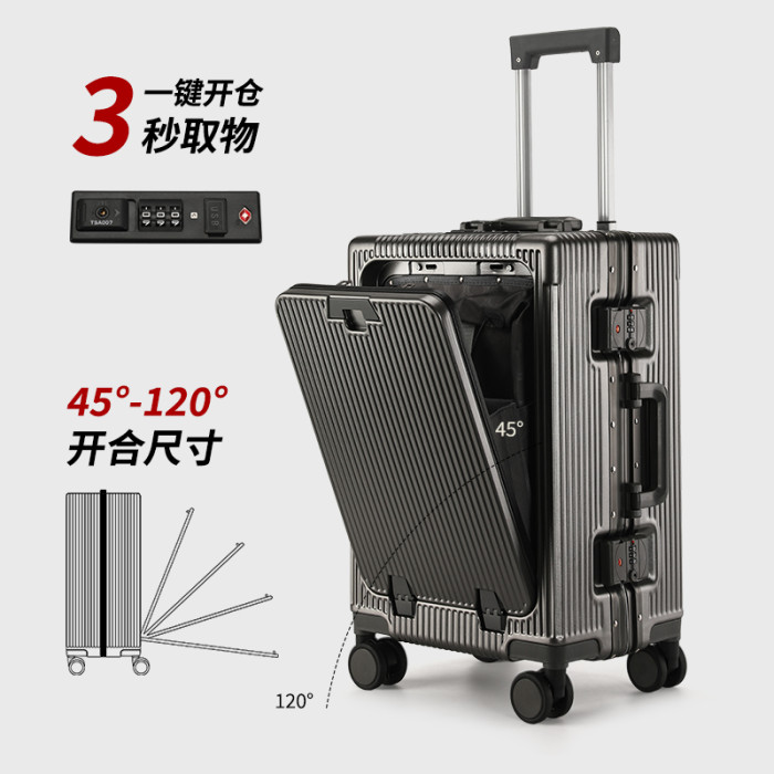 鋁框20寸行李箱前開口大容量旅行個性拉桿登機箱帶電腦夾層杯架24