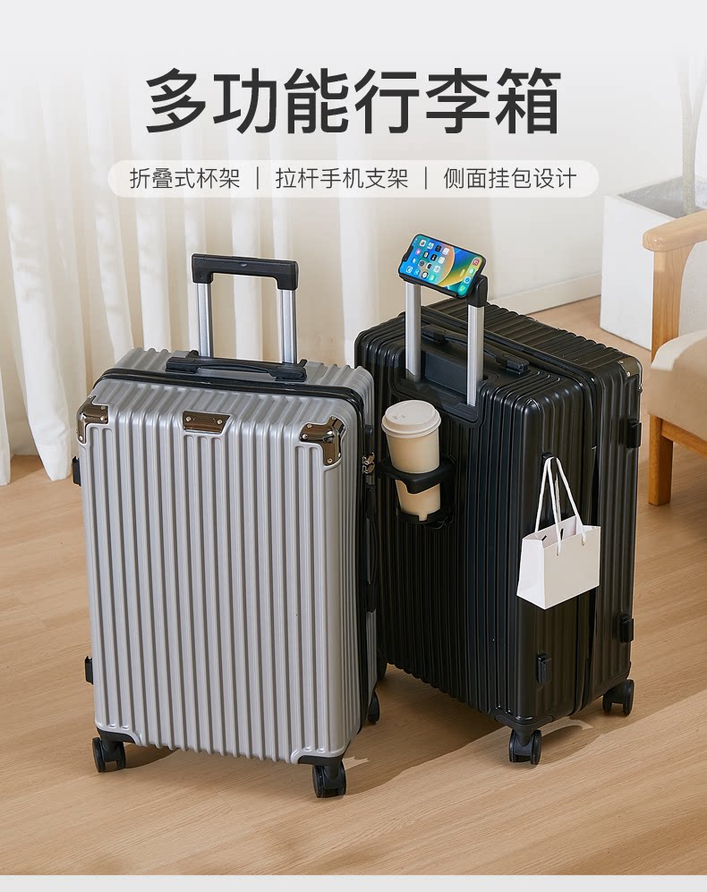 行李箱女2026新款耐用拉桿箱男帶杯架時尚登機箱24寸大容量旅行箱