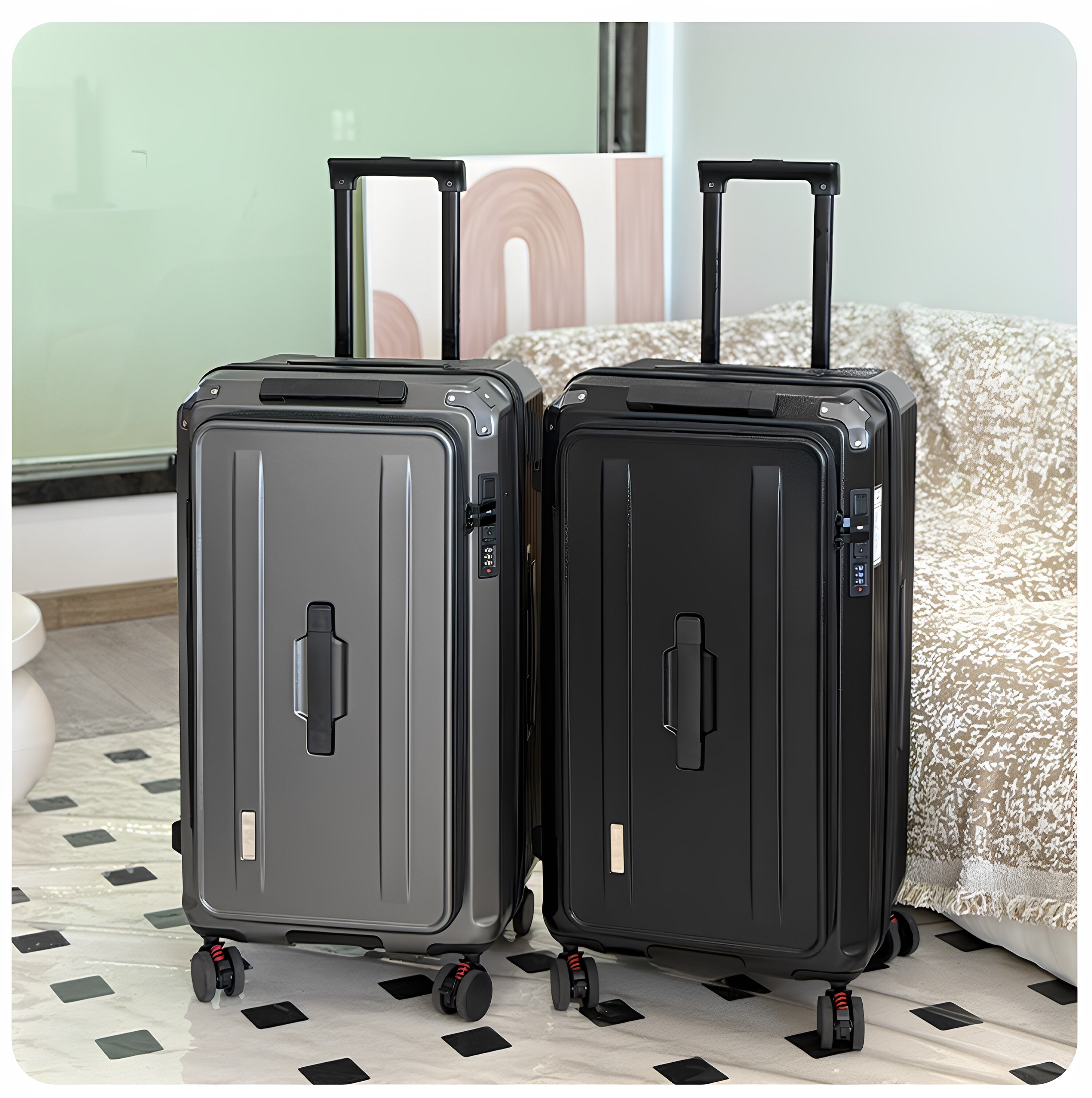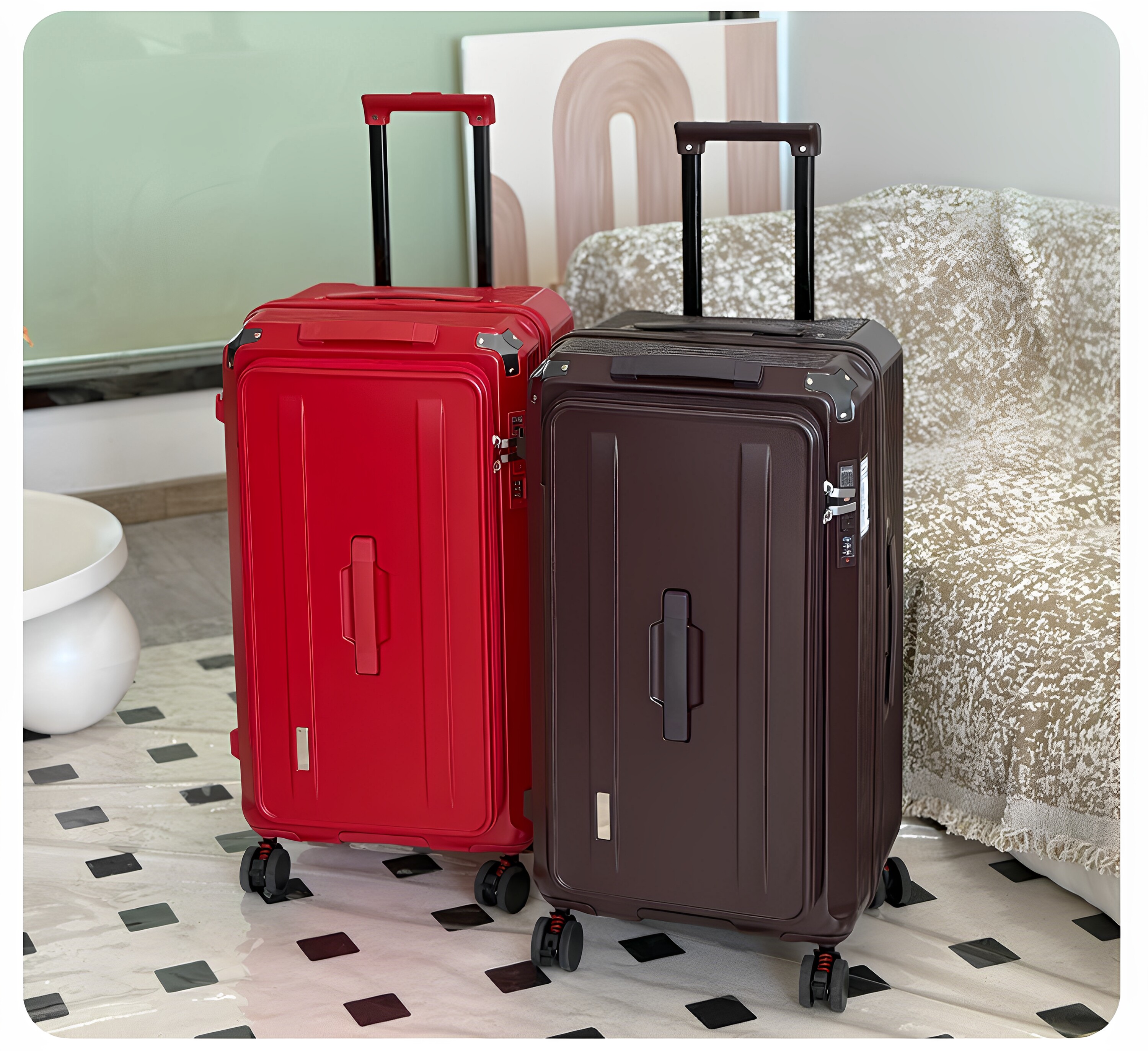 側開五輪行李箱女婚慶旅行箱20寸登機箱擴容28寸托運箱32寸拉桿箱