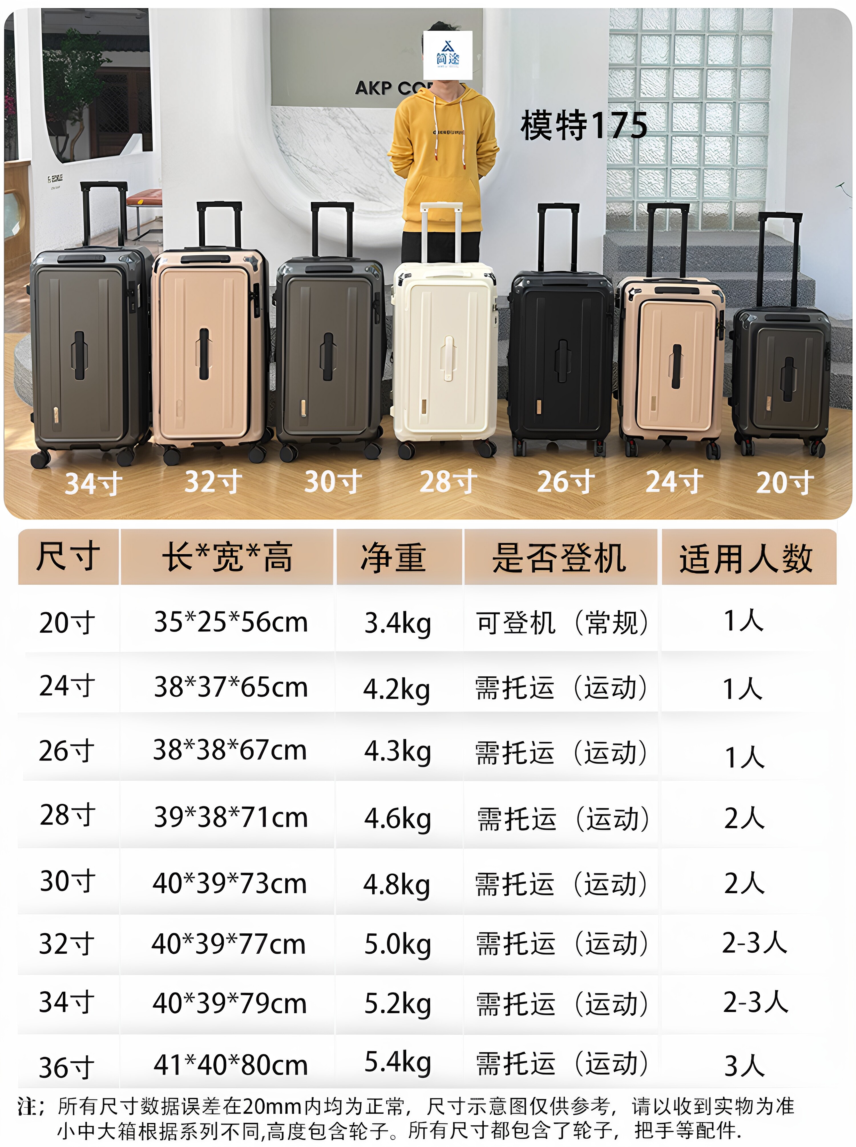 款式及尺寸: