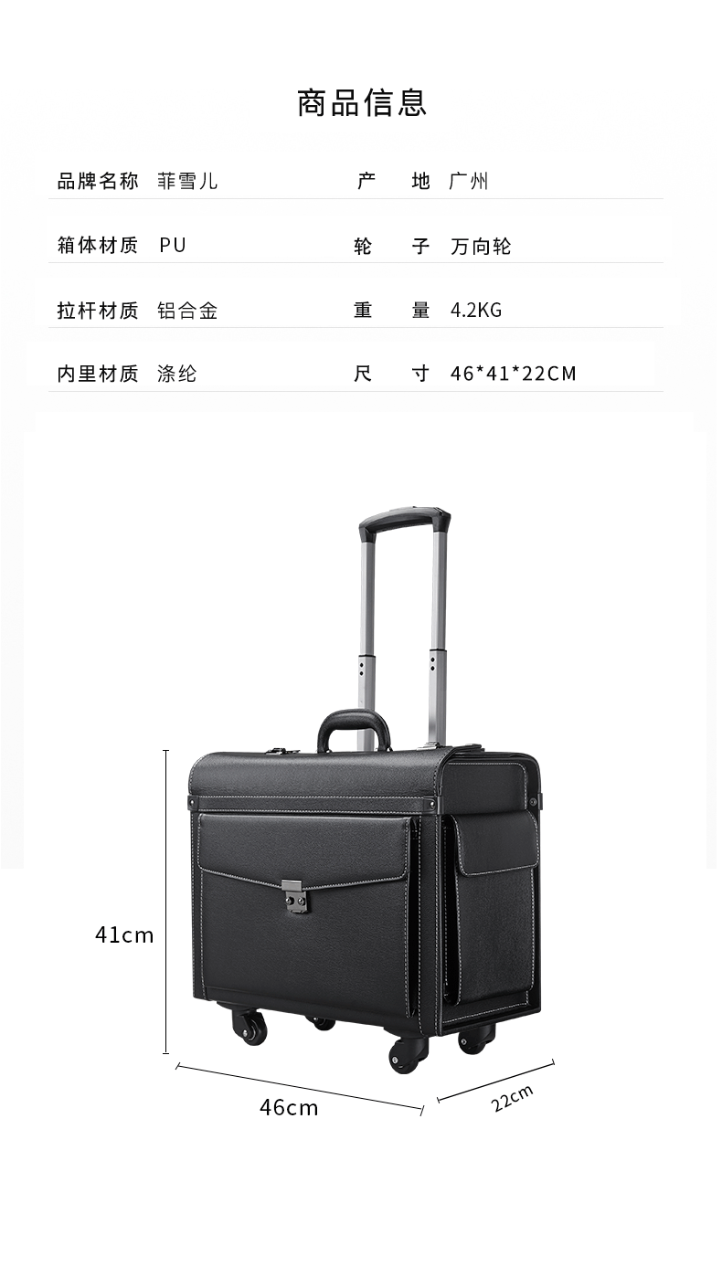 菲雪兒機長拉桿箱空姐飛行箱列車員行李箱律師皮箱商務登機箱18寸