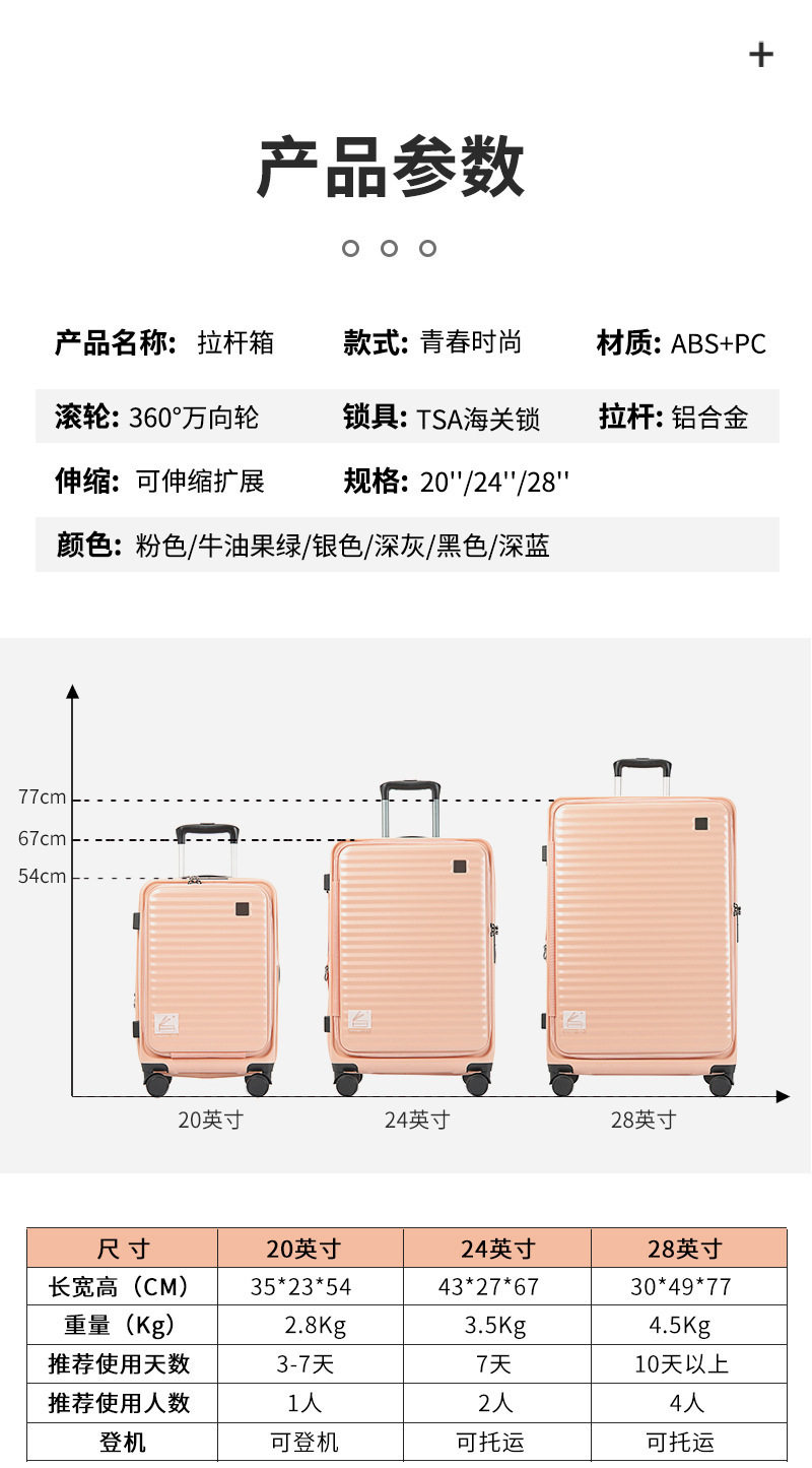 新款側開蓋行李箱28寸大容量旅行箱可擴展拉桿箱20靜音密碼登機箱