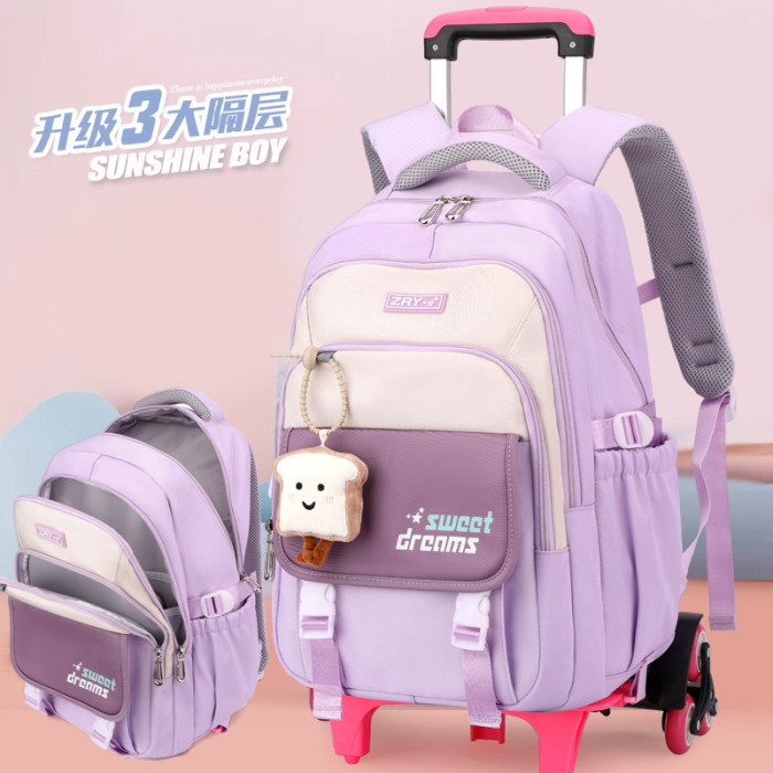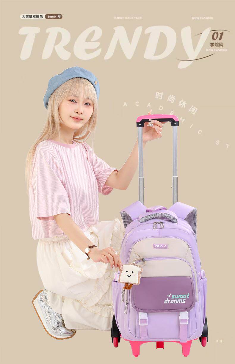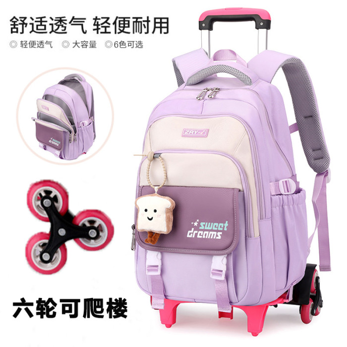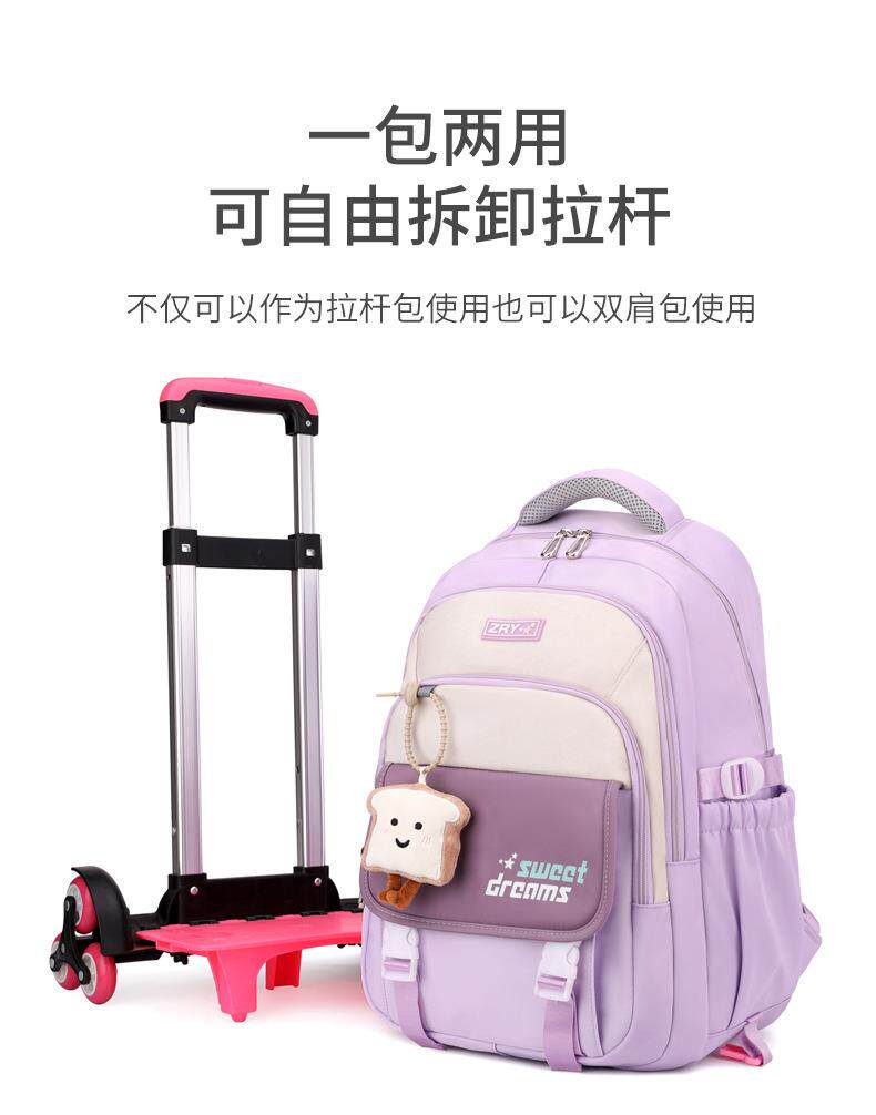 兒童拉桿書包小學生女孩六輪可爬樓2-6年級5大容量兩用防水減負12