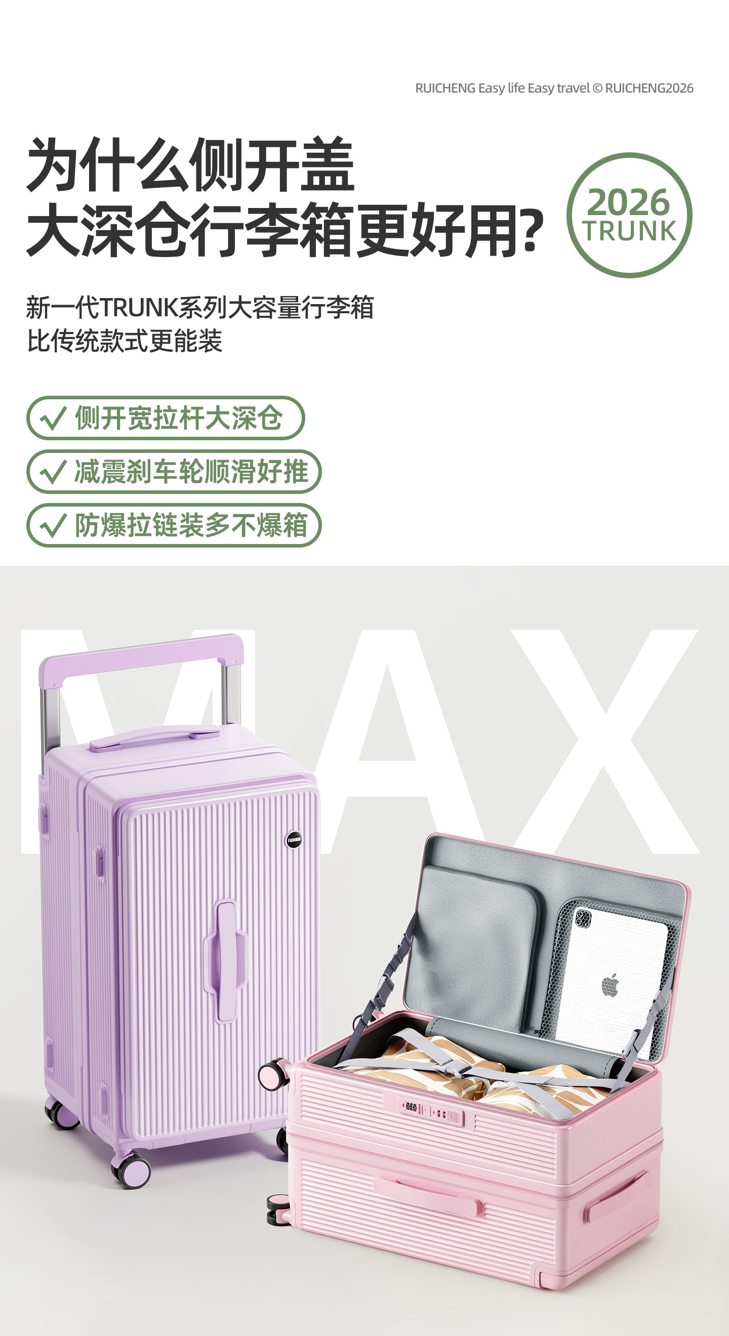 行李箱大容量女2026新款28寸寬拉桿側開深倉30加厚出國密碼旅行箱