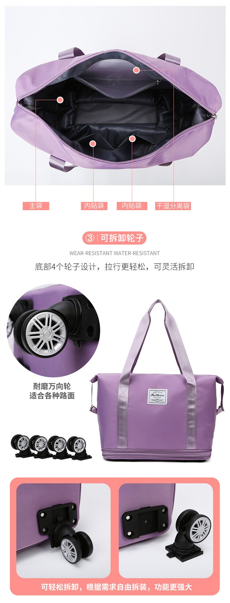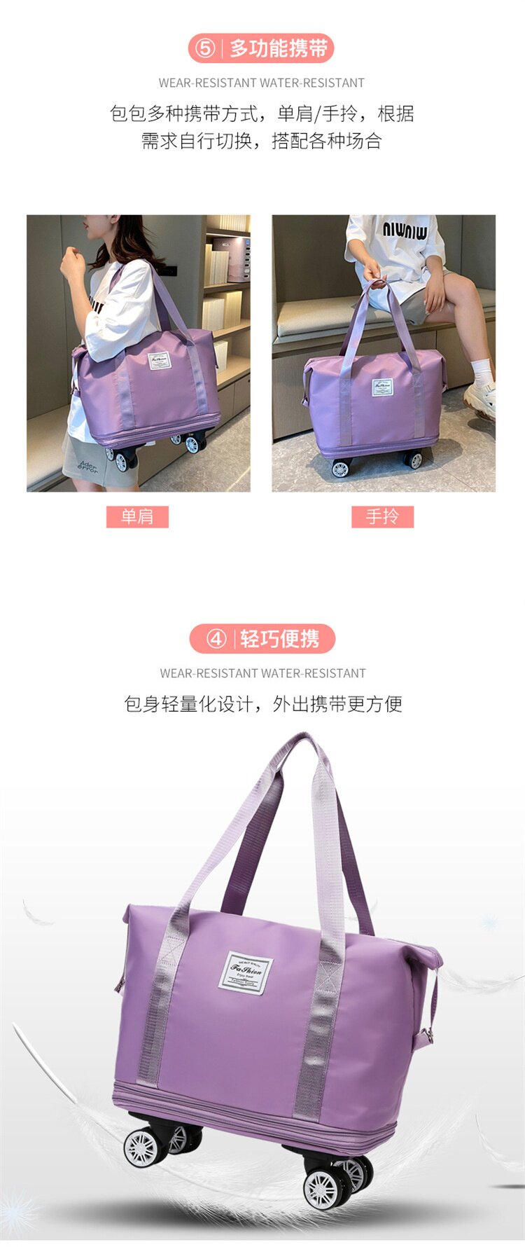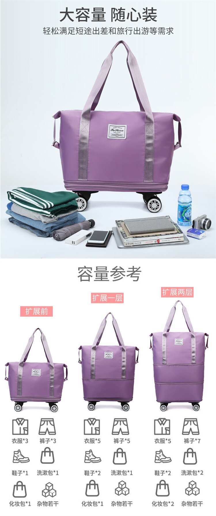 旅行袋超大容量手提大容量滑輪防水行李袋待産收納短途出差旅行包